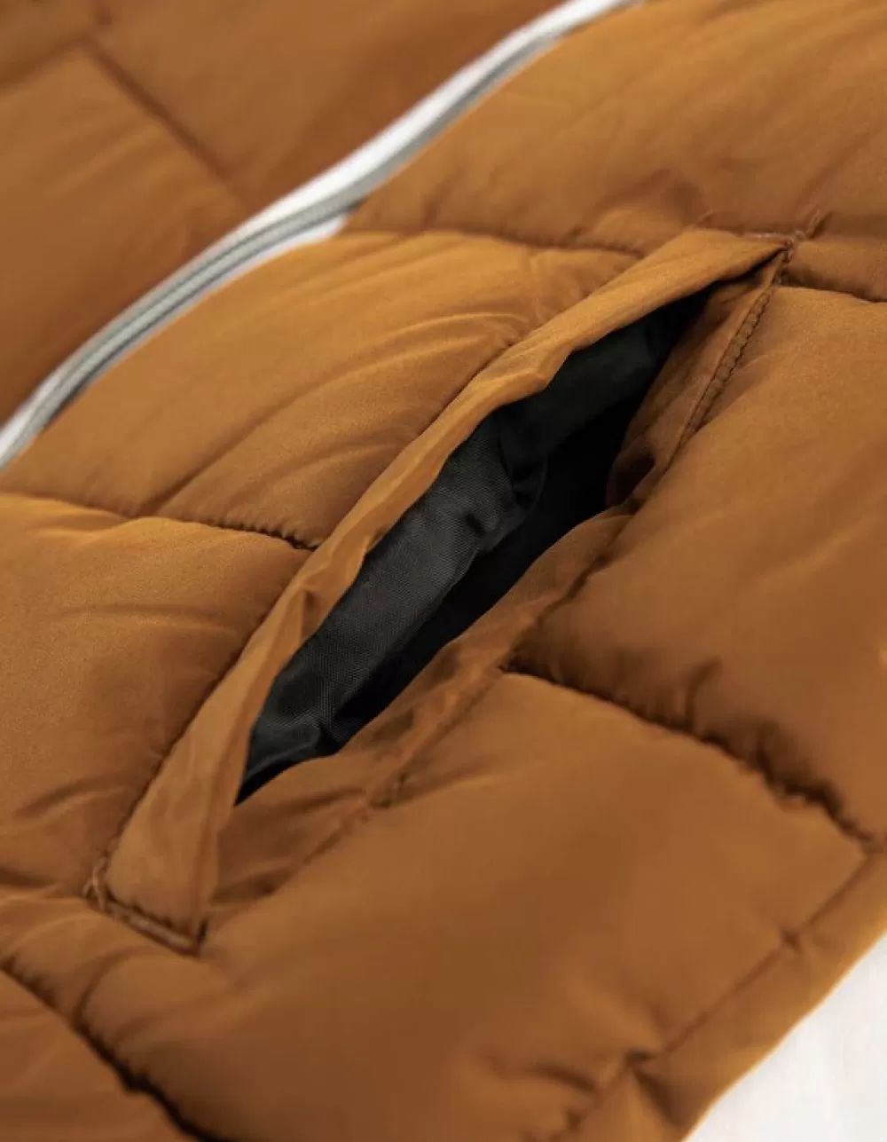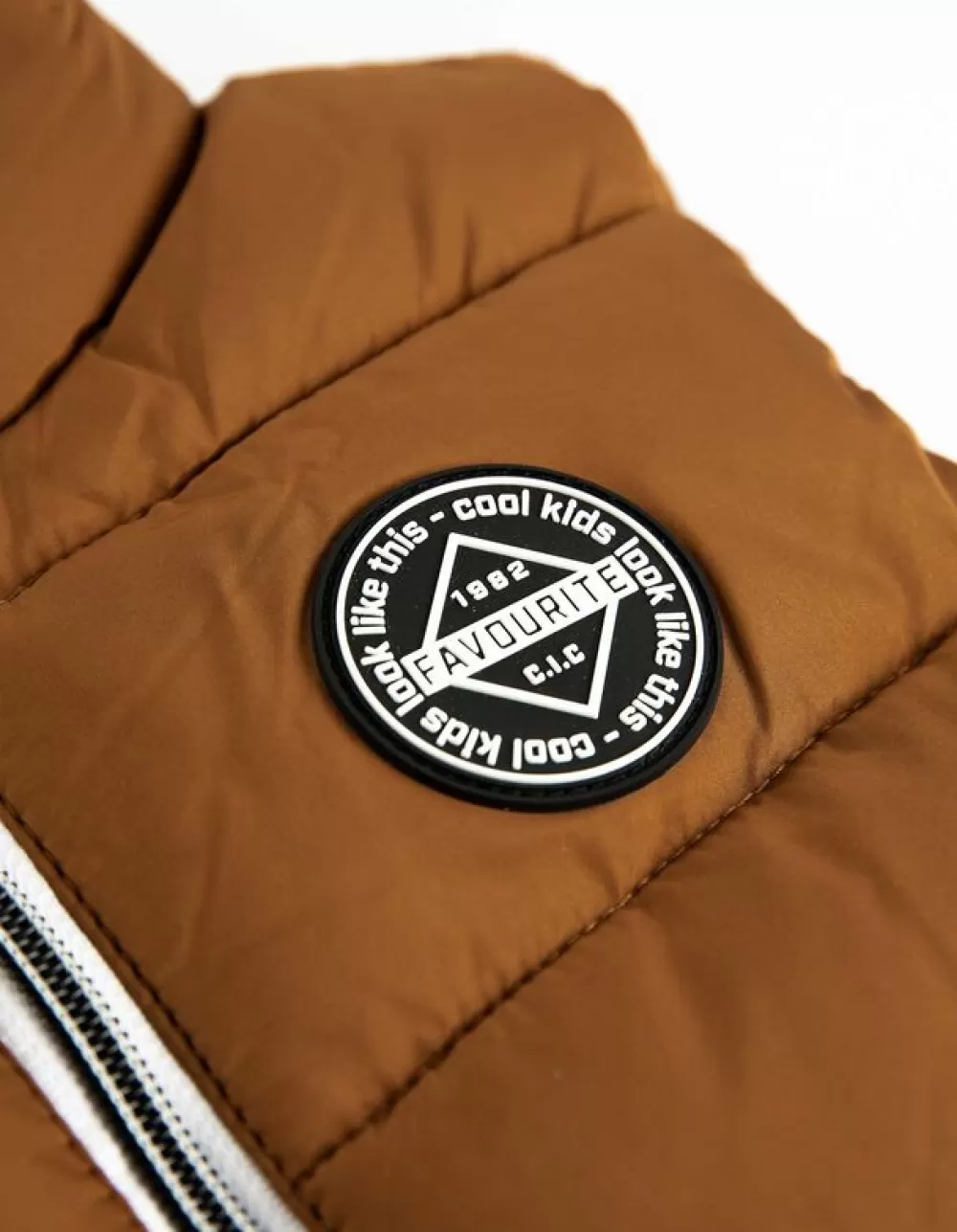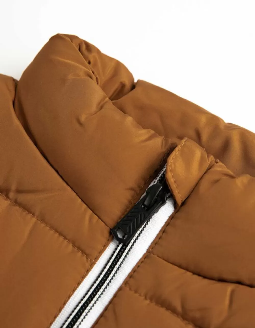LichtbruinEffenOpstaande KraagMouwloosOpstaande KraagPolyesterRitssluitingReflecterendSteekzakkenLabel