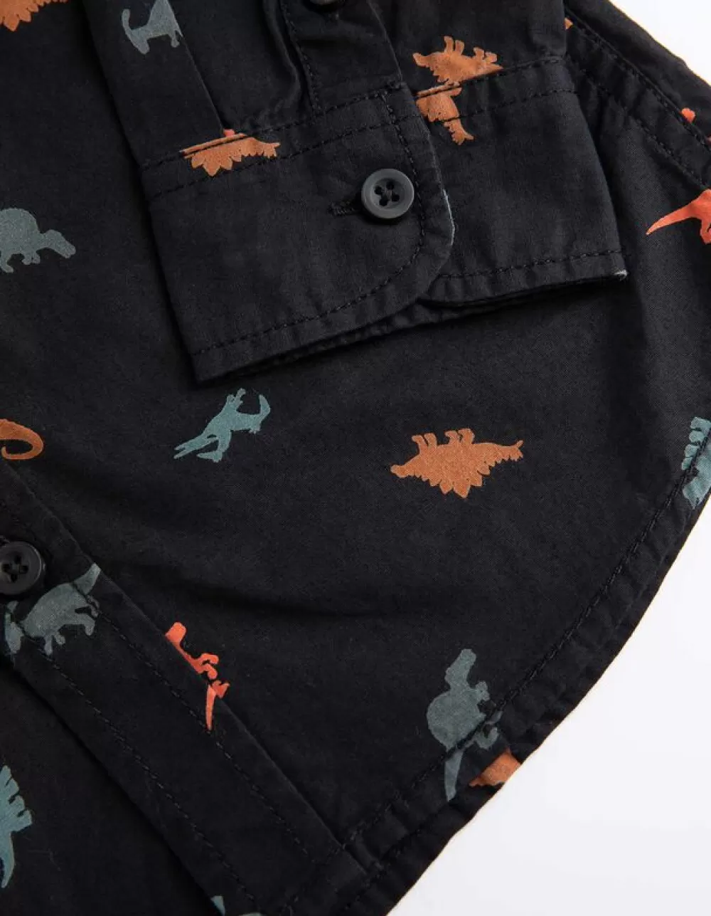 DonkergrijsPrint All-OverOverhemd KraagLange MouwenKatoenKnoopsluitingElastische Randen