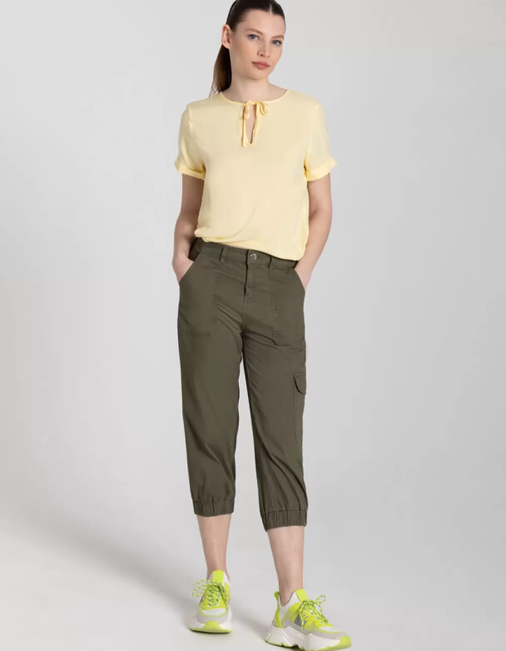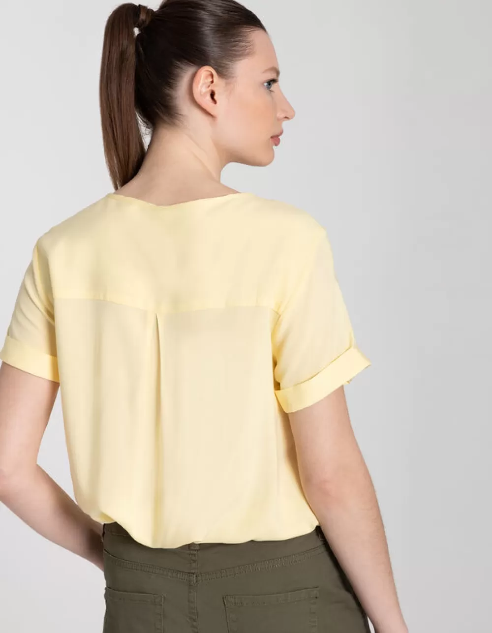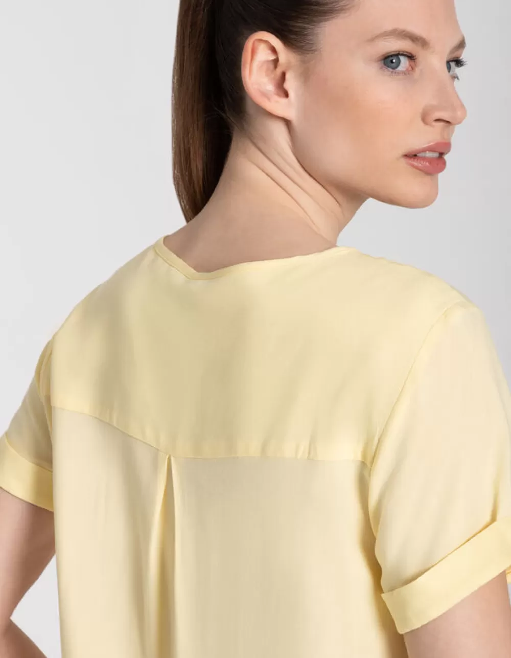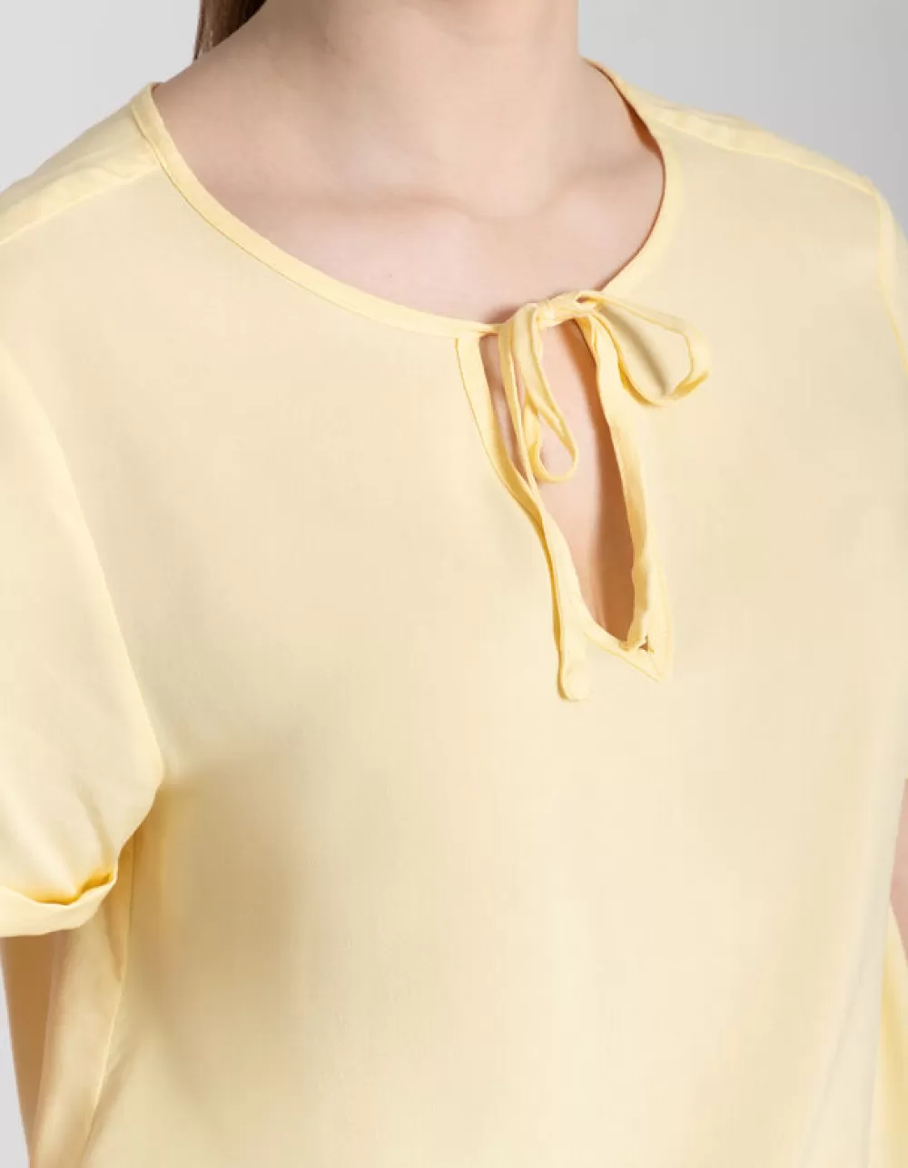 LichtgeelEffenRonde Hals Met KnoopjesMouwen Met Vaste OmslagLenzing™ Ecovero™VetersluitingElastische Randen