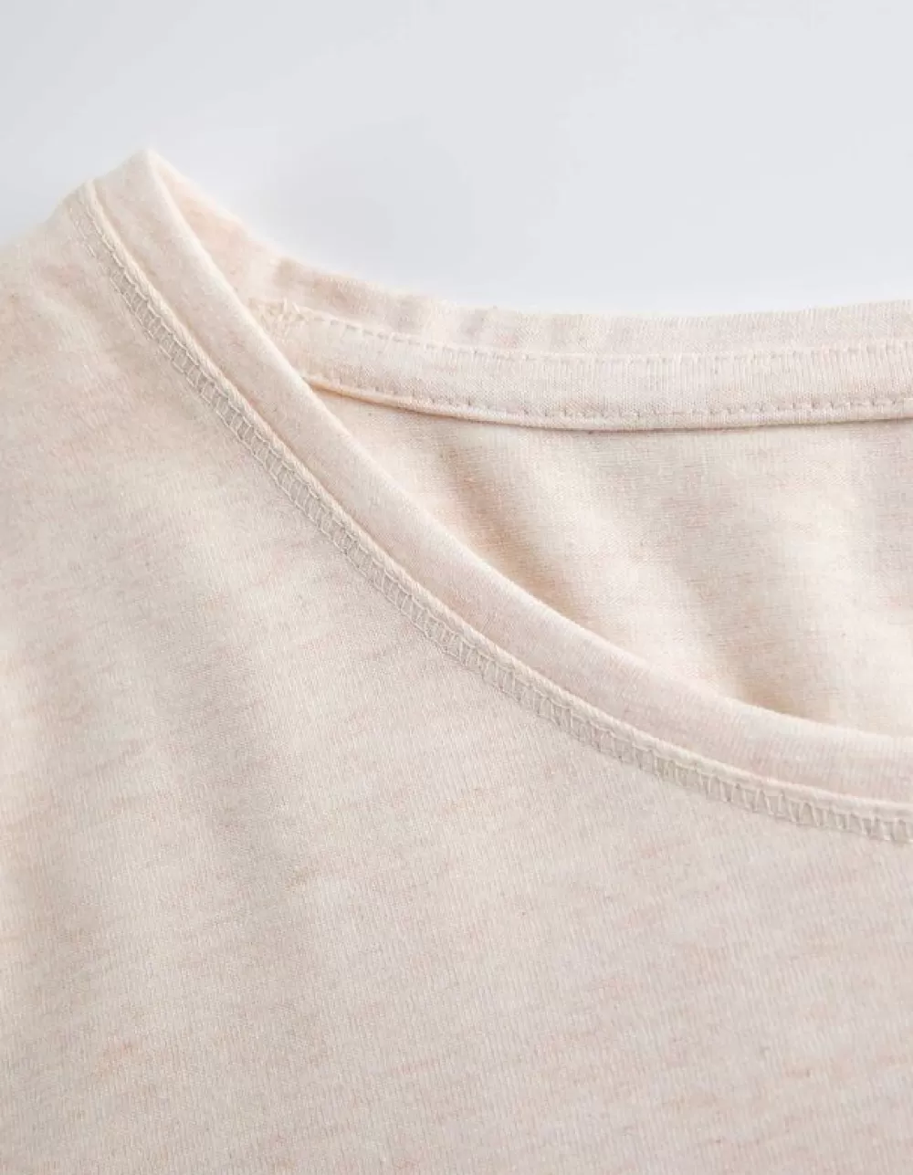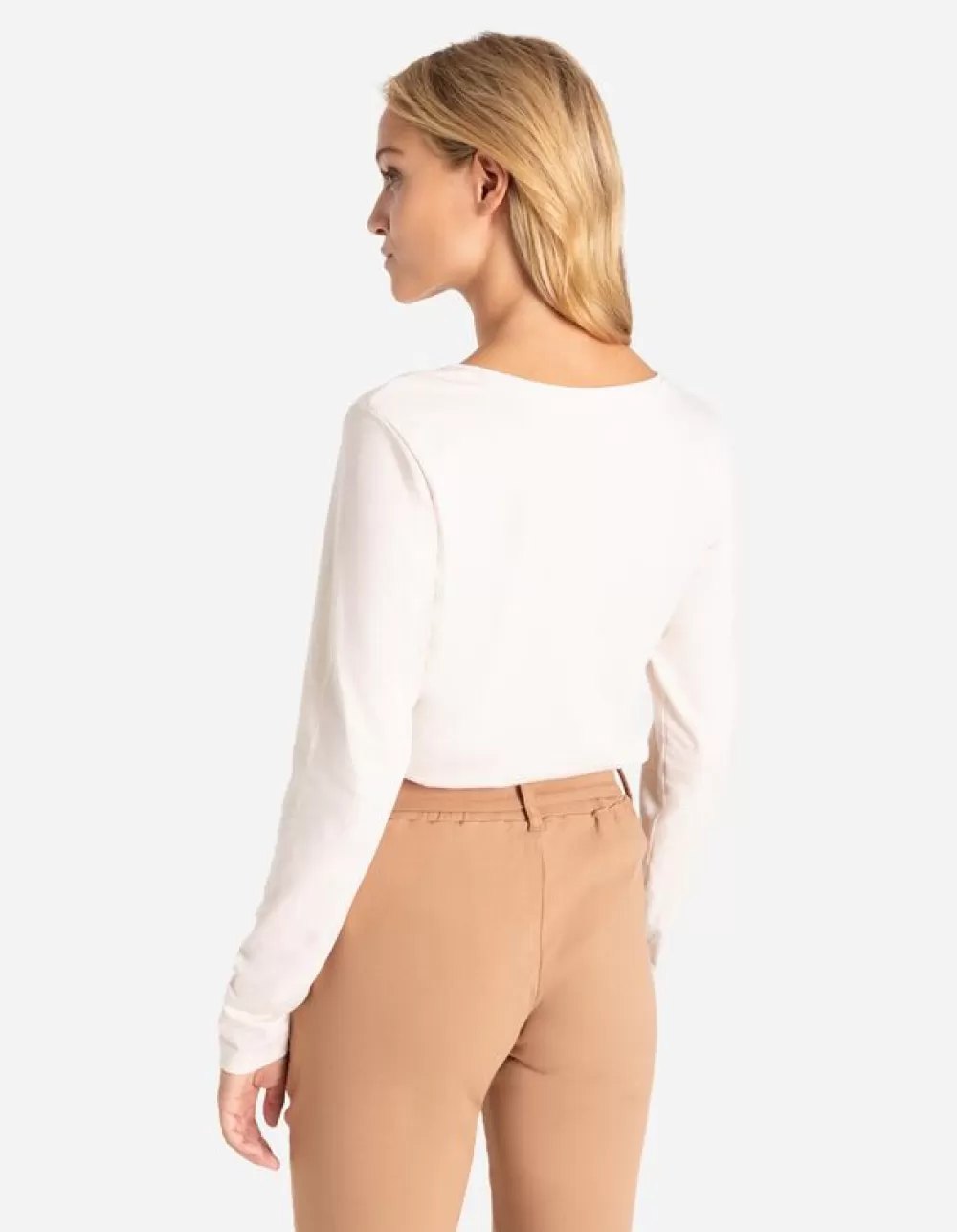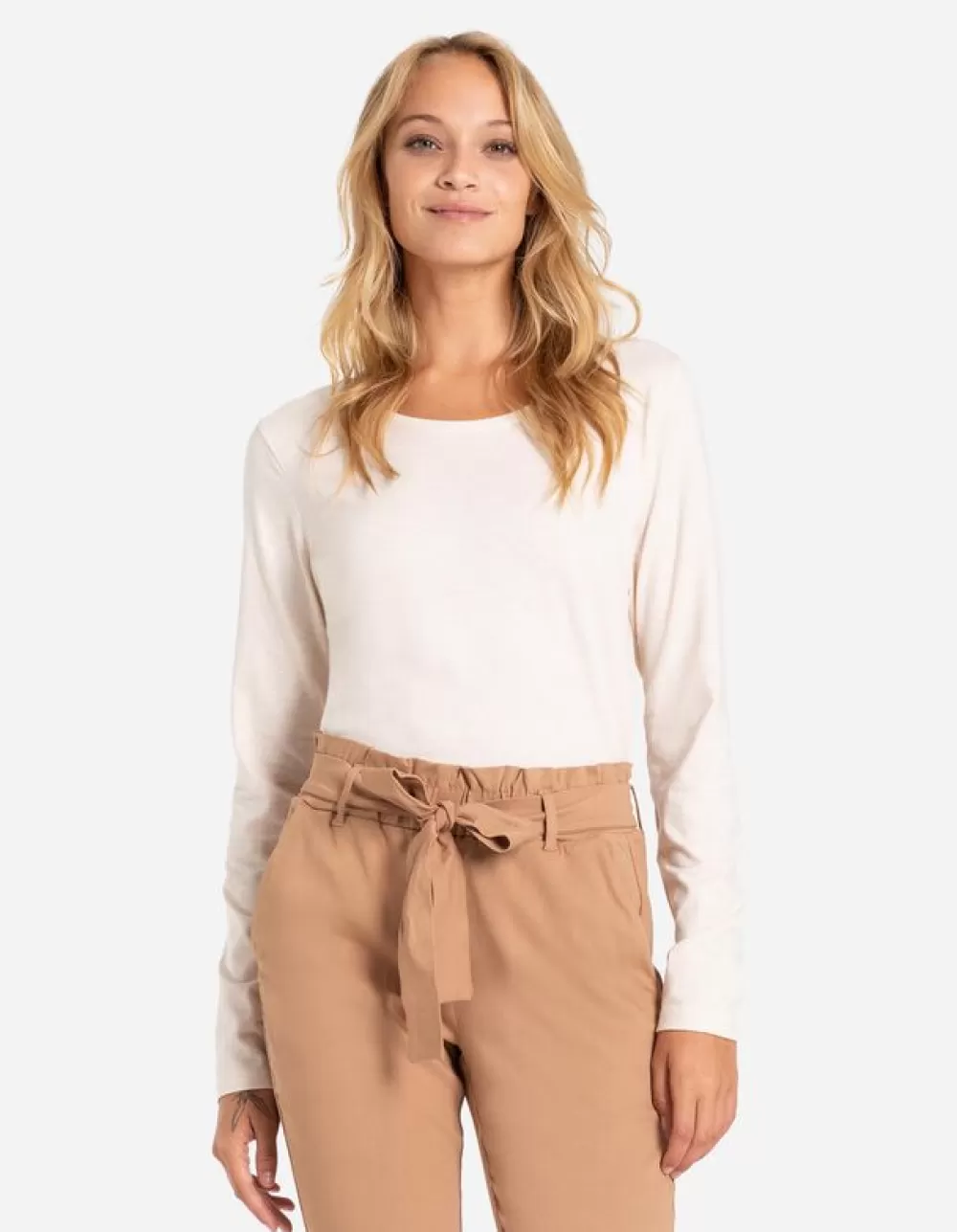 BeigeEffenRonde HalsLange MouwenKatoenmixZonder SluitingMet Stretch