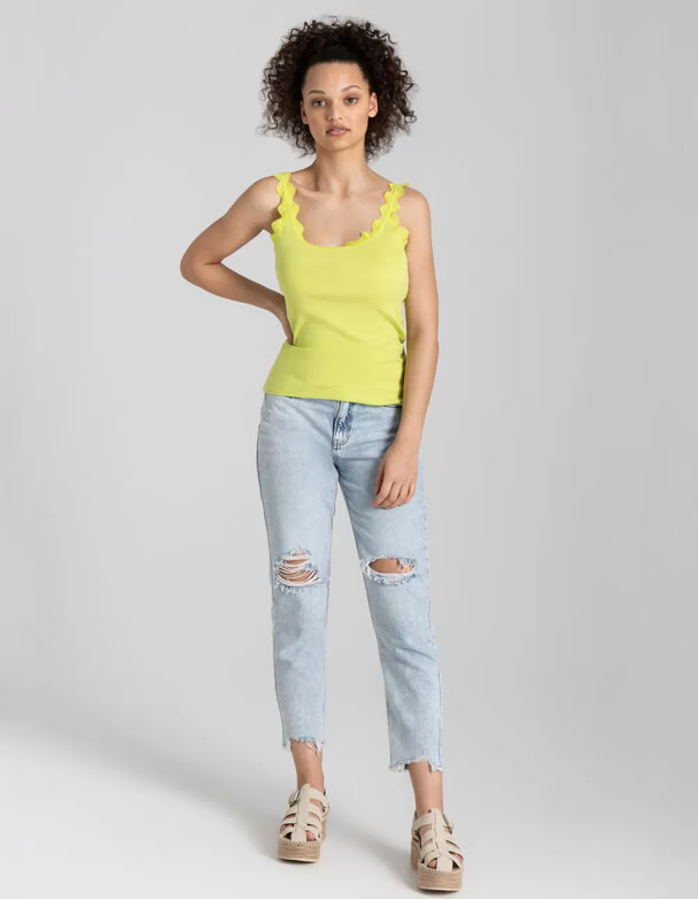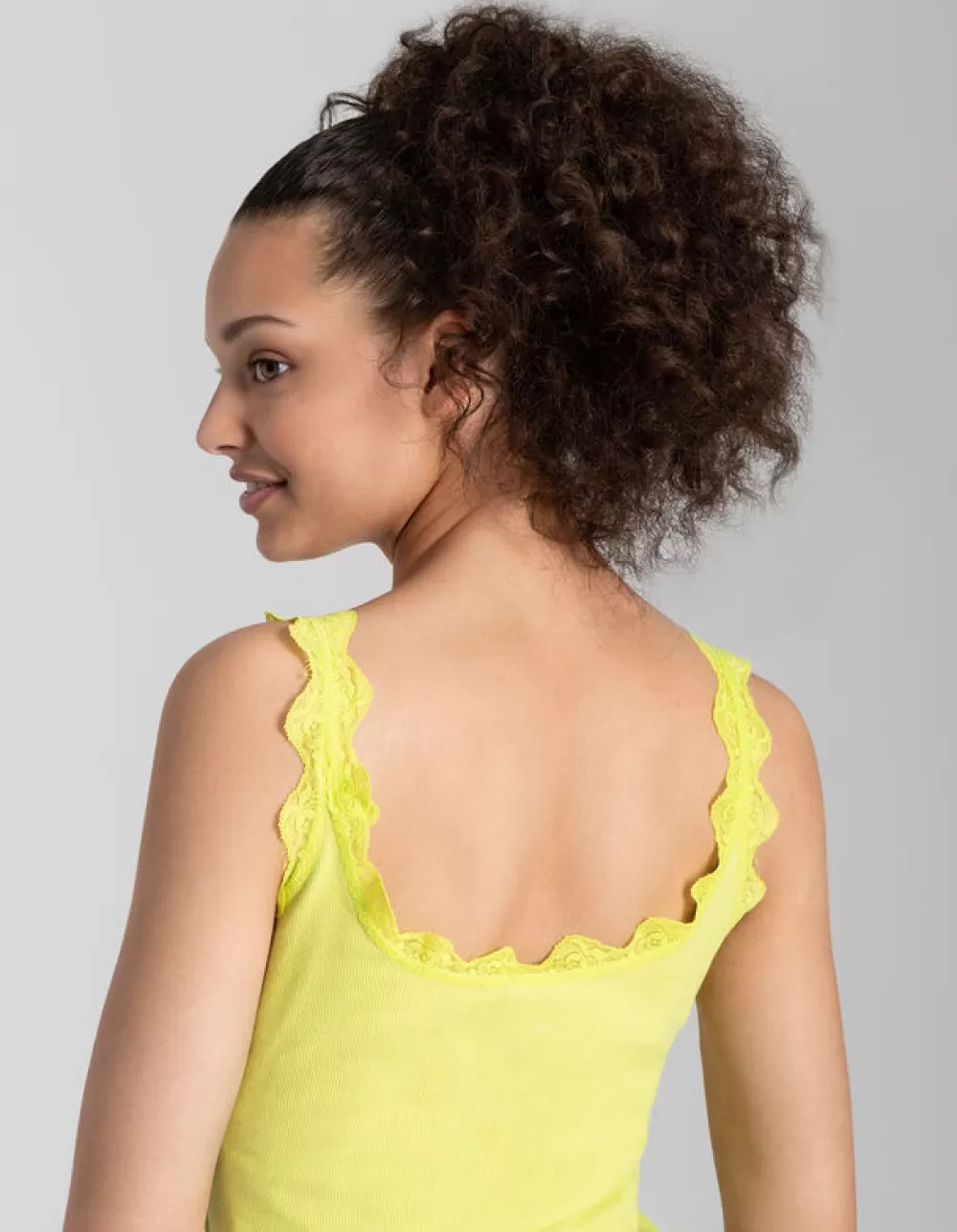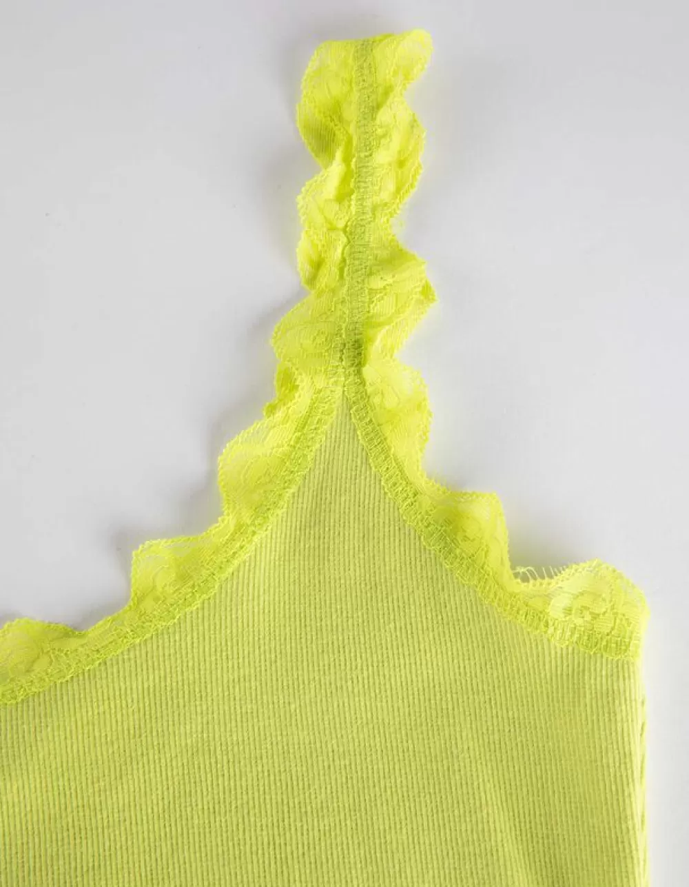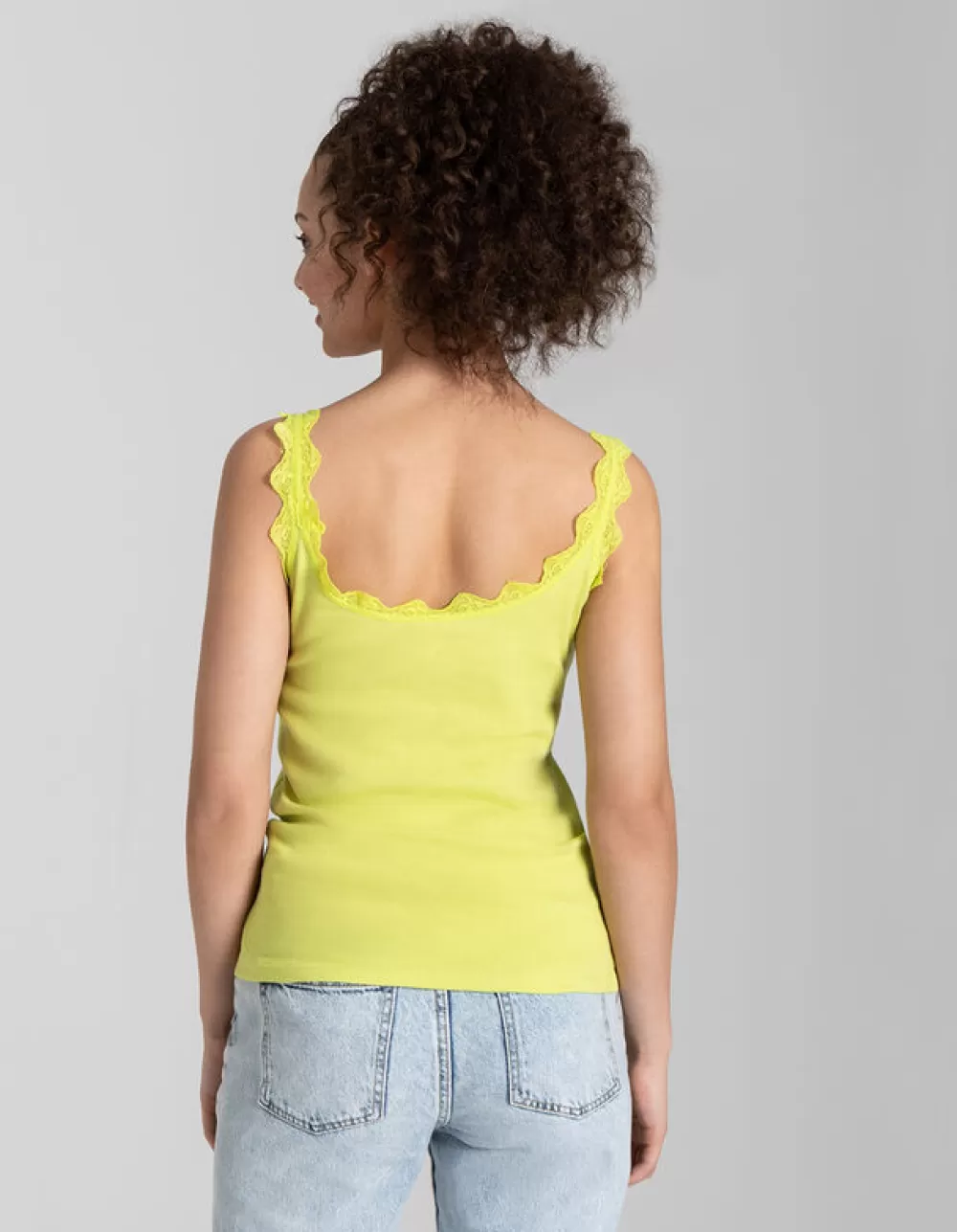 LichtgroenEffenRonde HalsSmalle SchouderbandjesKatoenmixMet Kant