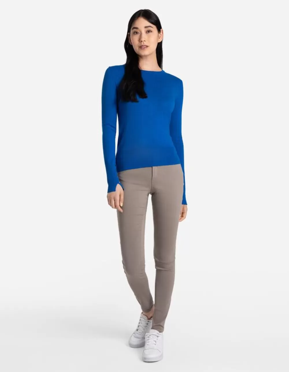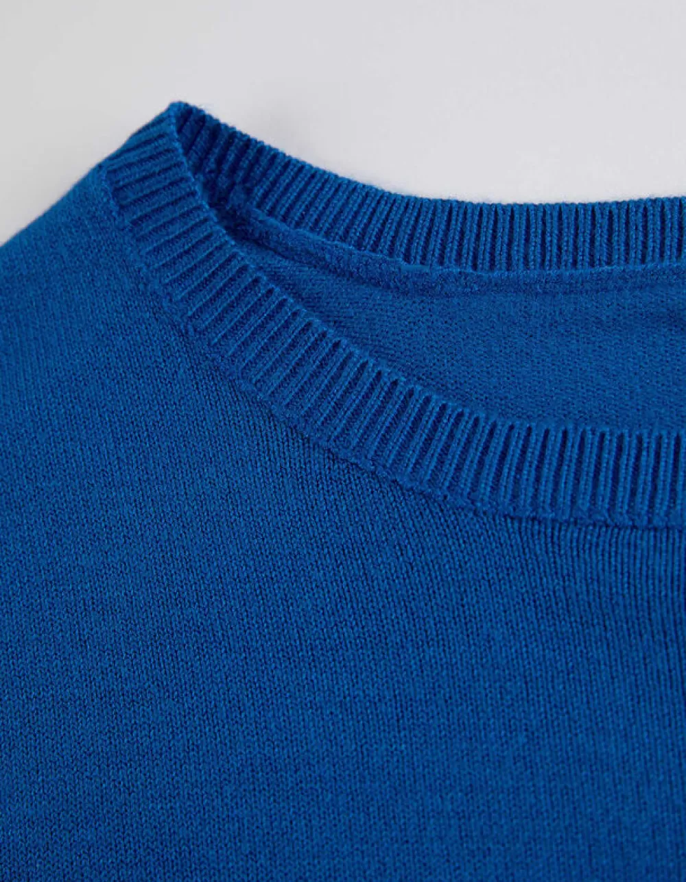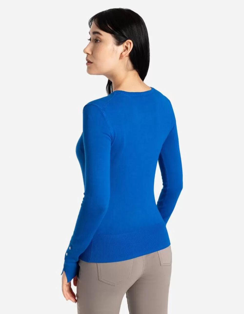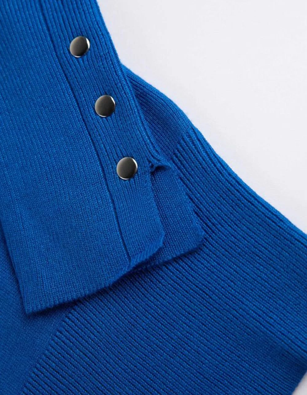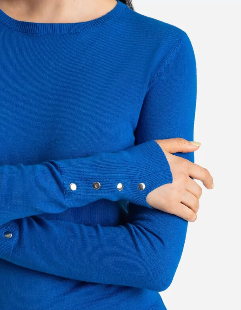 DonkerblauwEffenRonde HalsLange MouwenViscosemixZonder SluitingSierknopenMet Stretch