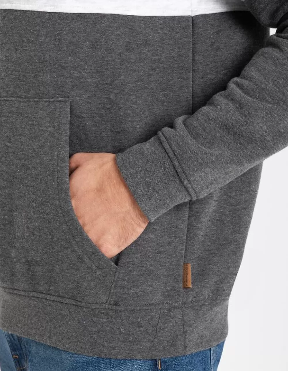 DonkergrijsKleur BlokkeringKapLange MouwenSweatstofKoordKangoeroezakLabelKangoeroezak