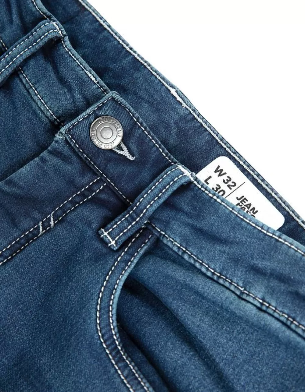DonkerblauwDonkerblauw DenimRegular WaistStone WashedLangKatoenmixKnoop- En RitssluitingMet StretchThermo-Effect