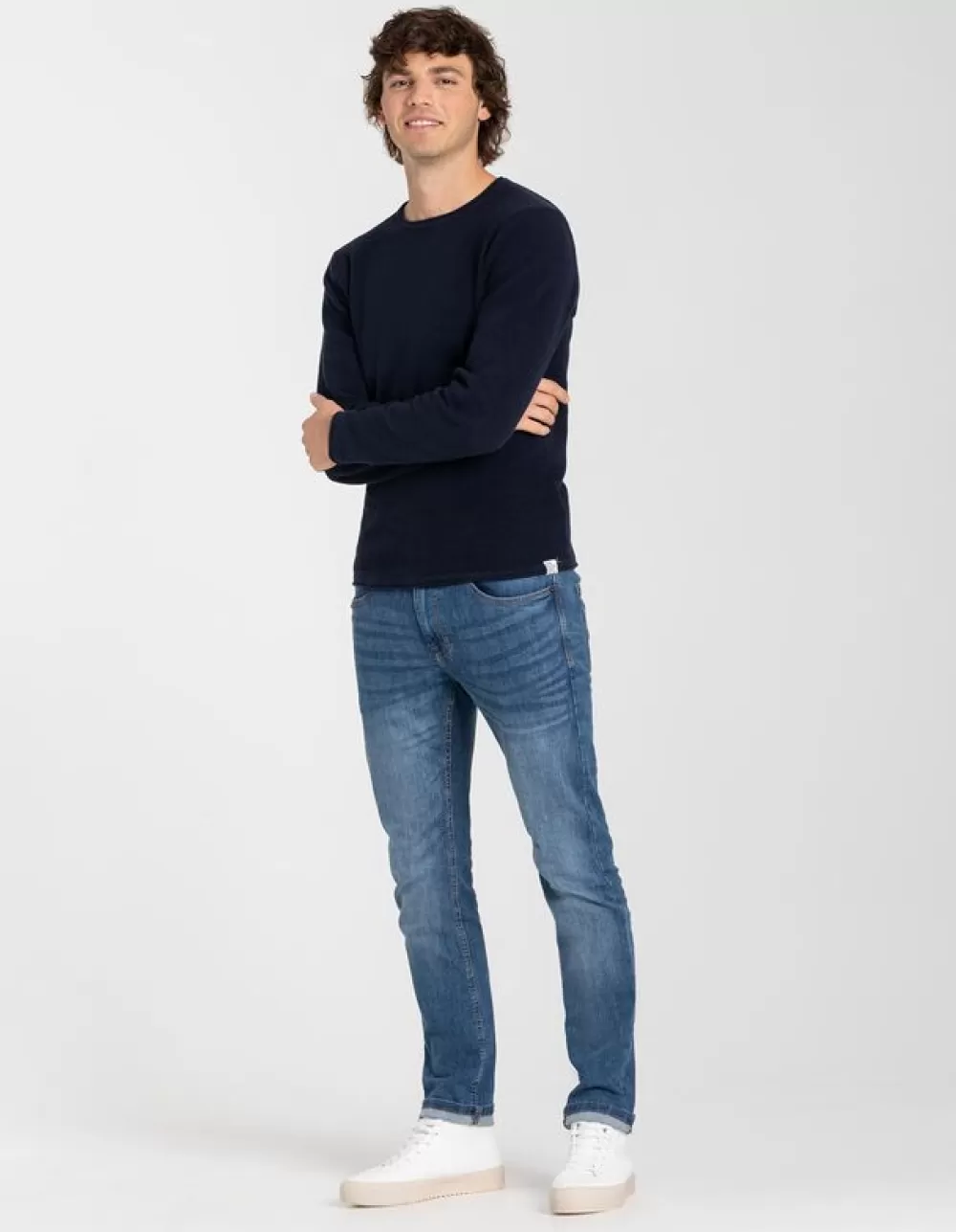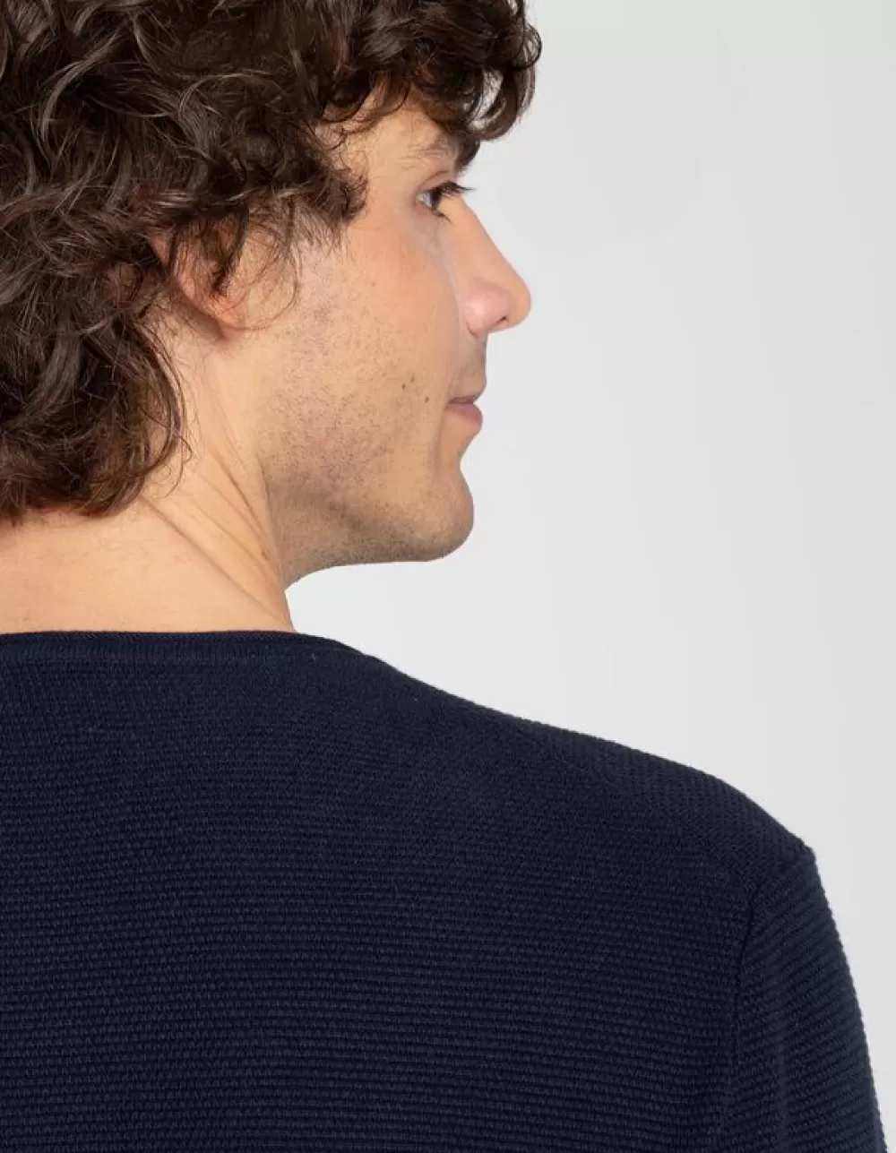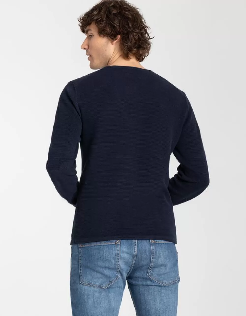 DonkerblauwEffenRonde HalsLange MouwenKatoenmixZonder SluitingRolrandjesLabel