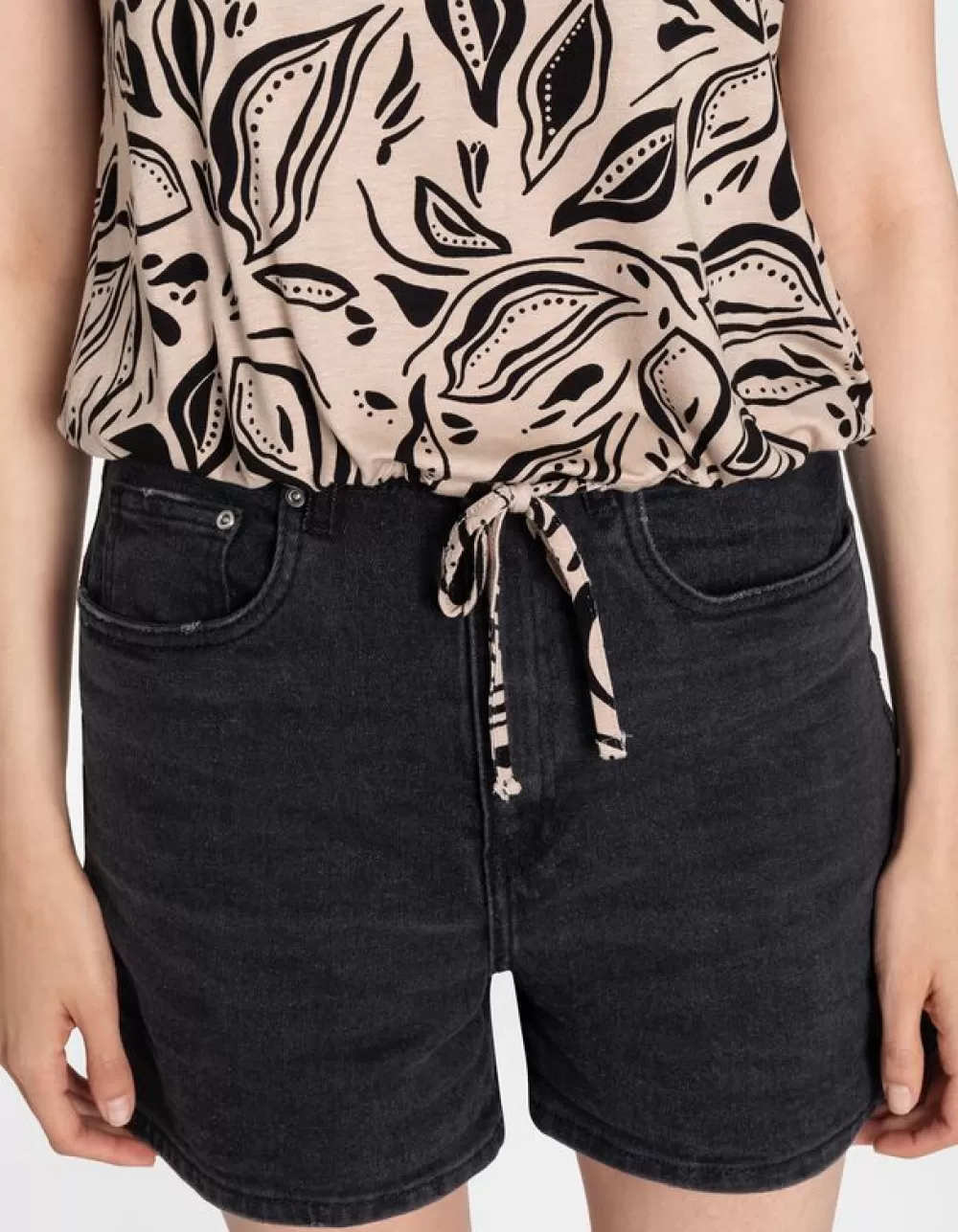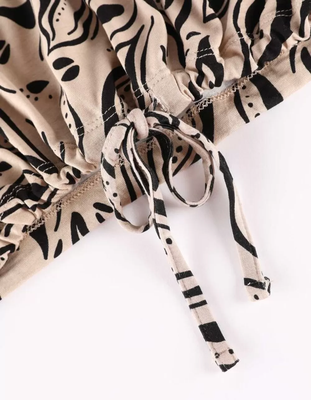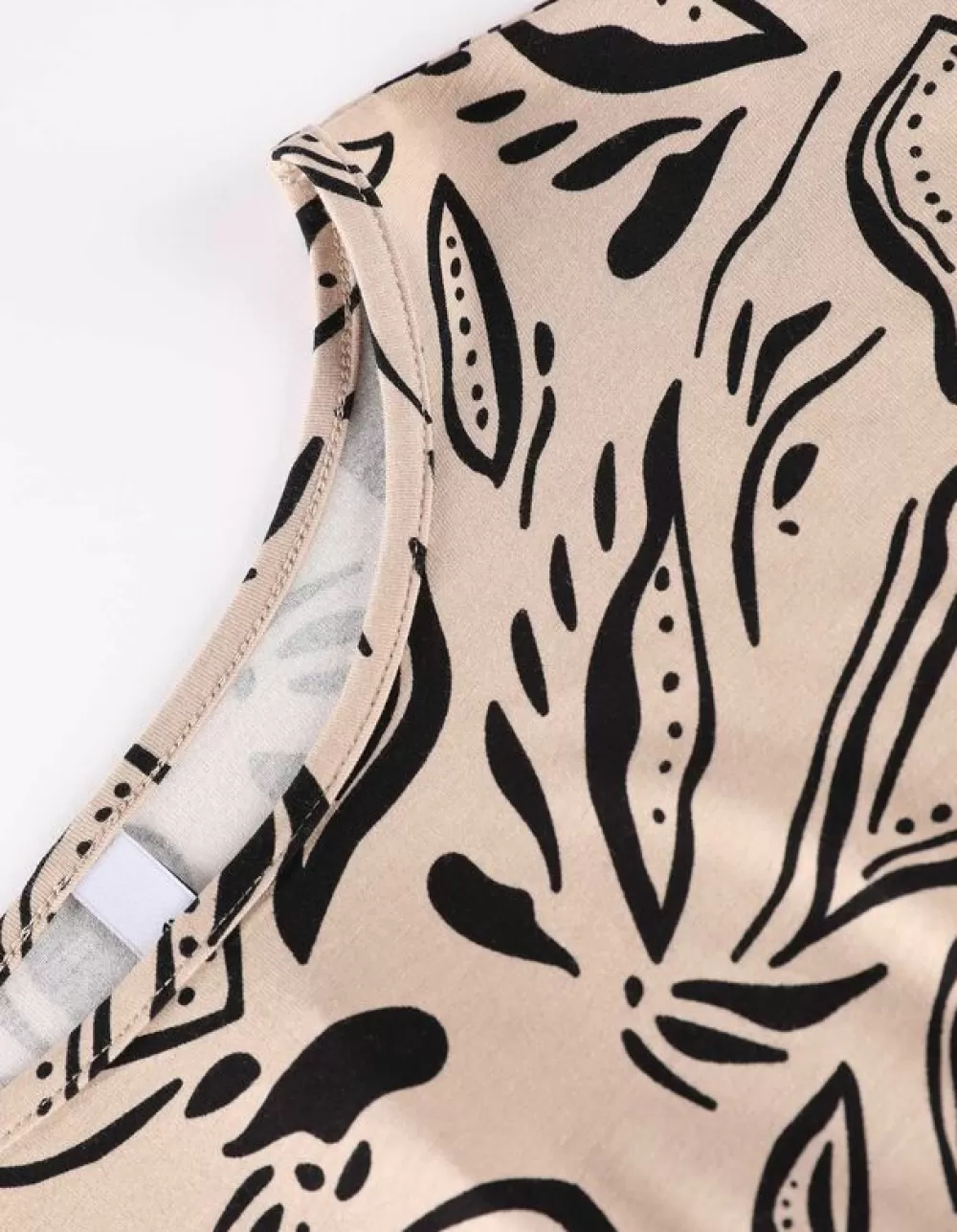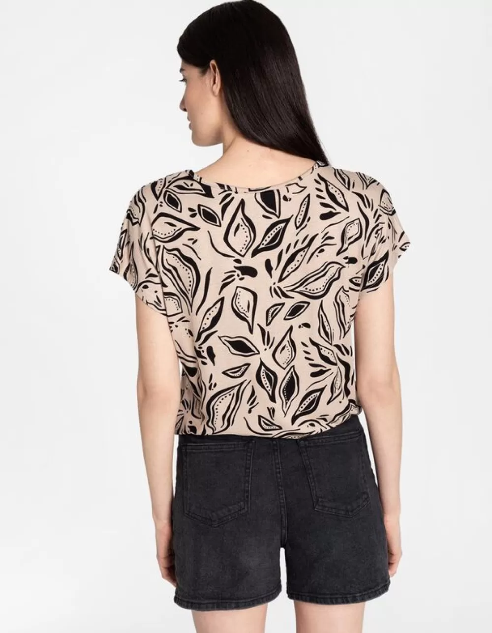 BeigeMotief All-OverRonde HalsOversized MouwenLenzing™ Ecovero™VetersluitingVerstelbare Zoom