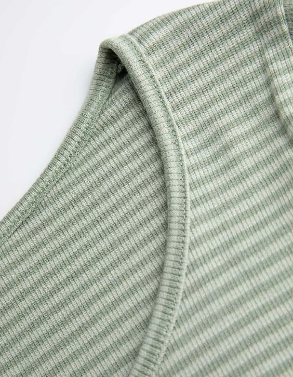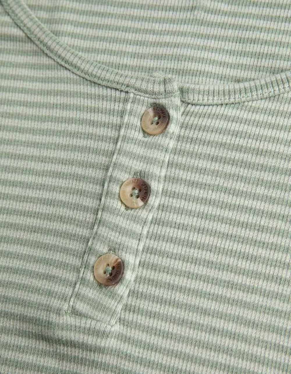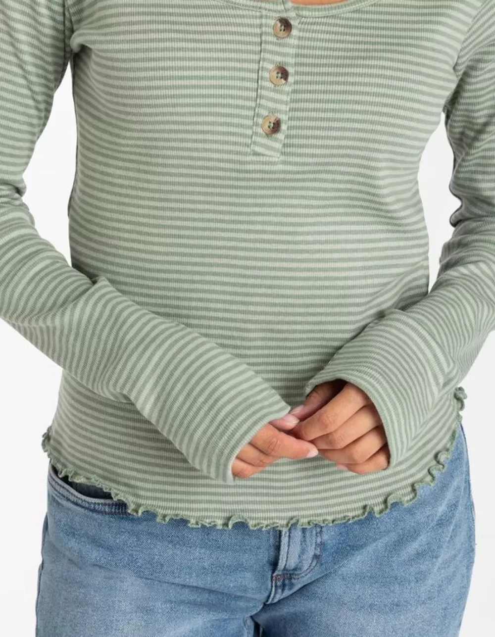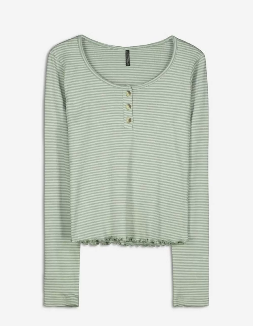 LichtgroenStrepenHenley HalslijnLange MouwenKatoenmixKnoopsluitingGeschulpte Zoom