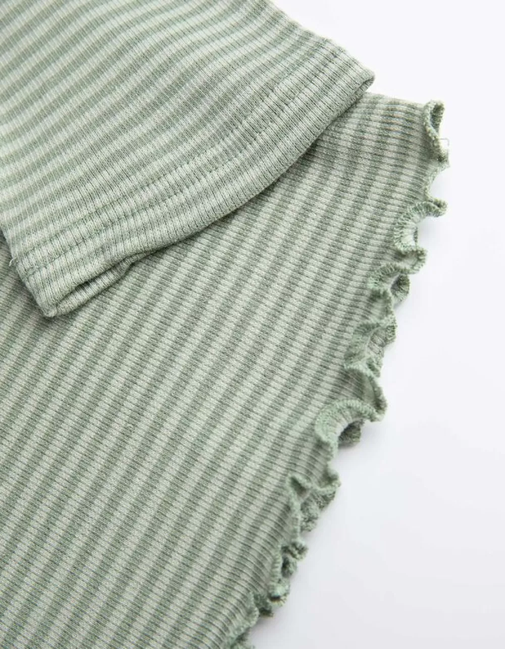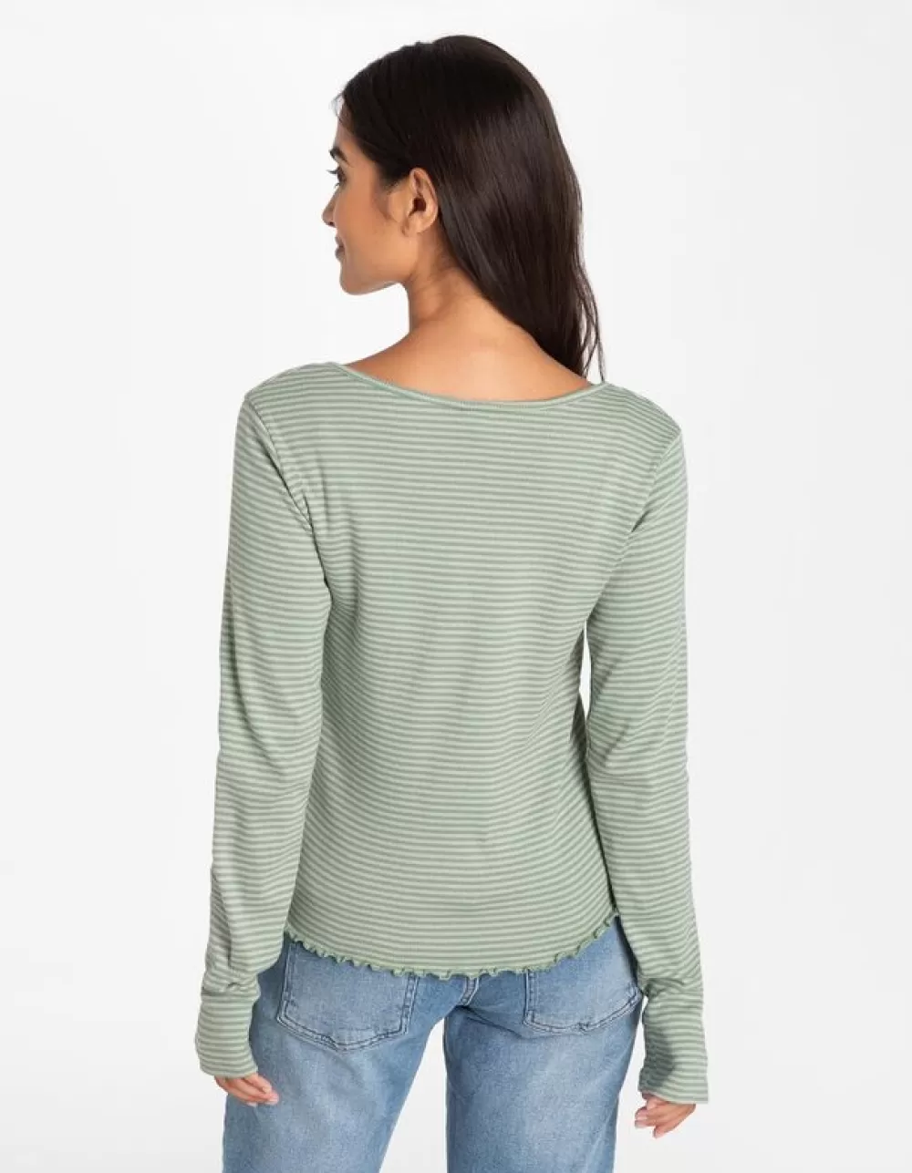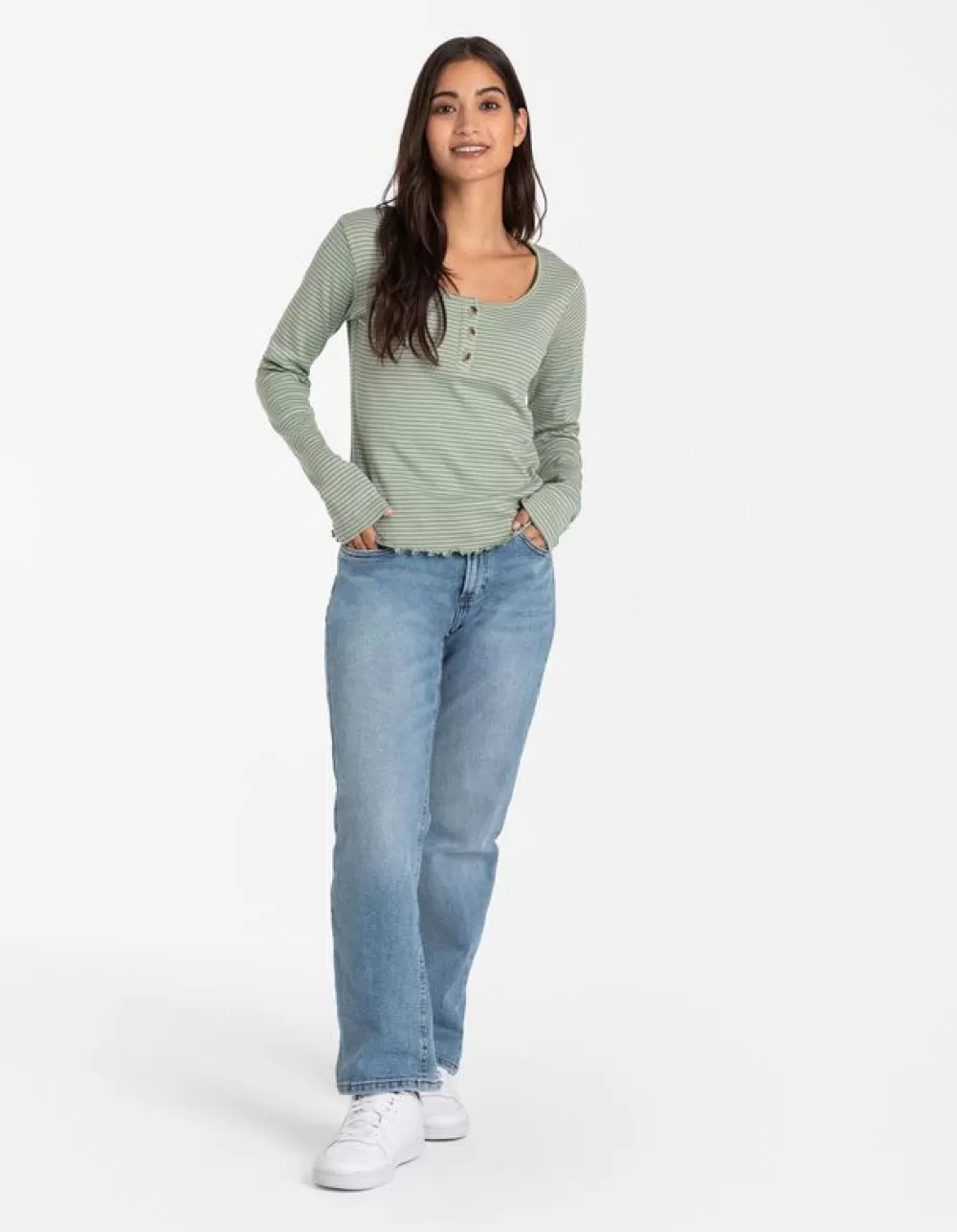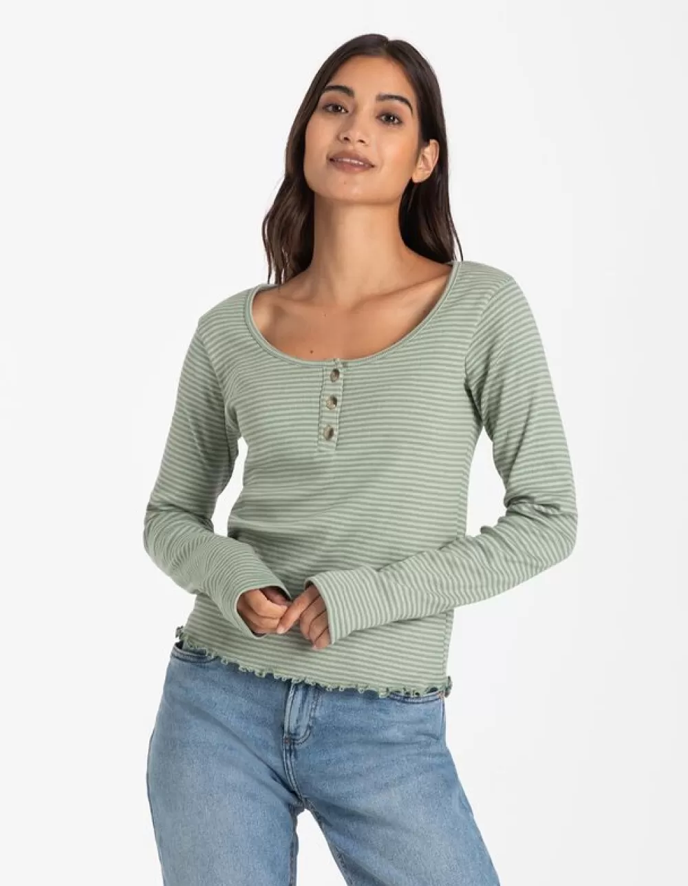 LichtgroenStrepenHenley HalslijnLange MouwenKatoenmixKnoopsluitingGeschulpte Zoom