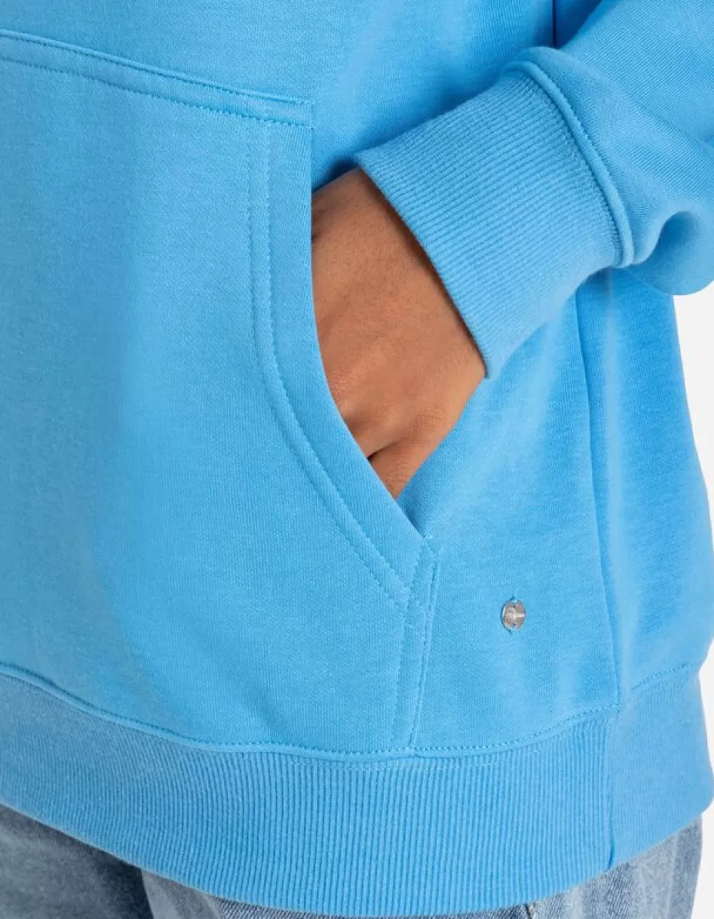 BlauwEffenKapLange MouwenSweatstofKoordKangoeroezakMetallic Details