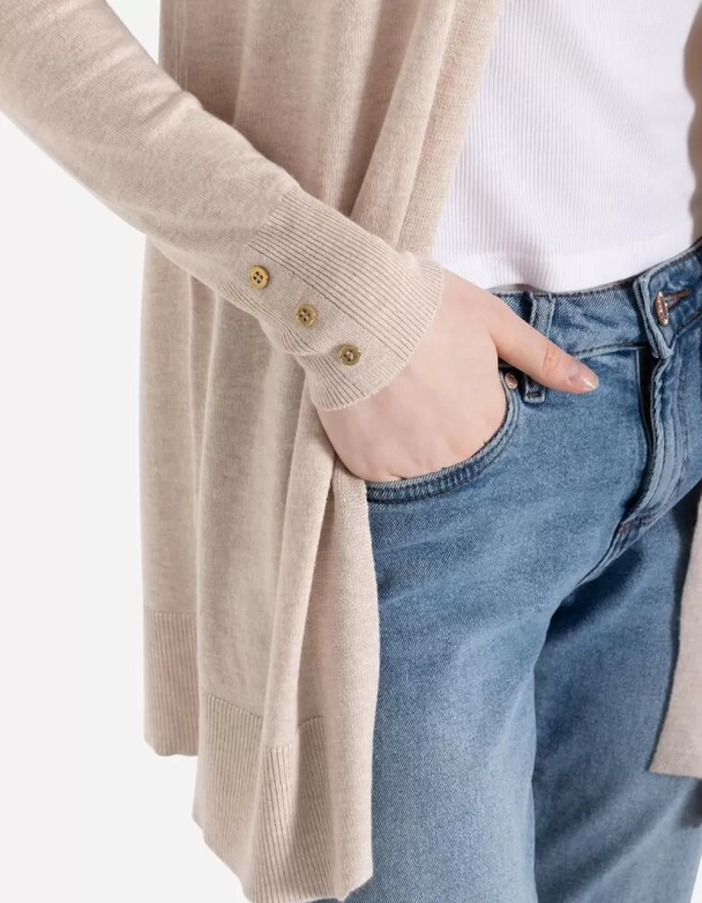 BeigeGemeleerdRegular FitViscosemixZonder SluitingMet StretchSierknopenSierknopen