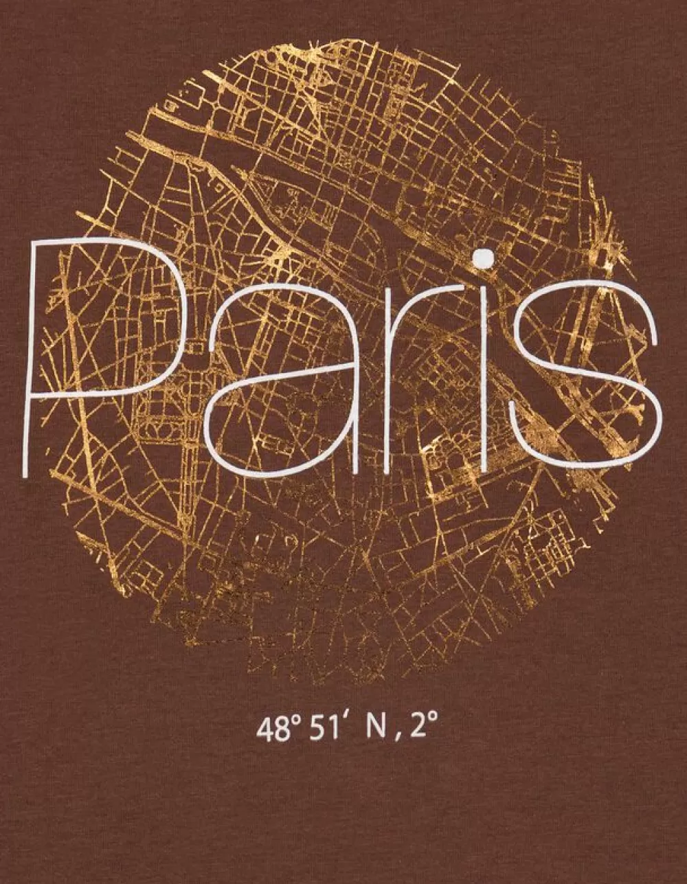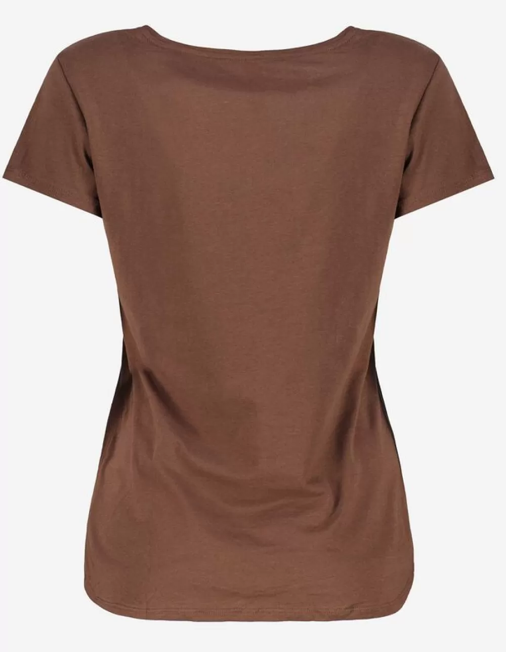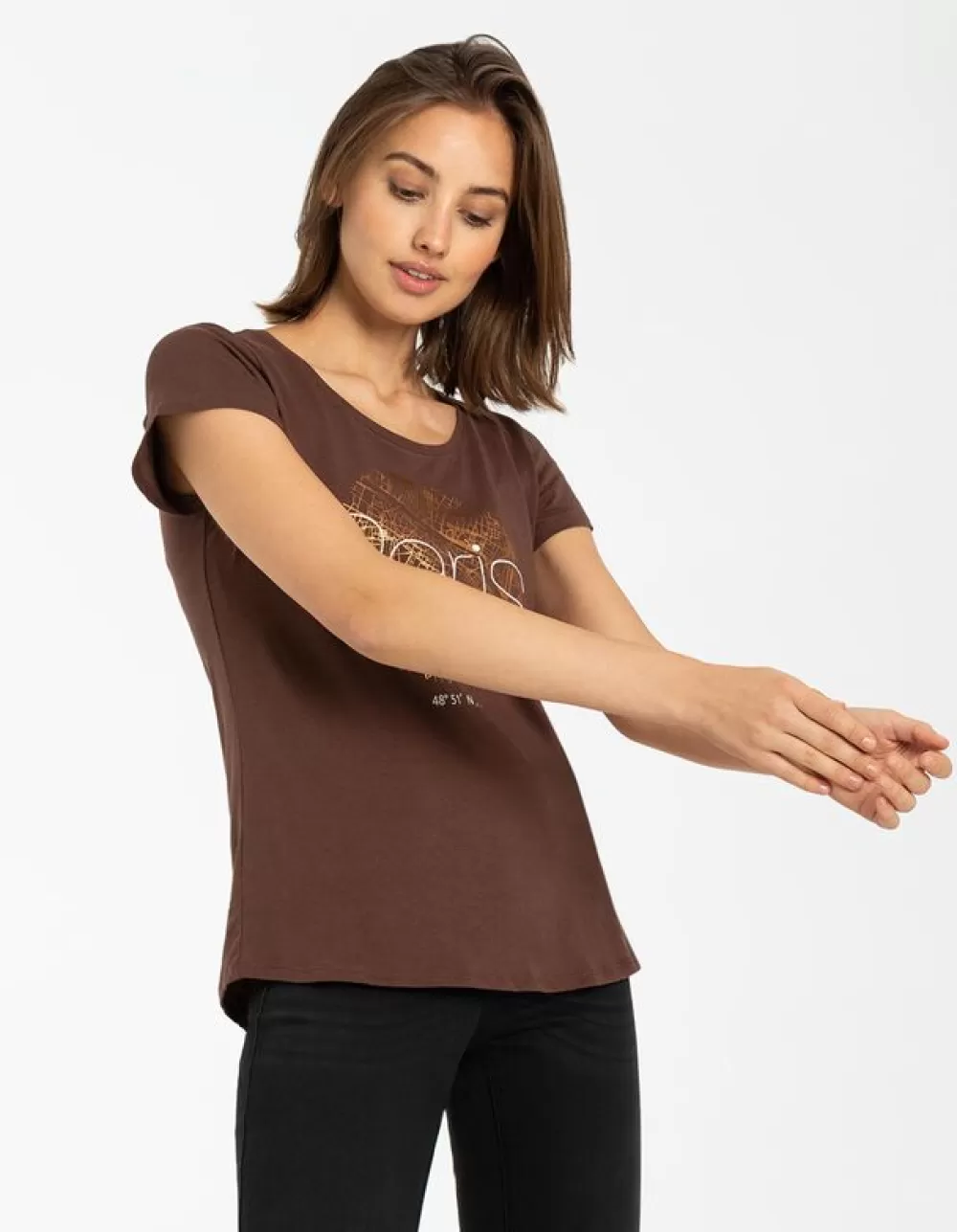 DonkerbruinEffenRonde HalsKorte MouwenKatoenGlitterprint