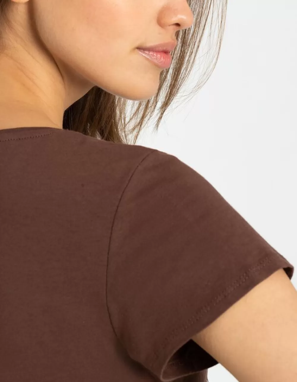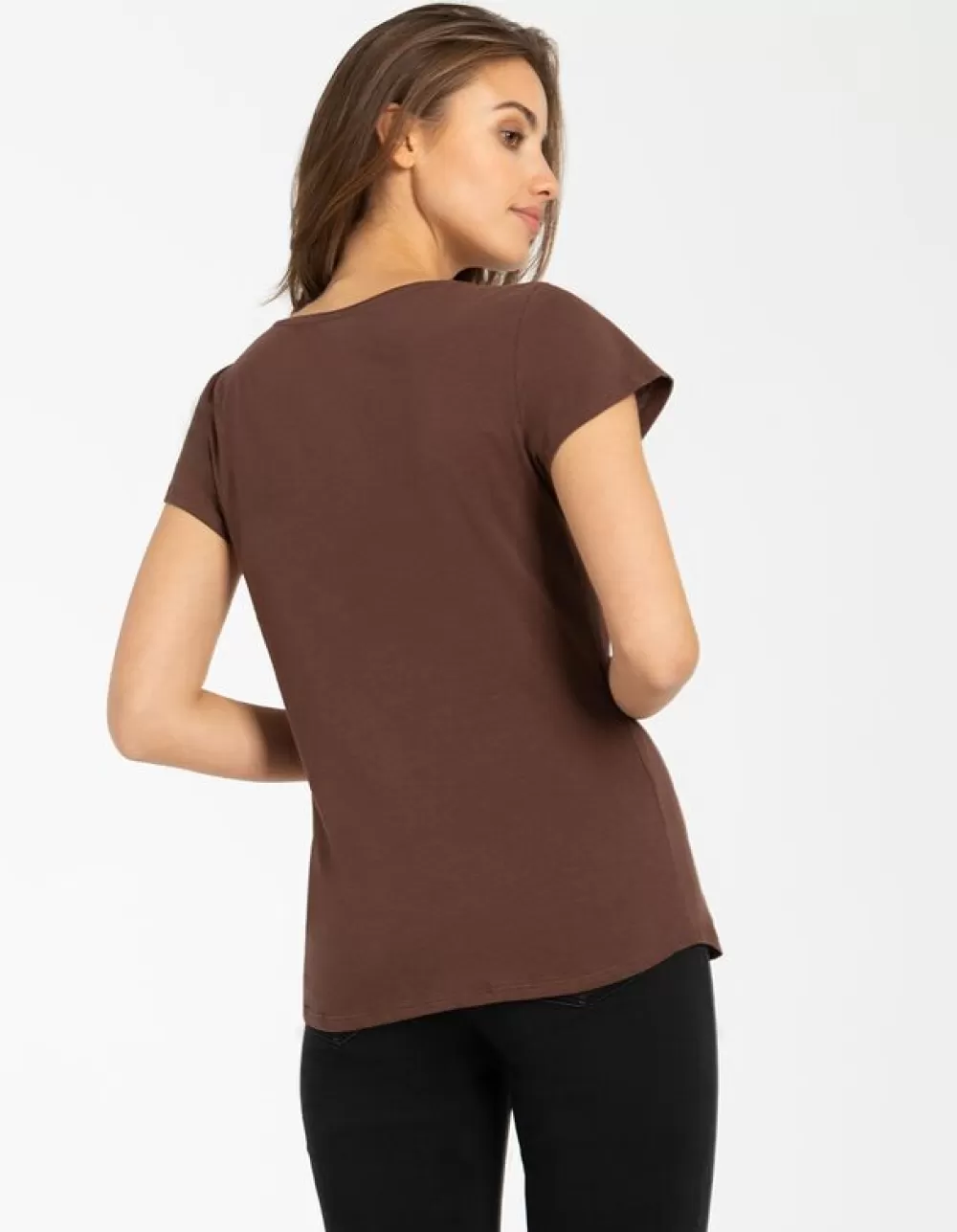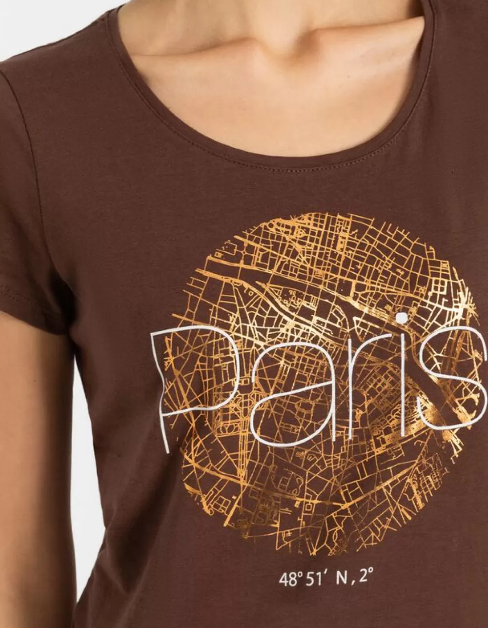 DonkerbruinEffenRonde HalsKorte MouwenKatoenGlitterprint
