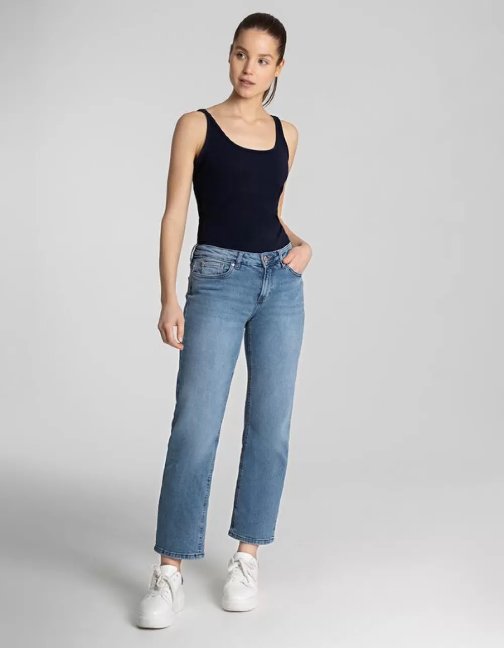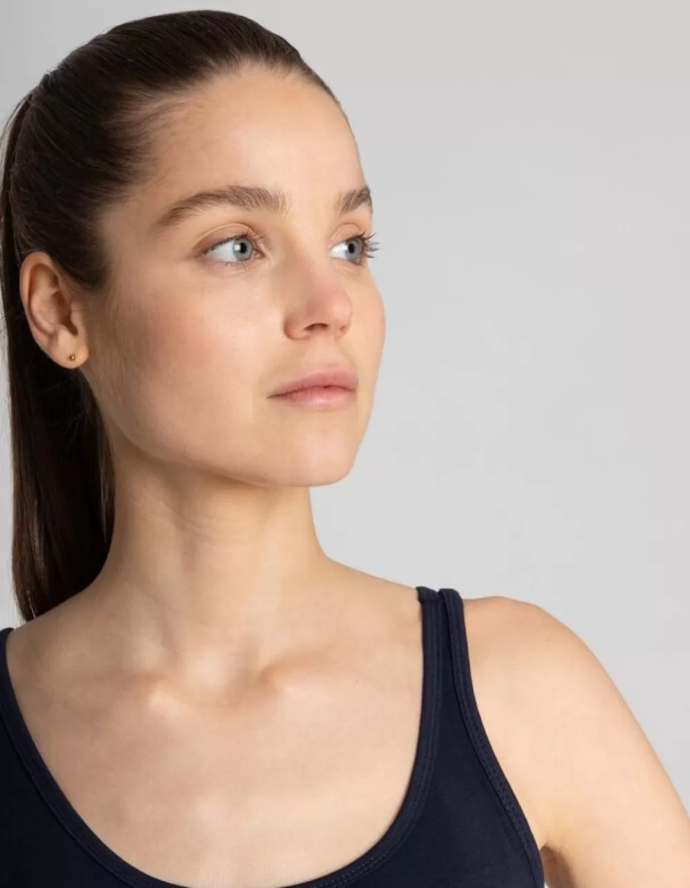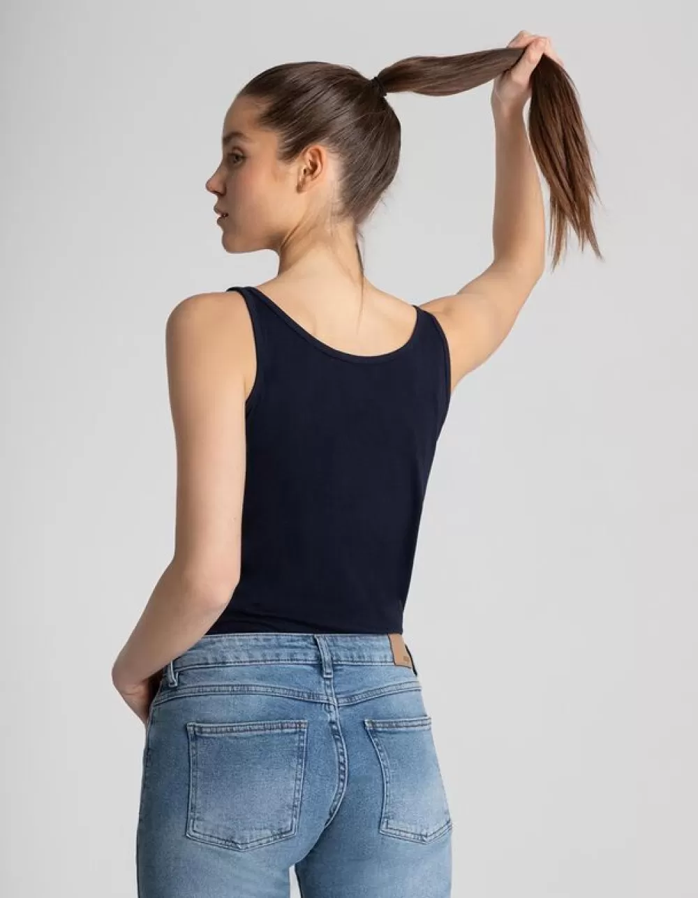 DonkerblauwEffenRonde HalsBrede SchouderbandjesKatoenmixZonder SluitingMet Stretch