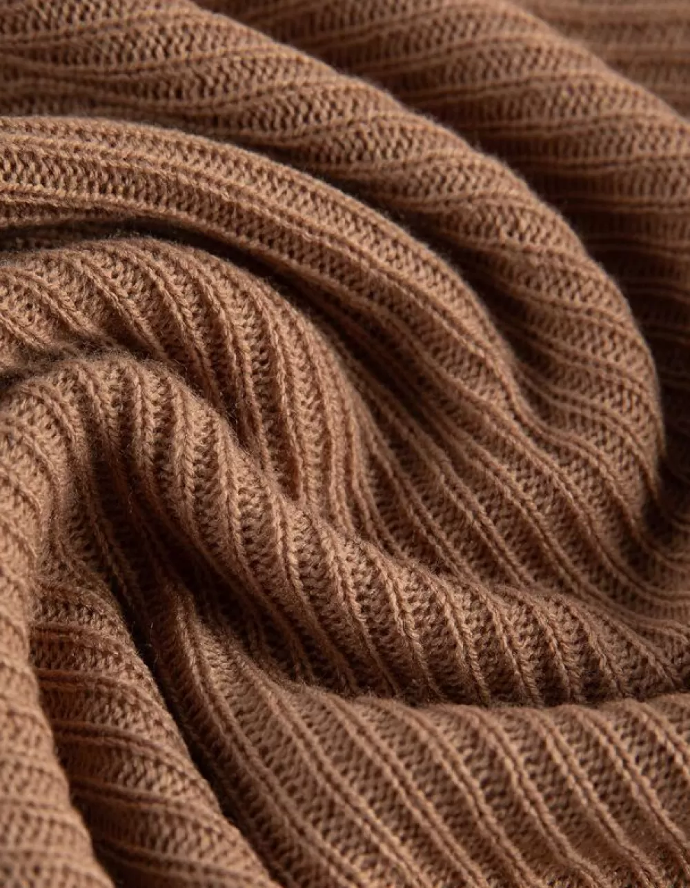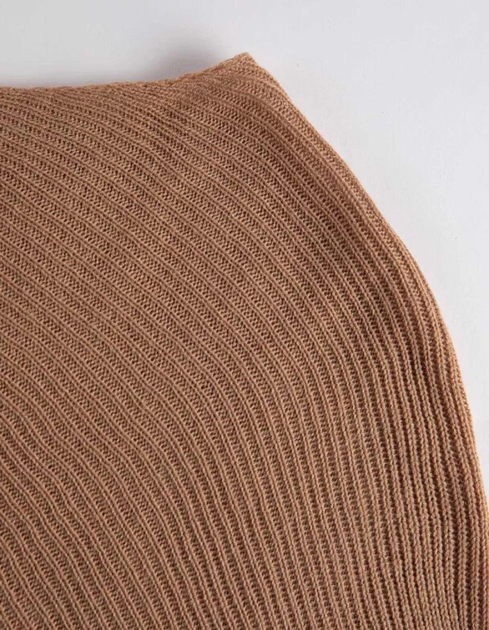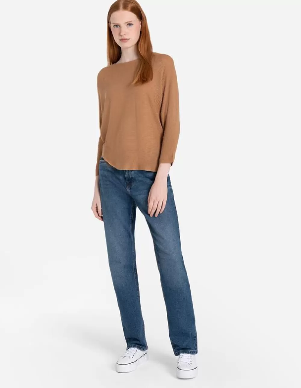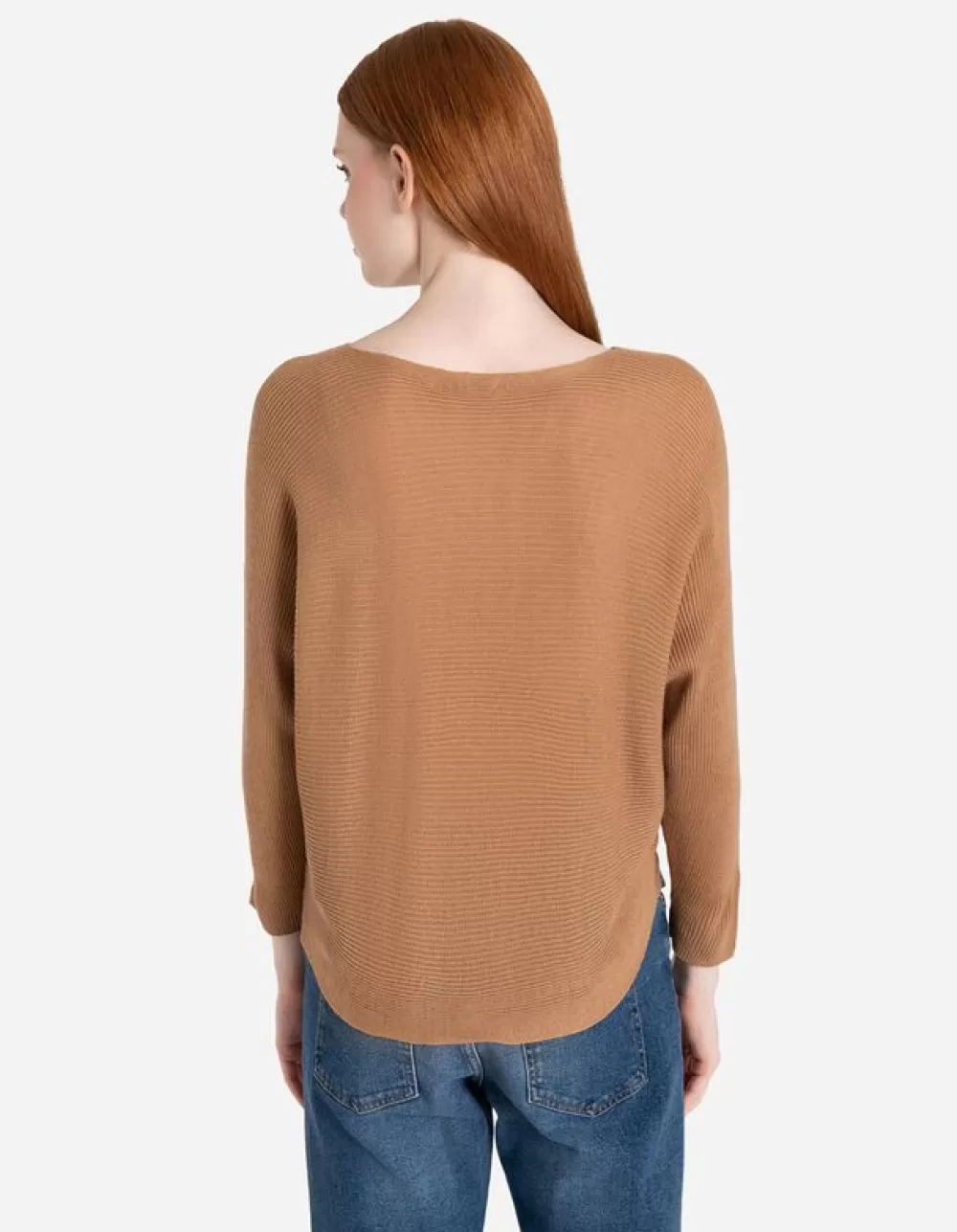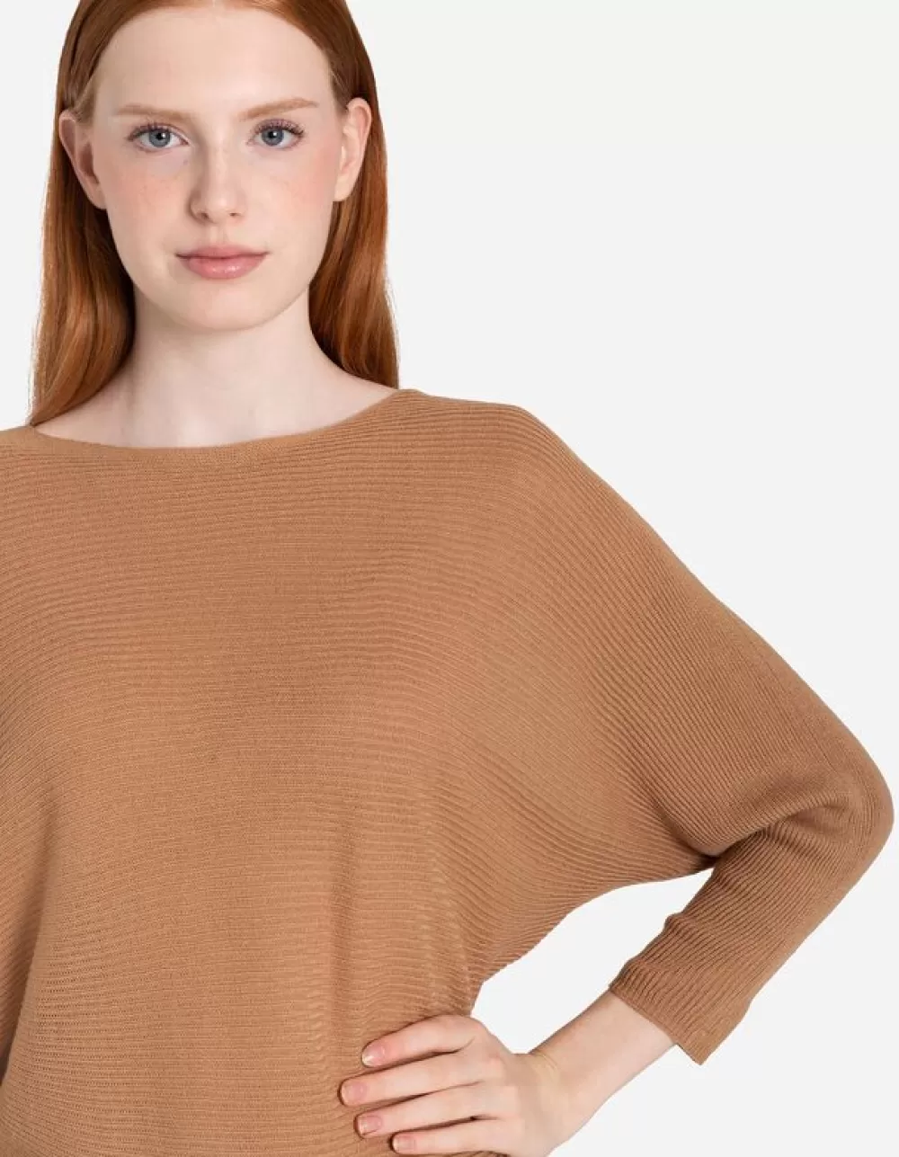 LichtbruinEffenRonde HalsVleermuismouwenFijn BreiselZonder SluitingElastische RandenGeribde StructuurMet Stretch