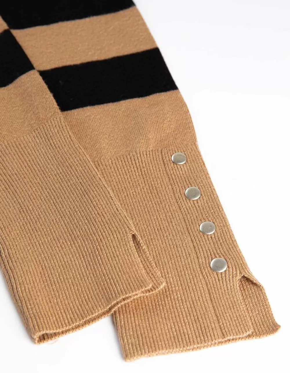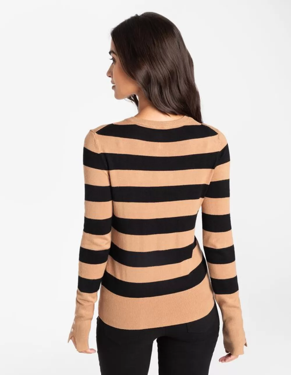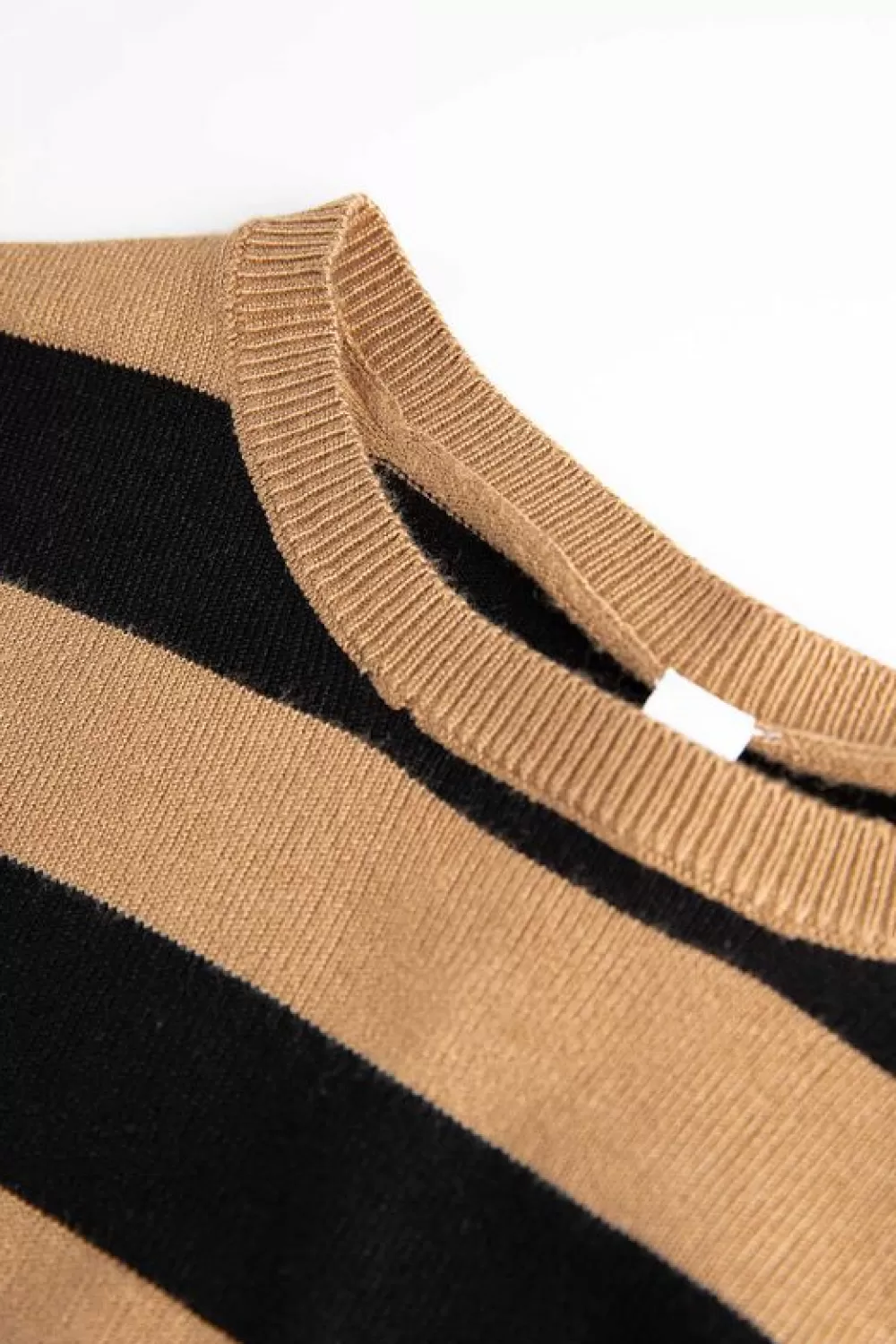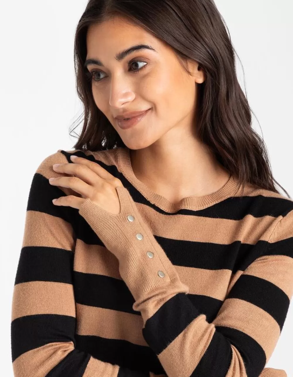 BeigeStrepenRonde HalsLange MouwenViscosemixZonder SluitingSierknopenMet Stretch