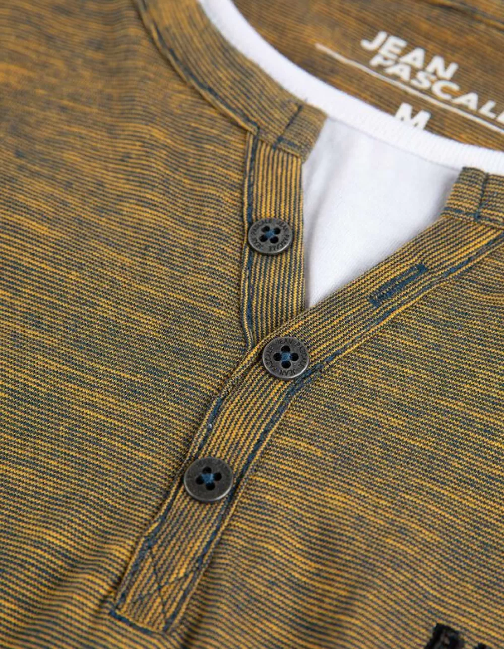 GeelGemeleerdRonde Hals Met KnoopjesLange MouwenKatoenKnoopsluitingDubbellaagse LookBorduursels