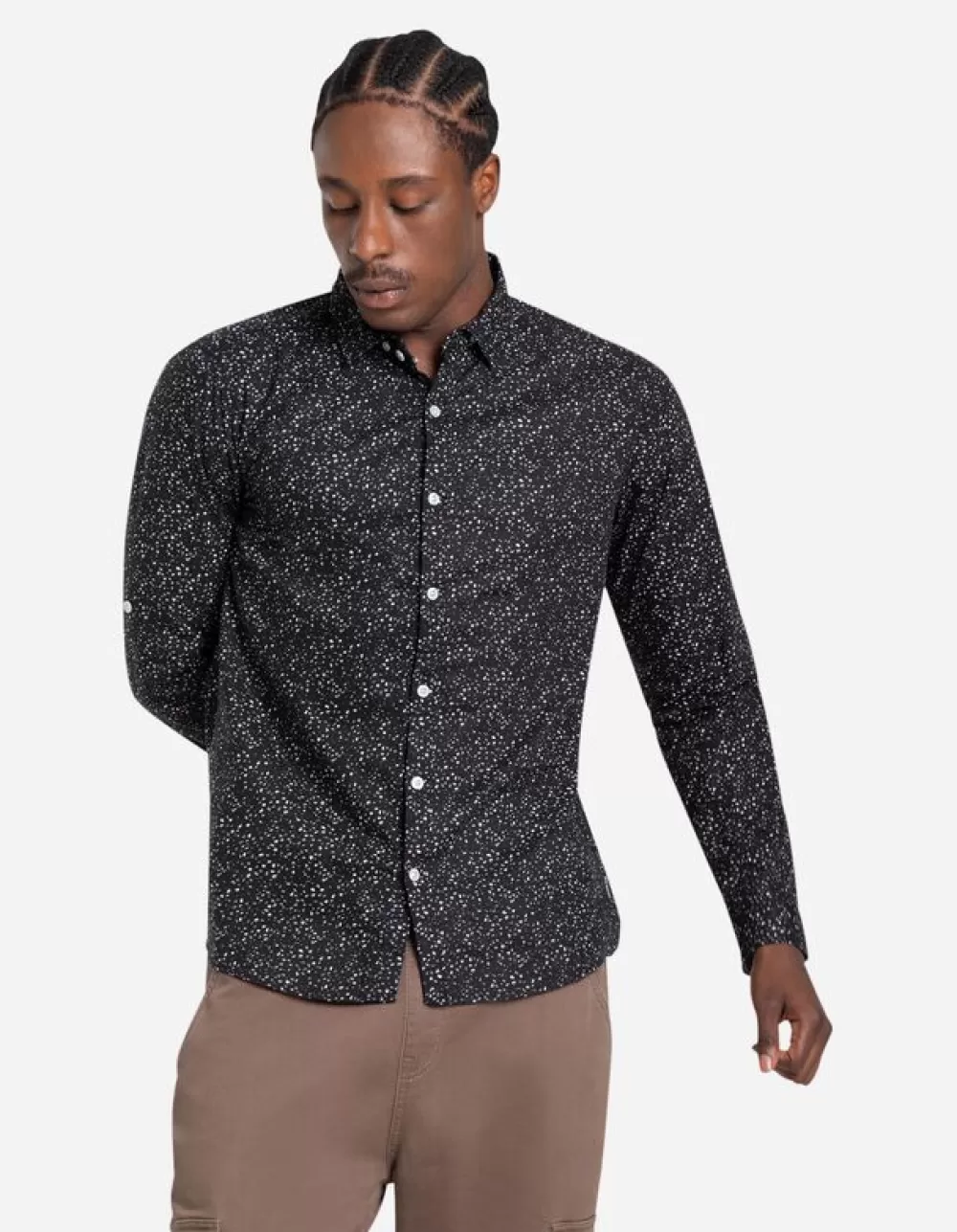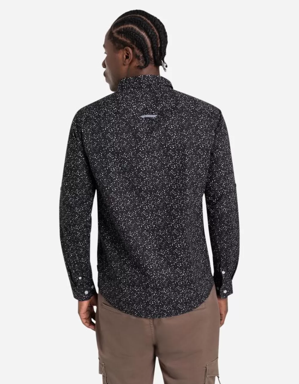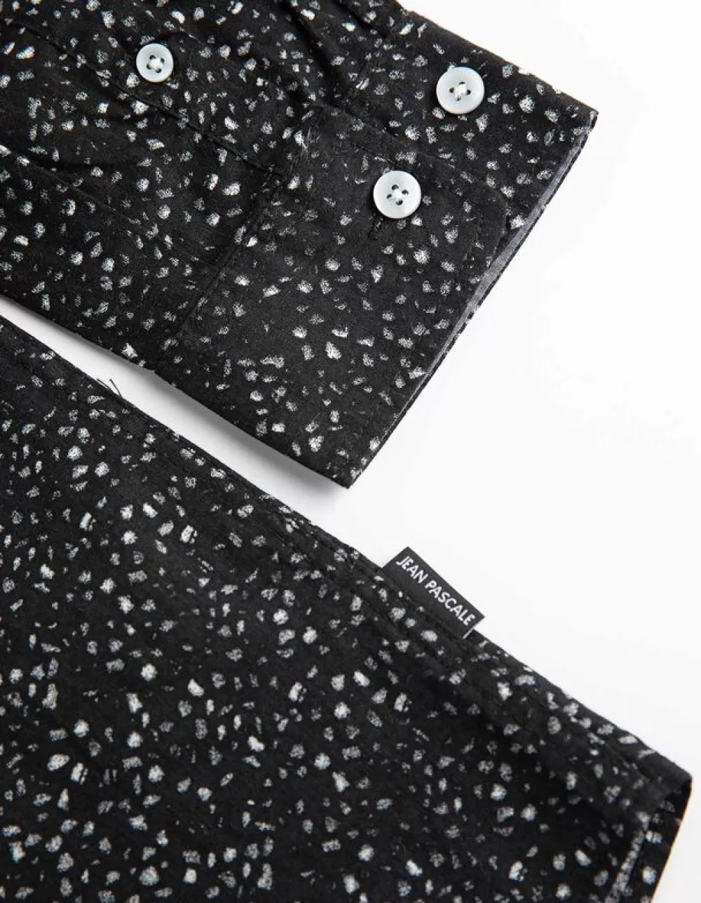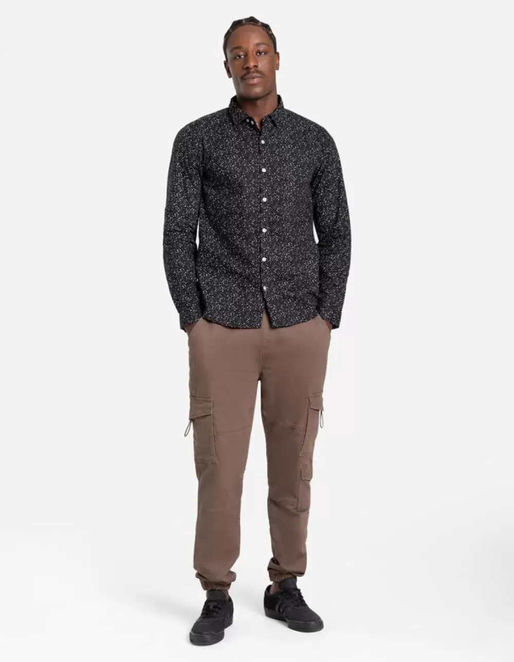 DonkergrijsMotief All-OverOverhemd KraagVerstelbare MouwlengteKatoenKnoopsluitingElastische Randen