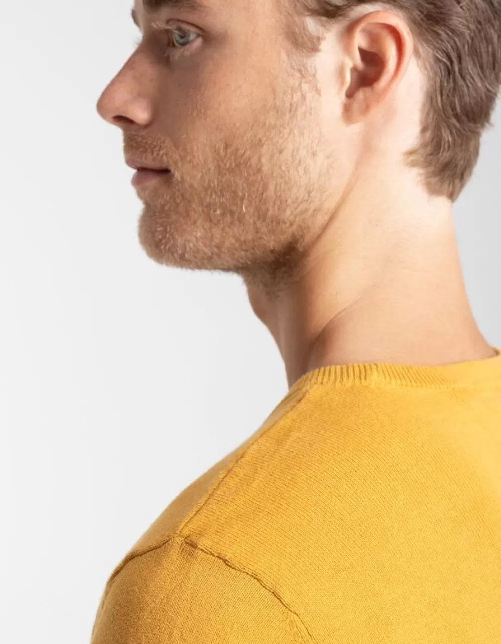 GeelEffenRonde HalsLange MouwenFijn BreiselZonder SluitingElastische RandenRibboorden