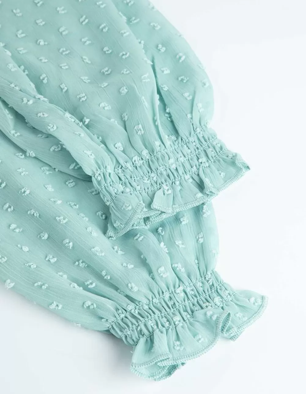 TurkooisEffenV-HalsPofmouwenChiffonZonder SluitingLicht Transparant