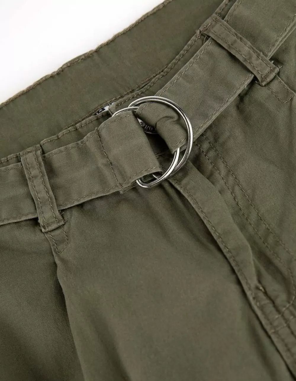 DonkergroenEffenRegular WaistNormale LengteKatoenmixStrikceintuurOpgestikte Zakken