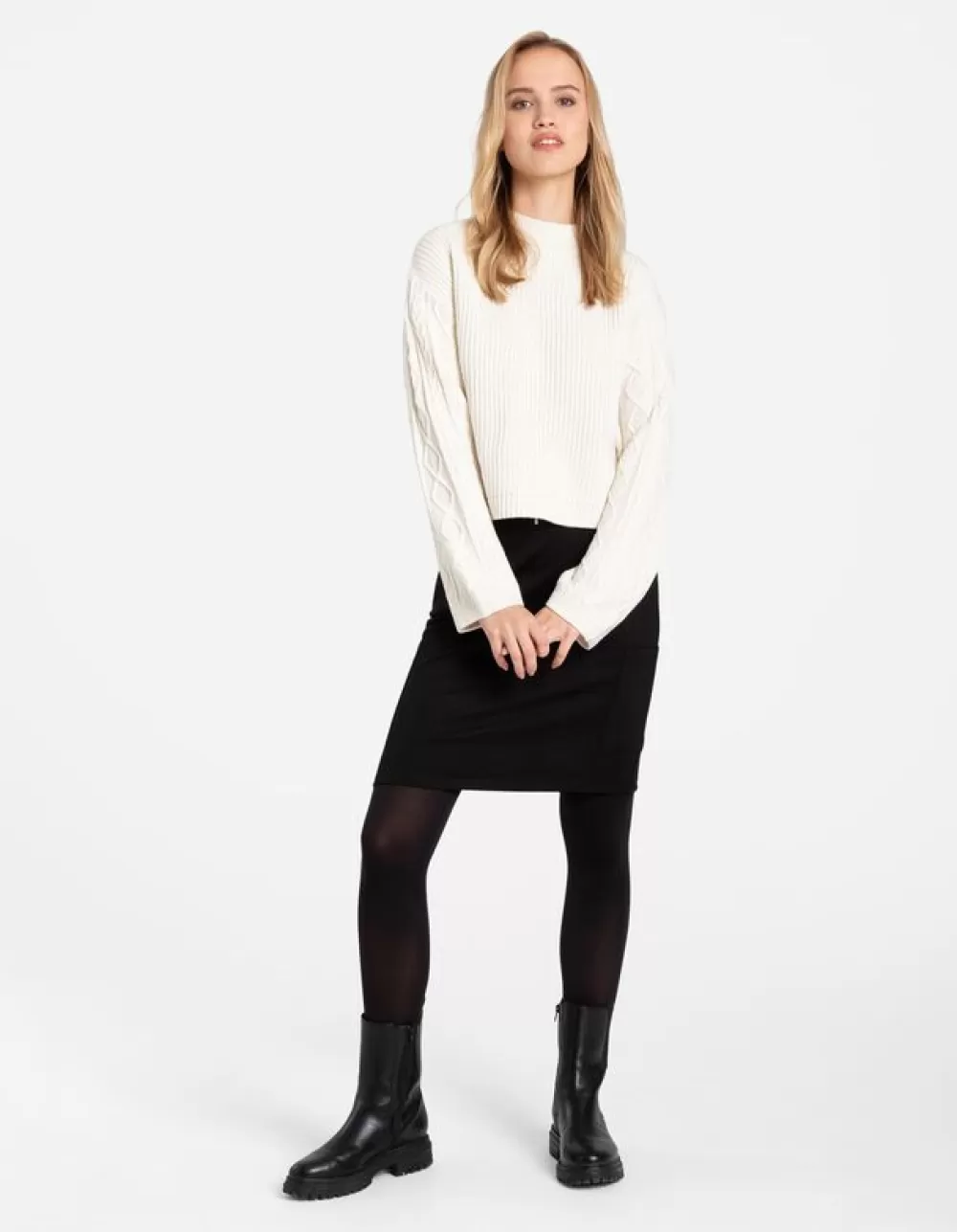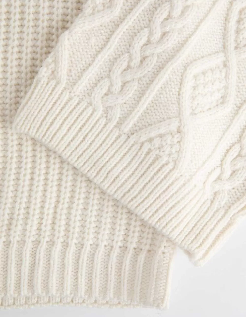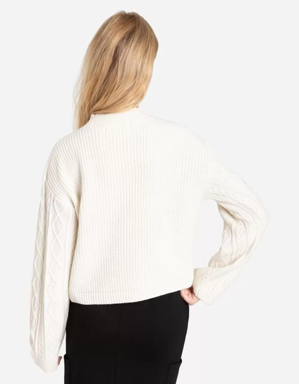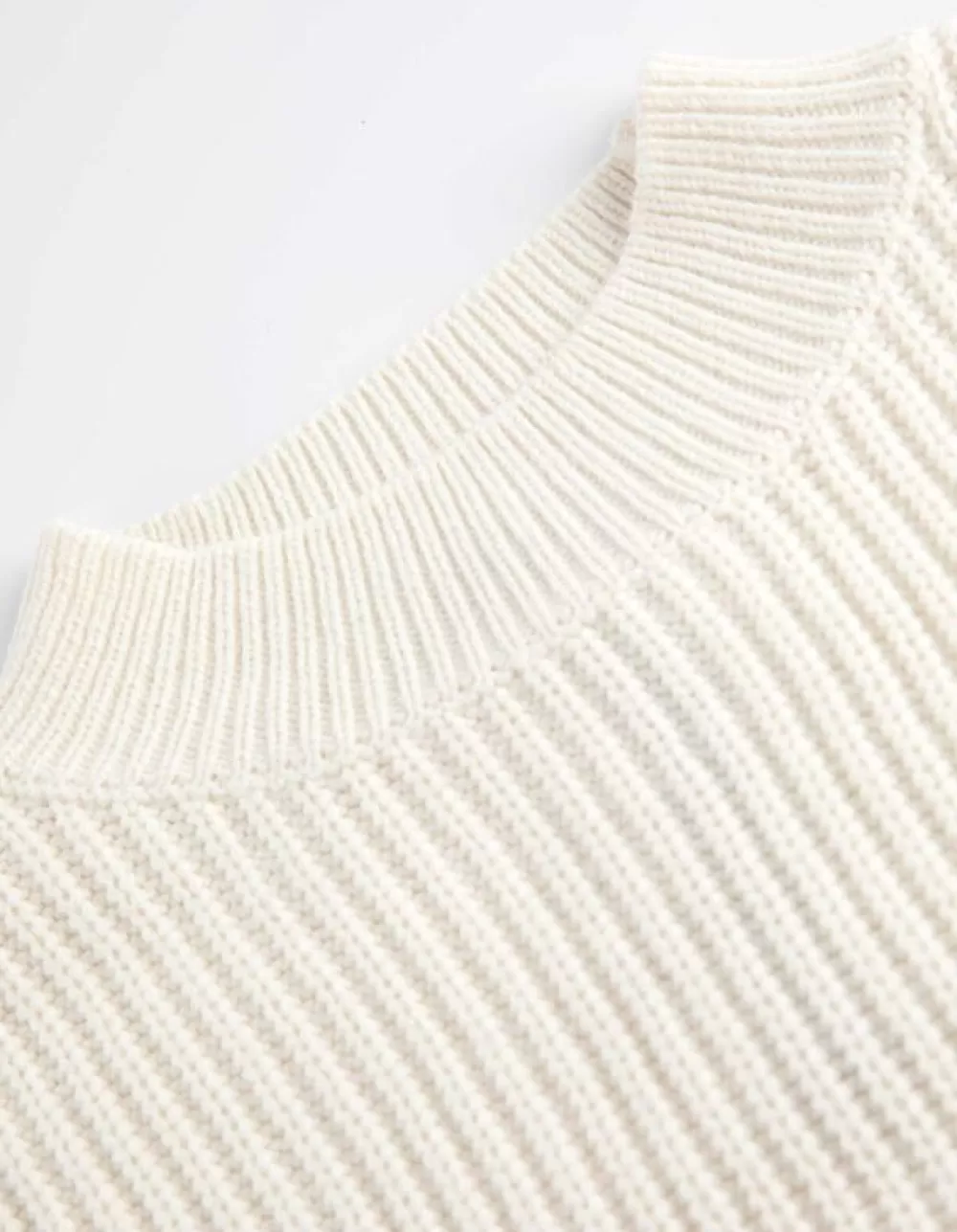 WitEffenColtruiLange MouwenBreigoedZonder SluitingOversized SchoudersGeribde Structuur