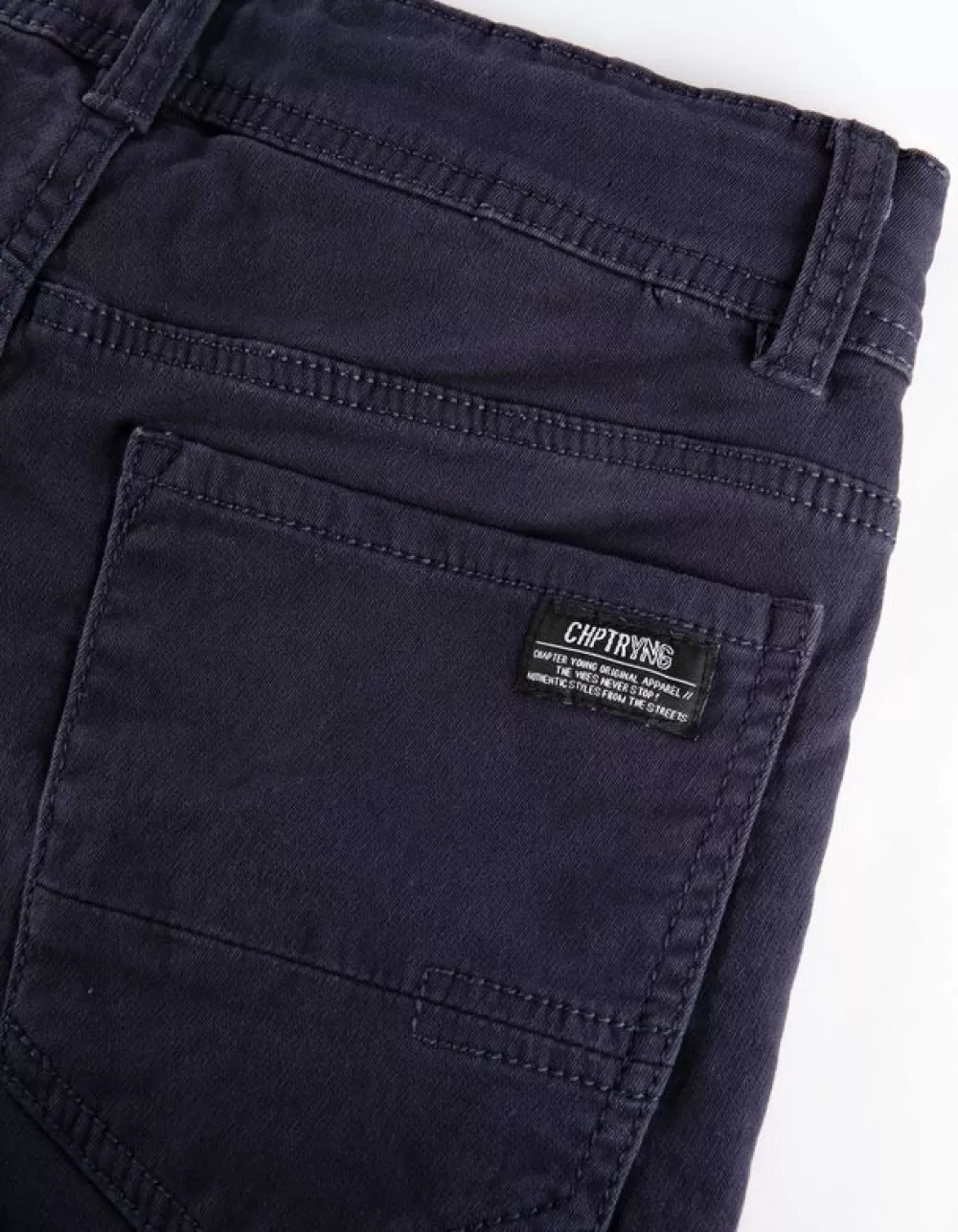 DonkerblauwRegular WaistRegular FitKnielengteKatoenmixKnoop- En RitssluitingTunnelkoord Op Taillehoogte