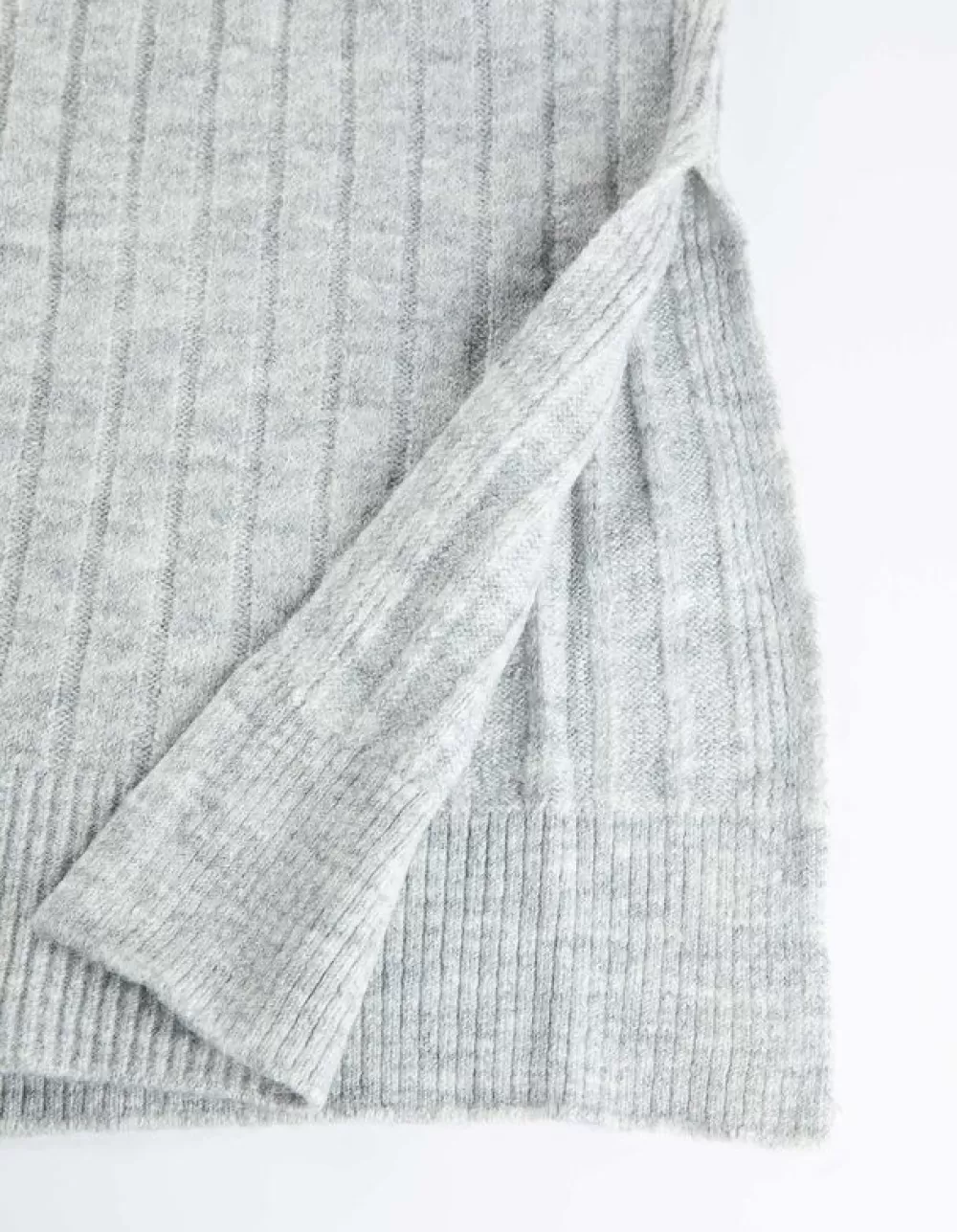 GrijsGemeleerdV-HalsRibtricotGeribde StructuurZijsplit