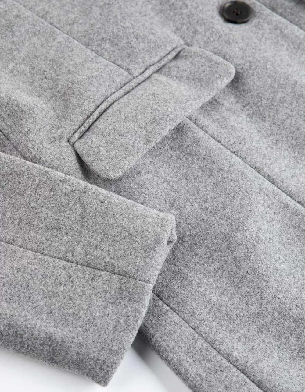 GrijsGemeleerdV-HalsLange MouwenViscoseKnoopsluitingZacht MateriaalKlepzakken
