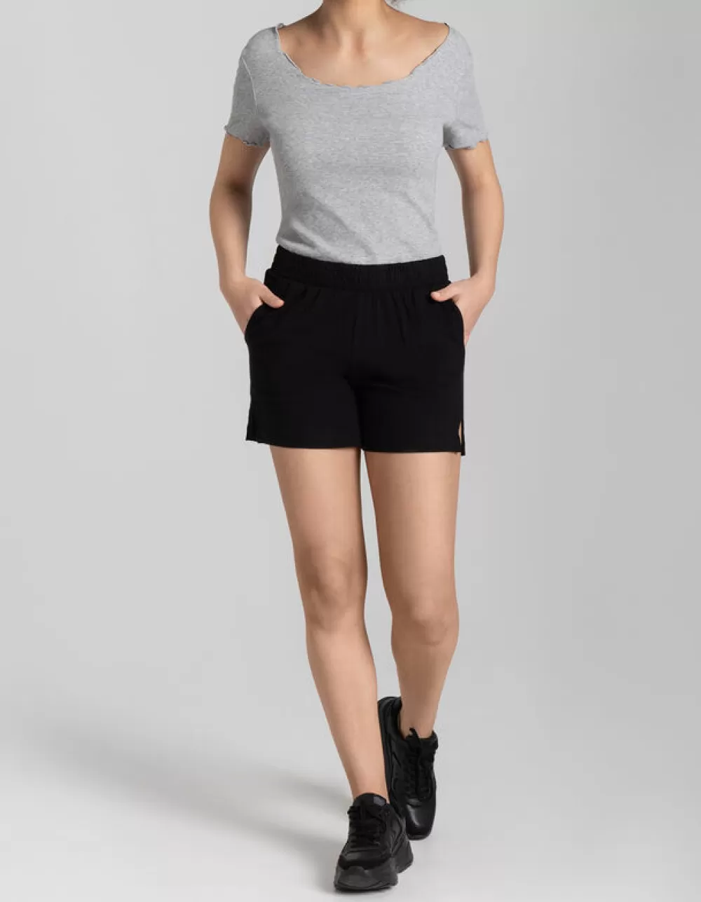 ZwartEffenRegular WaistDijlengteKatoenmixElastische Band
