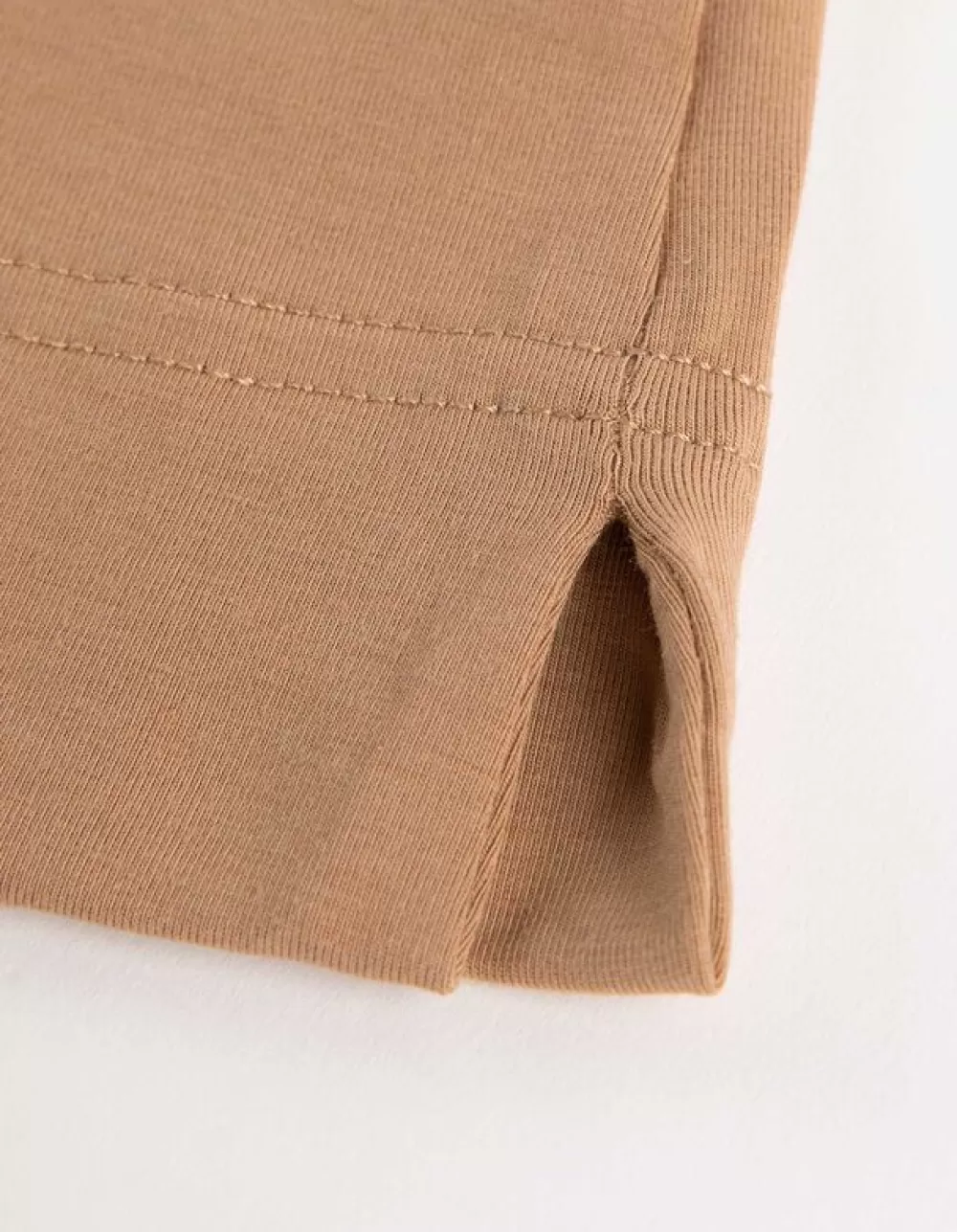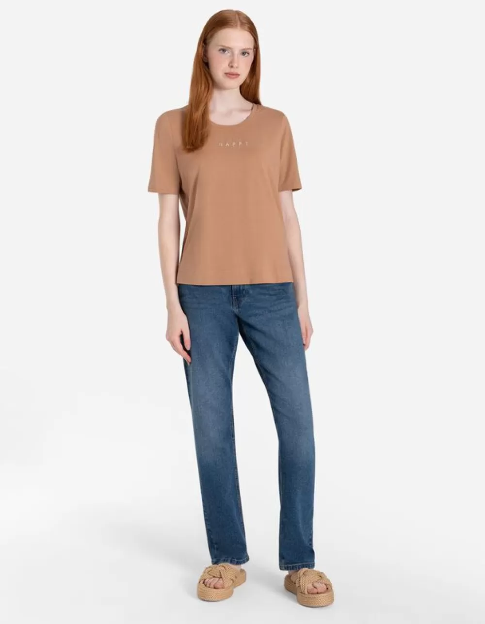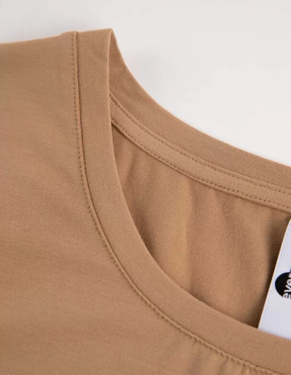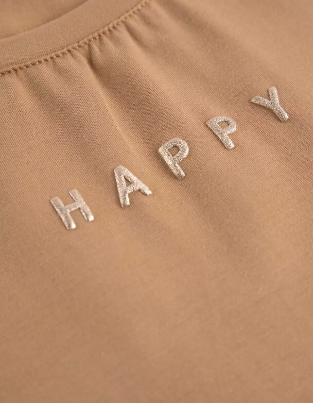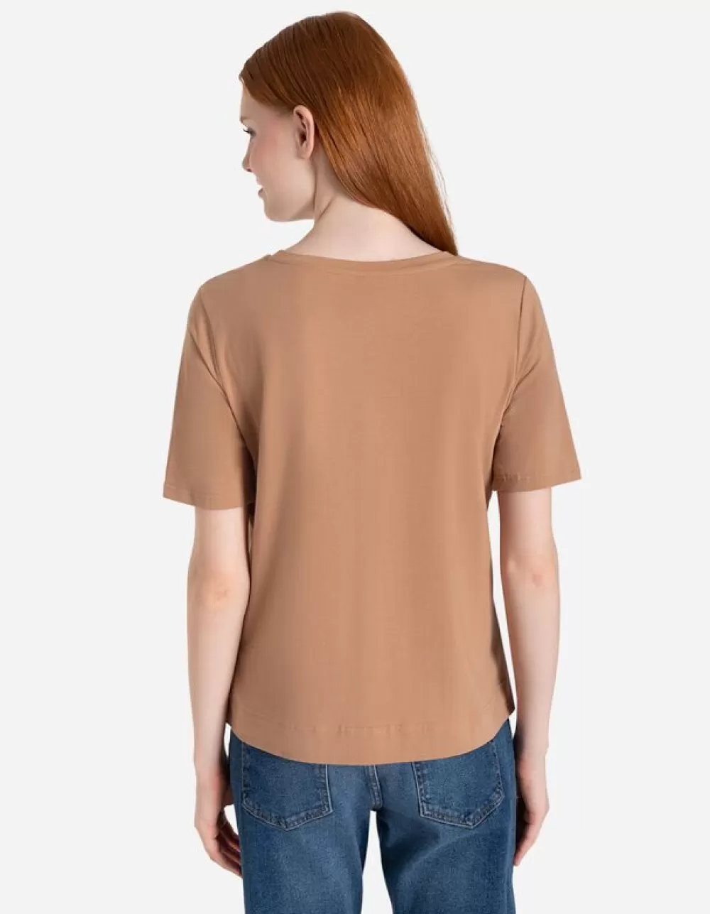 BeigeEffenRonde HalsKorte MouwenModaalPrintMet StretchMet Stretch