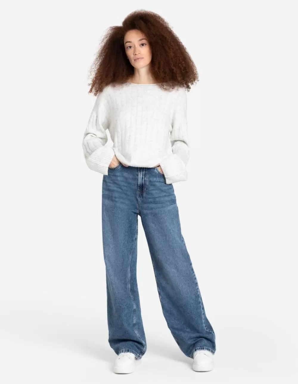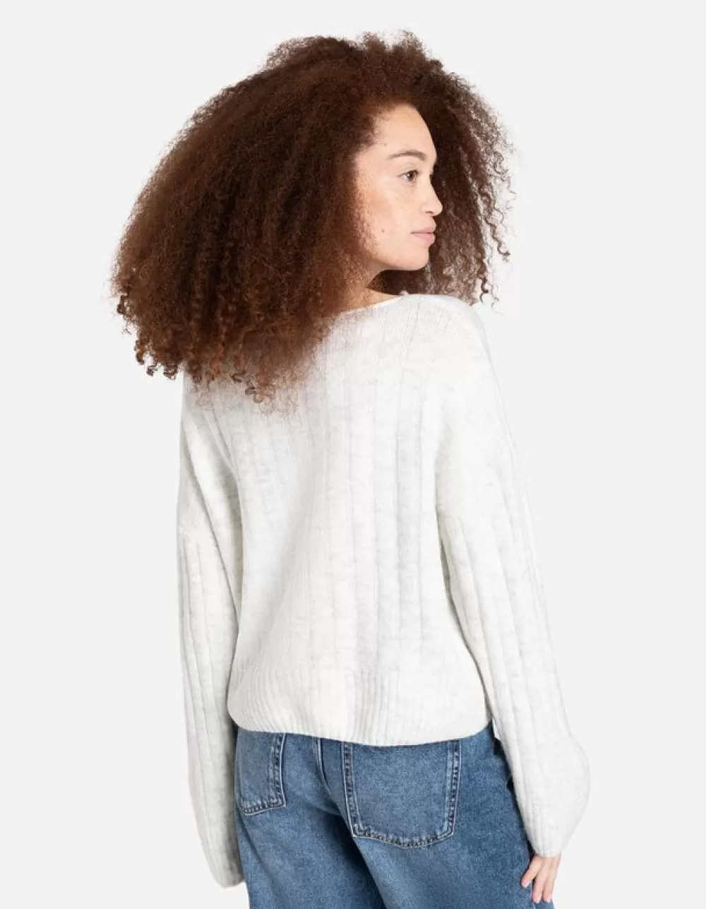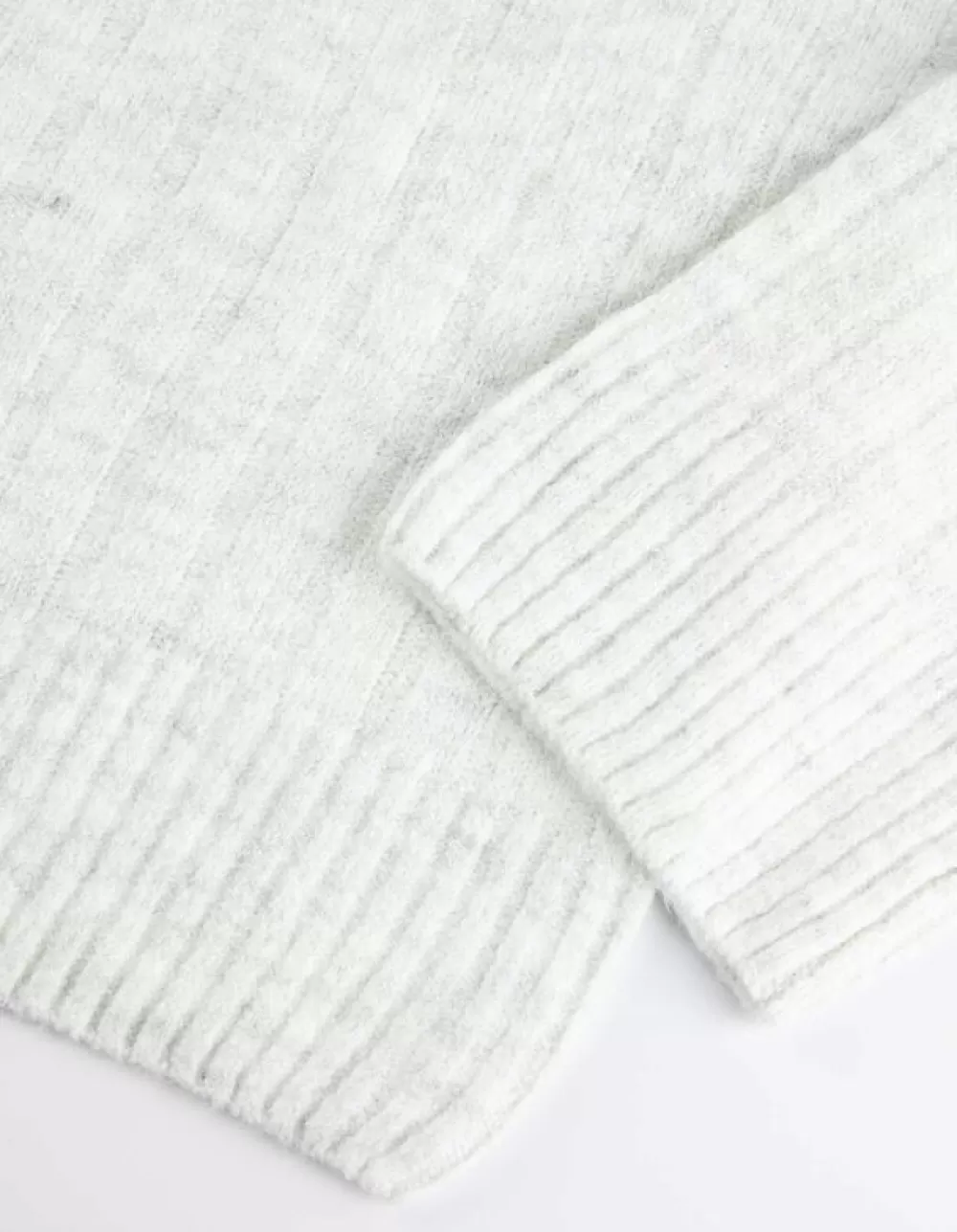 LichtgrijsGemeleerdRonde HalsOversized MouwenBreigoedZonder SluitingGeribde StructuurRolrandjes