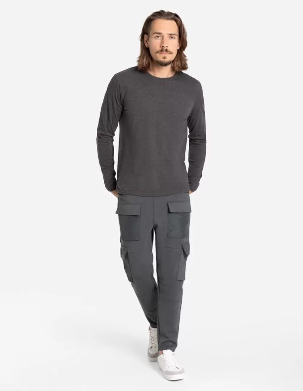DonkergrijsEffenRonde HalsLange MouwenKatoenmixZacht Materiaal