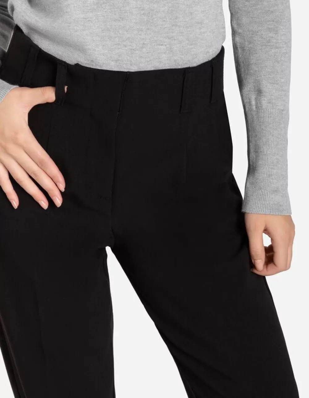 ZwartEffenRegular WaistNormale LengteViscoseVerborgen RitssluitingSteekzakkenRiemlussen