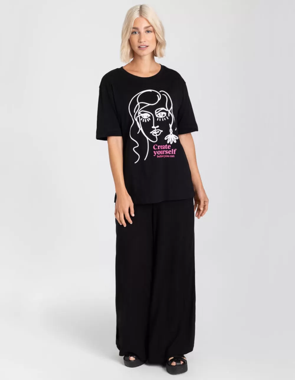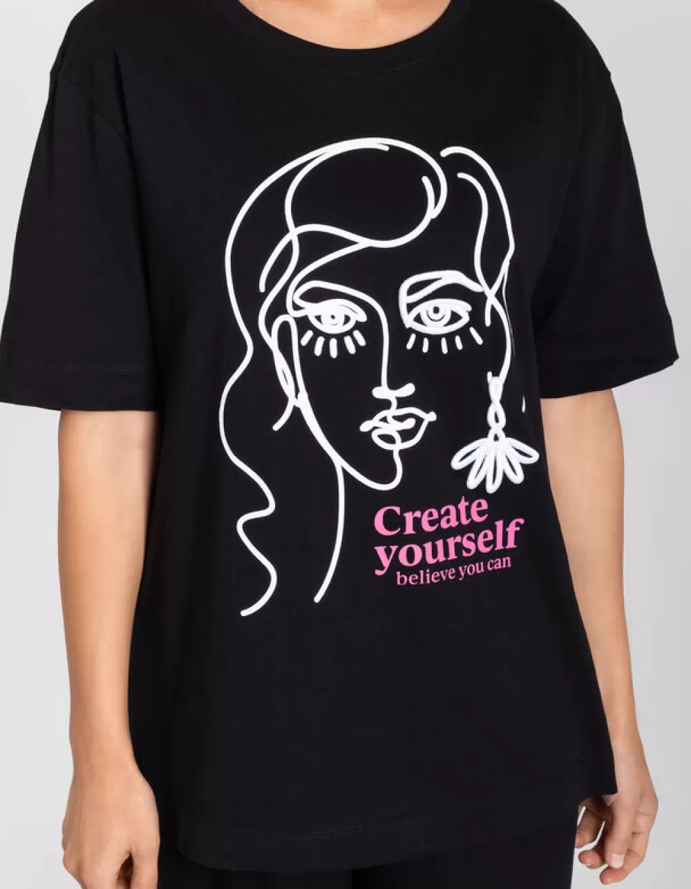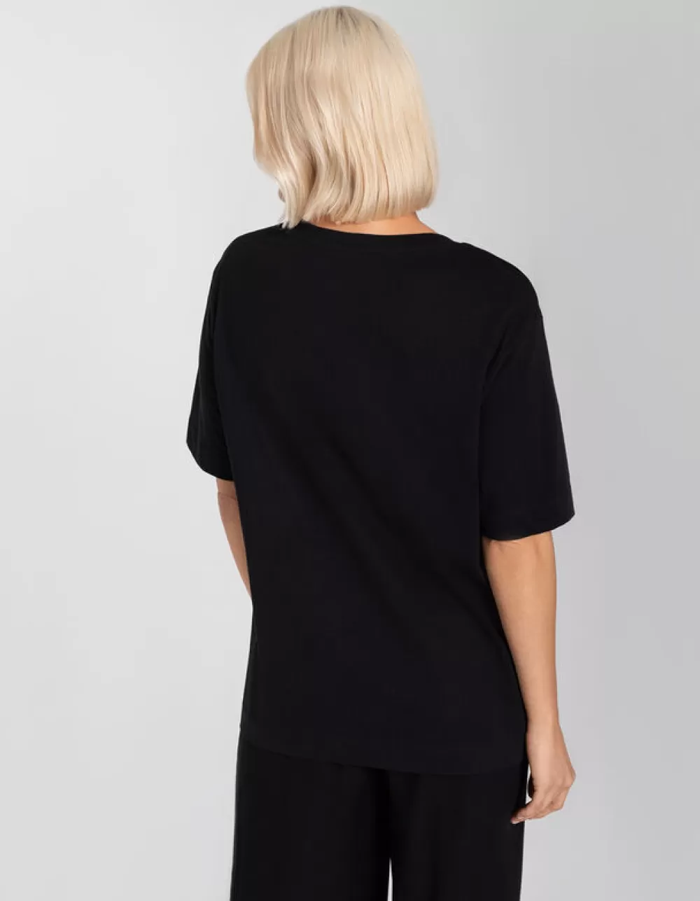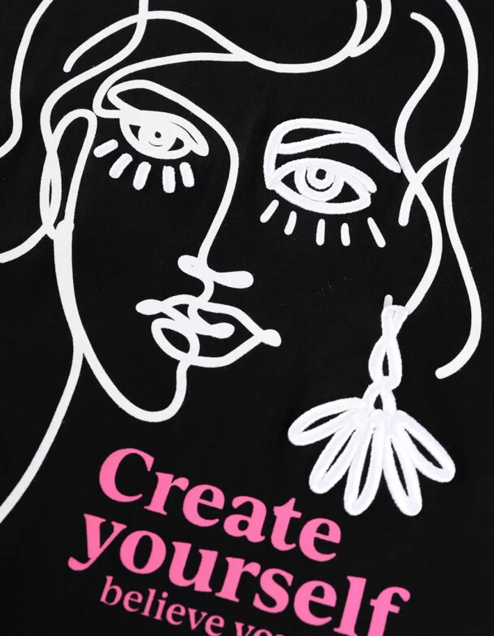 ZwartPrintRonde HalsKorte MouwenKatoenBorduursels