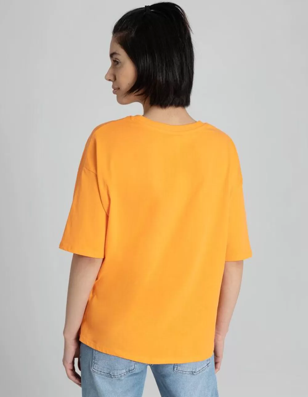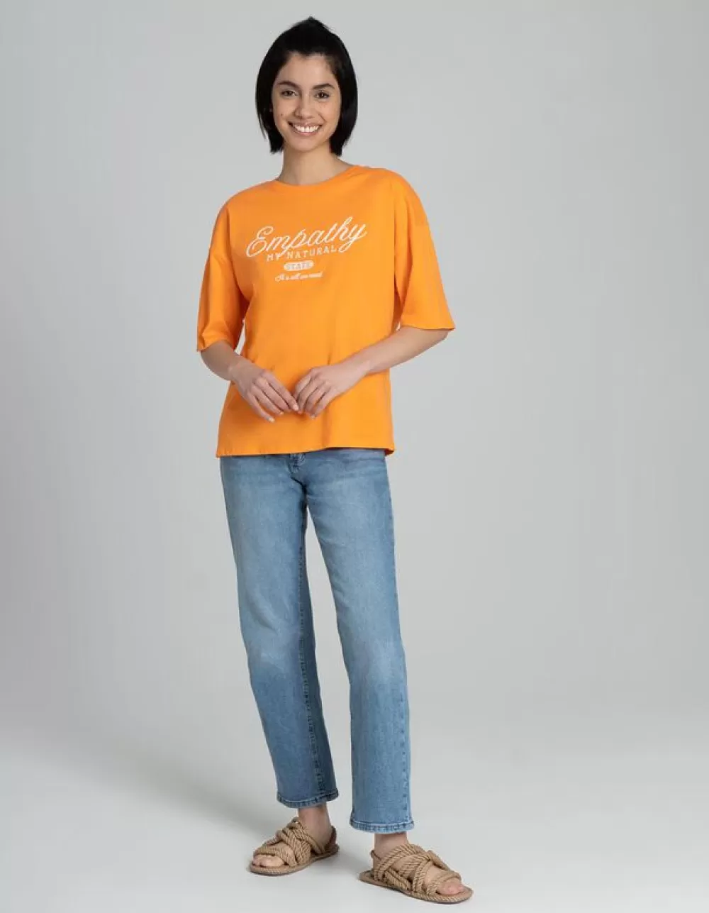 OranjeEffenRonde HalsKorte MouwenKatoenTekstprint