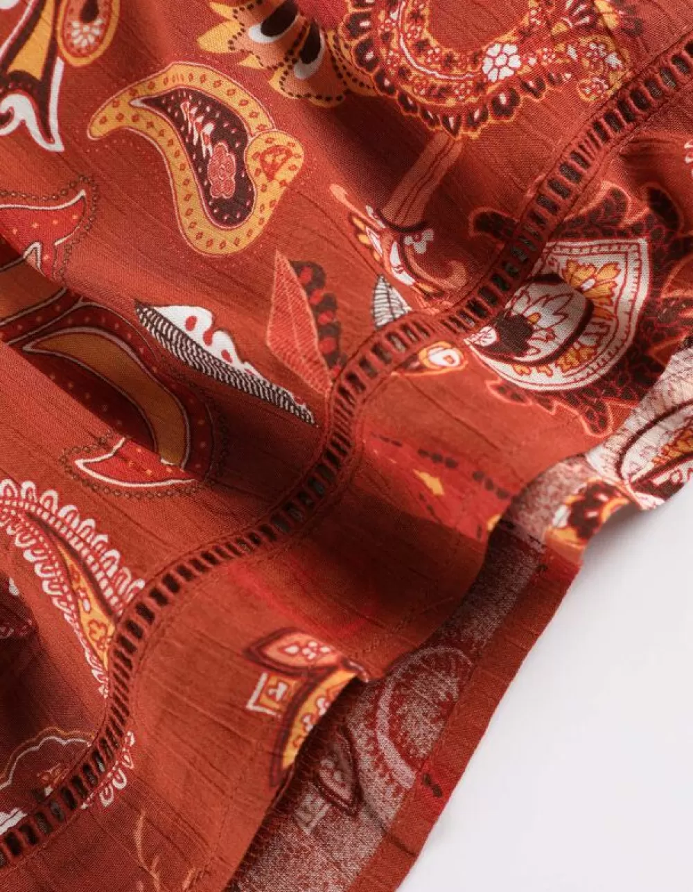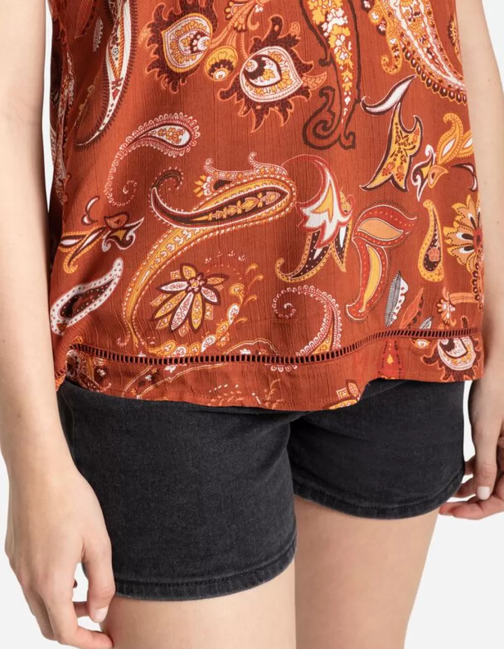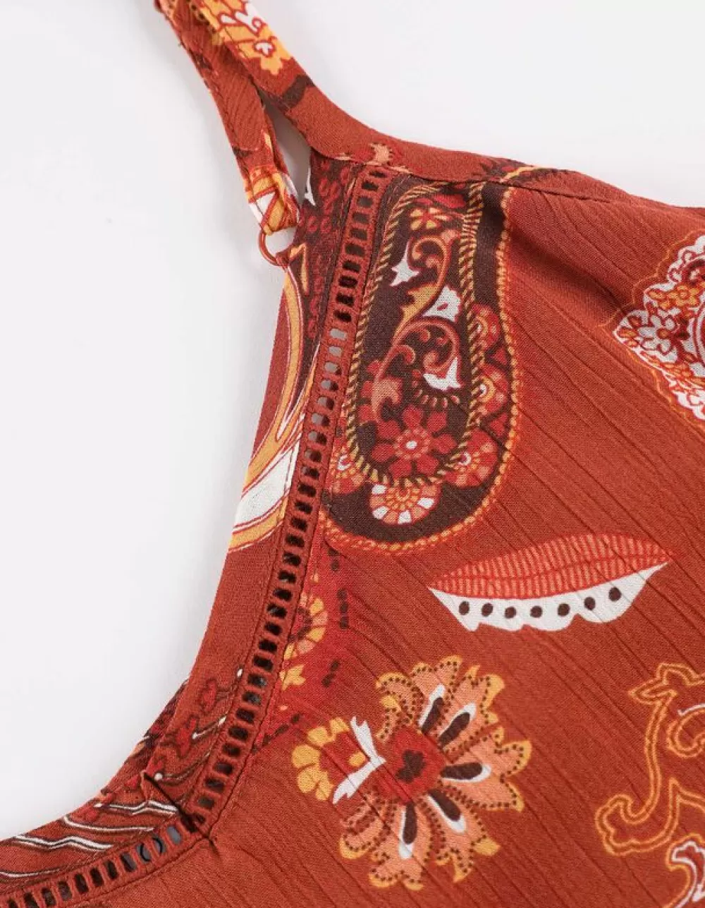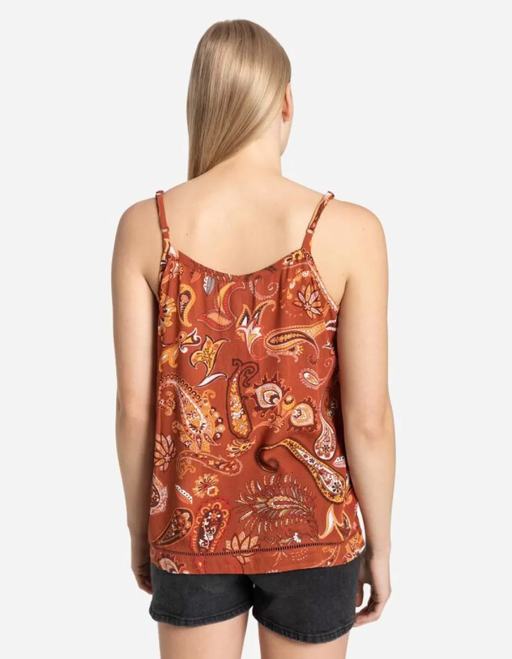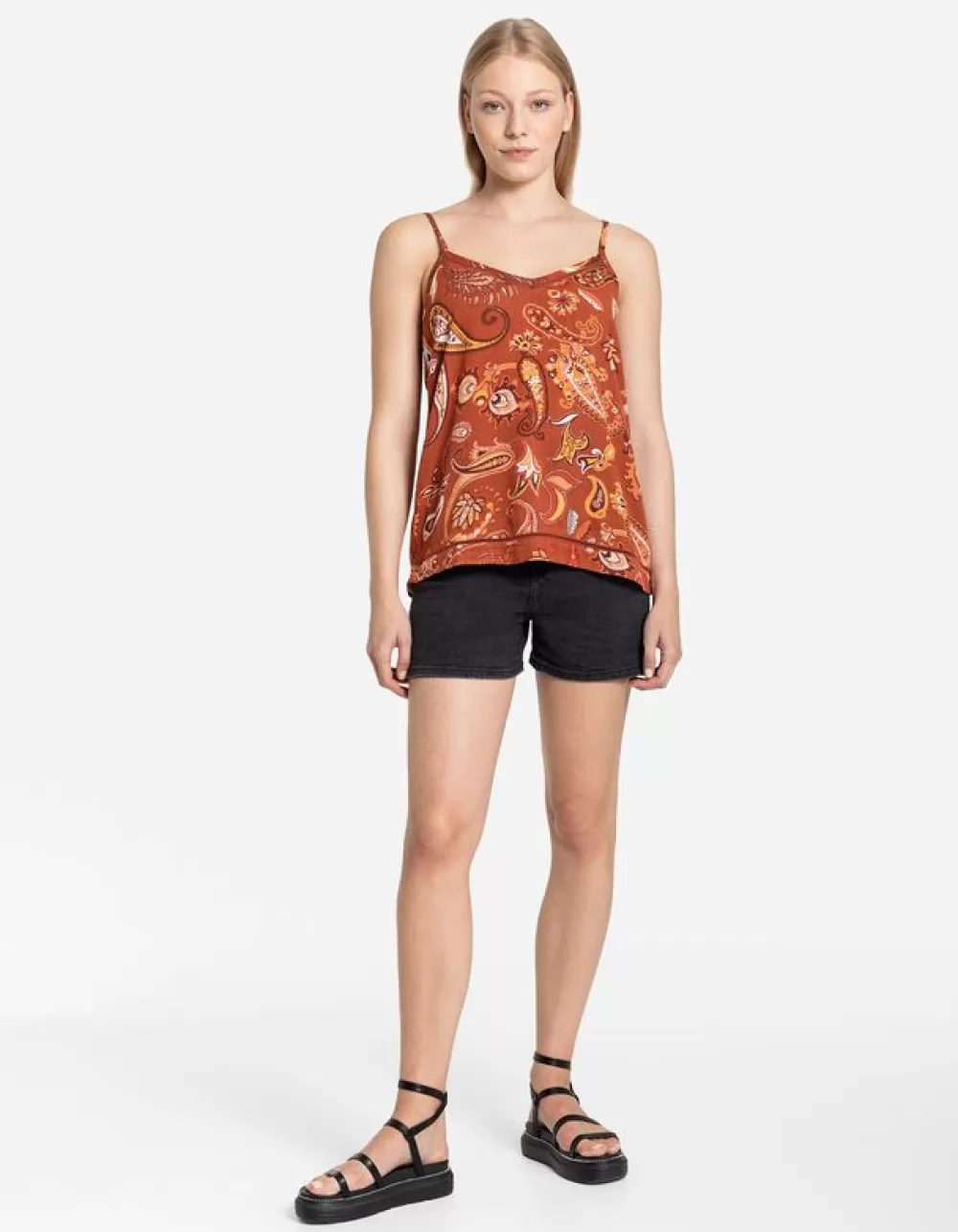 BruinPaisleyprintV-HalsSpaghettibandjesLenzing™ Ecovero™Elastische RandenMet KantMet Kant
