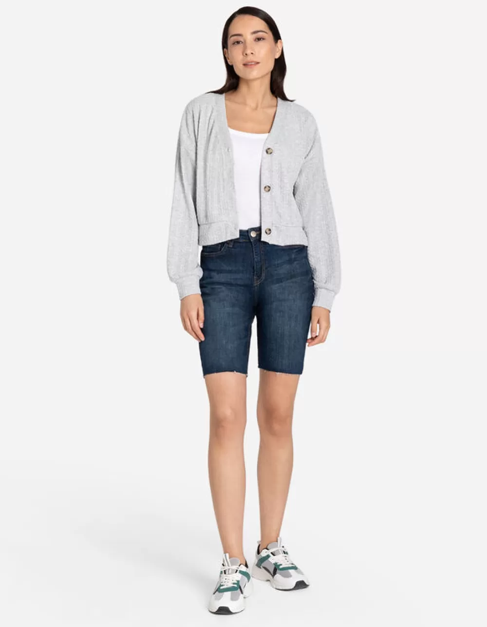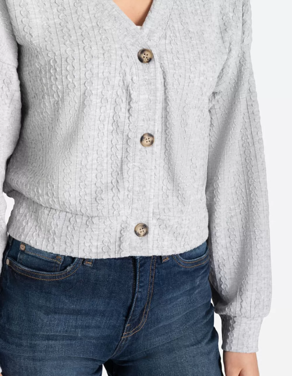 LichtgrijsEffenV-HalsLange MouwenMateriaalmixKnoopsluitingElastische RandenMet Stretch