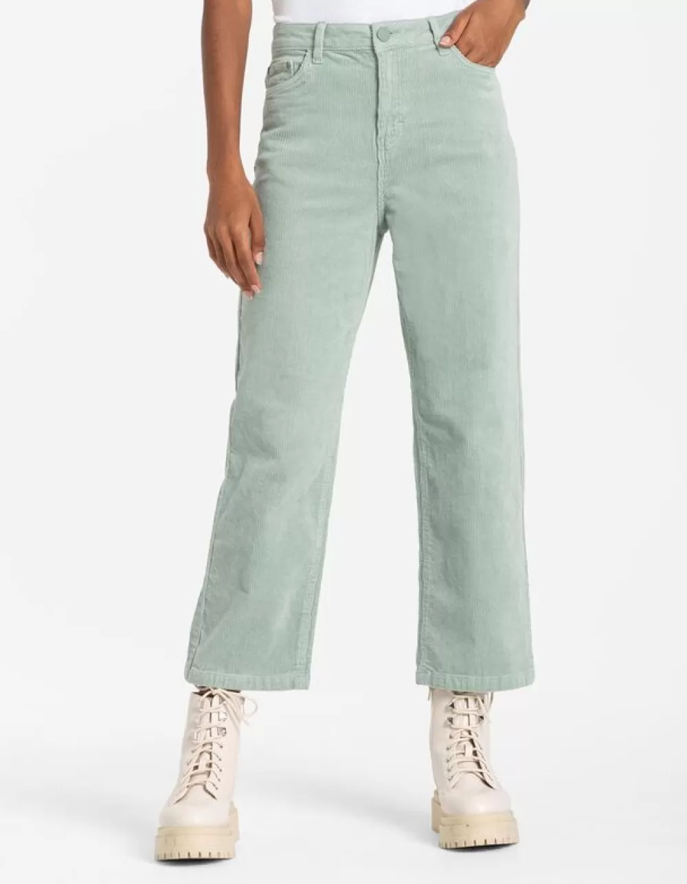 LichtgroenEffenRegular WaistLangCorduroyKnoop- En RitssluitingSteekzakken
