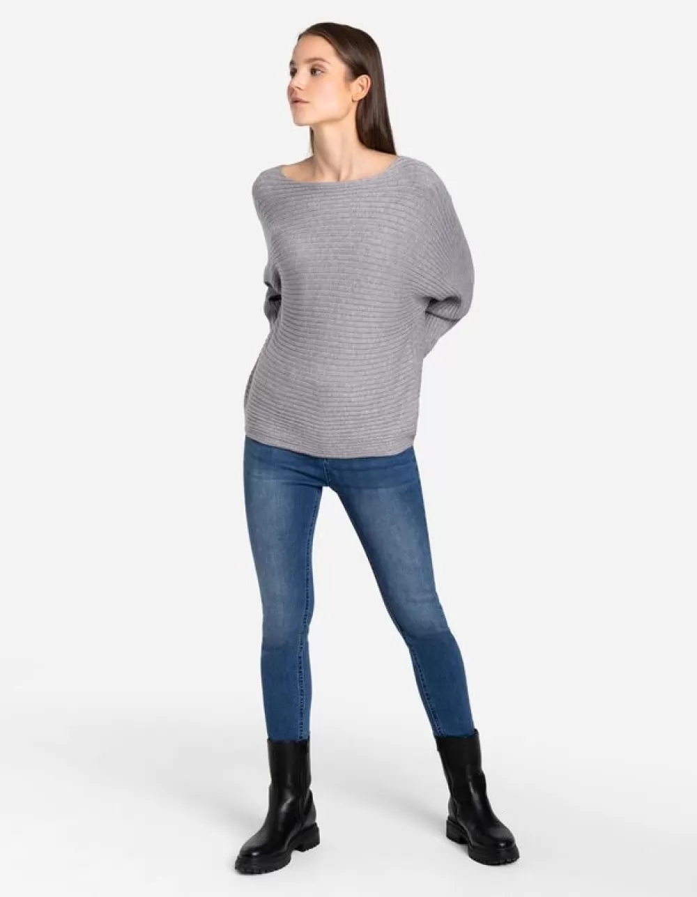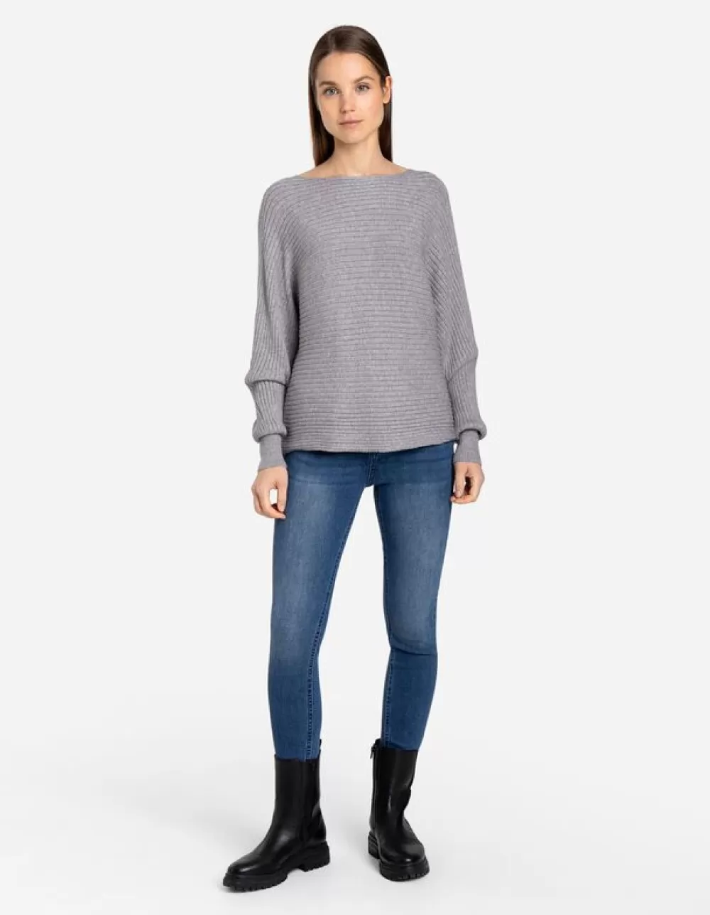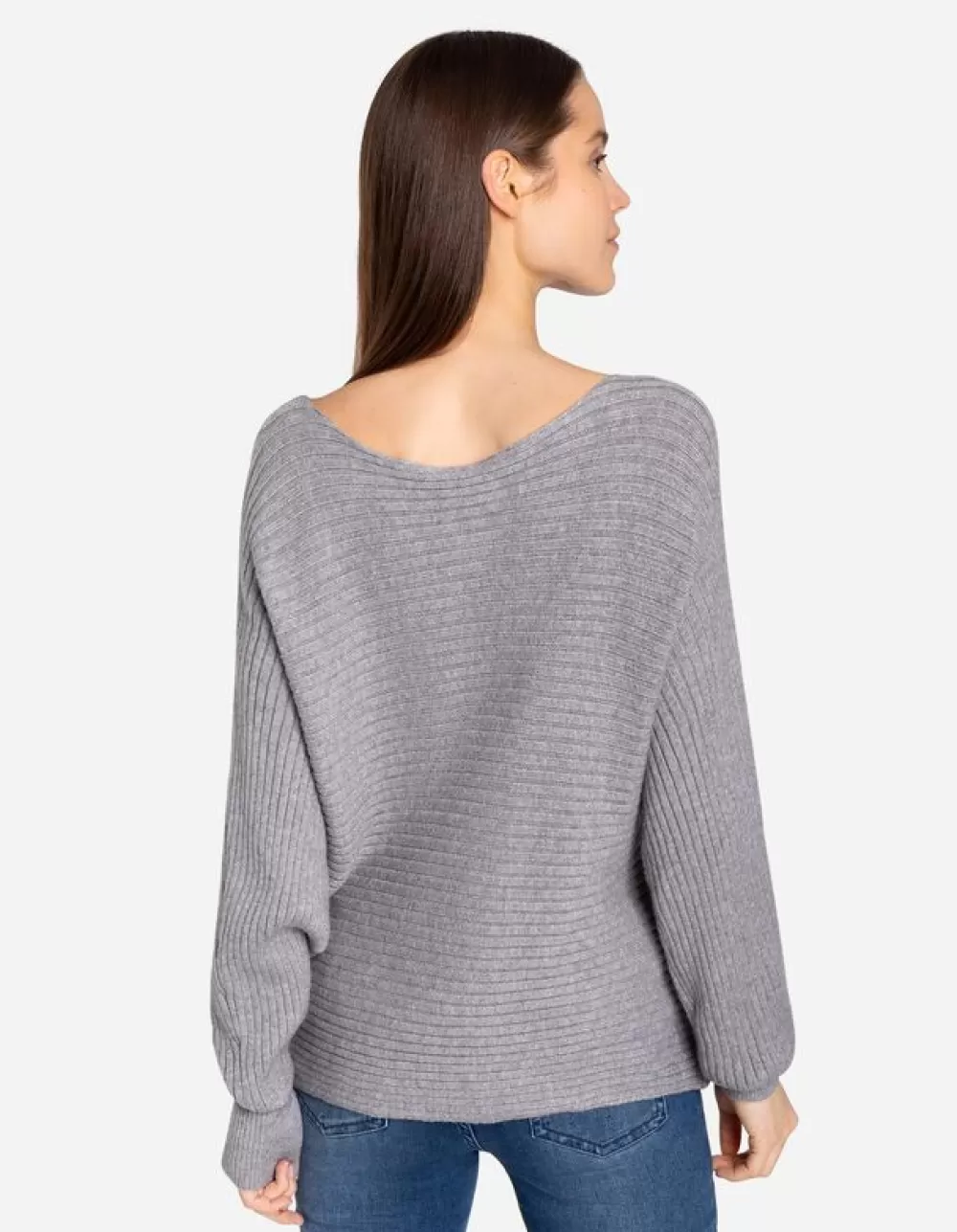 GrijsEffenBoothalsVleermuismouwenViscosemixZonder SluitingGeribde StructuurOversized SchoudersMet Stretch
