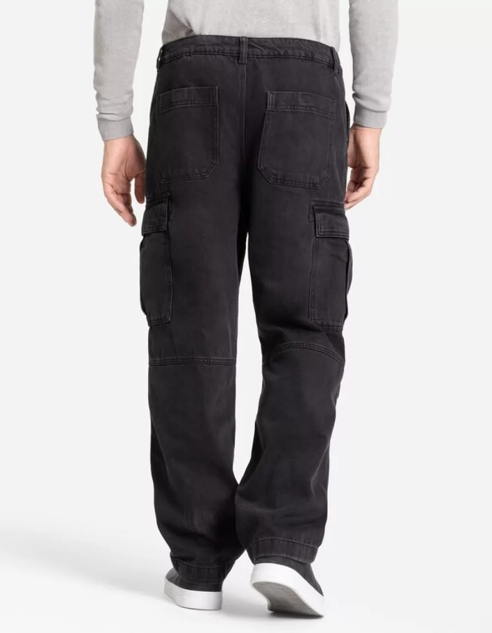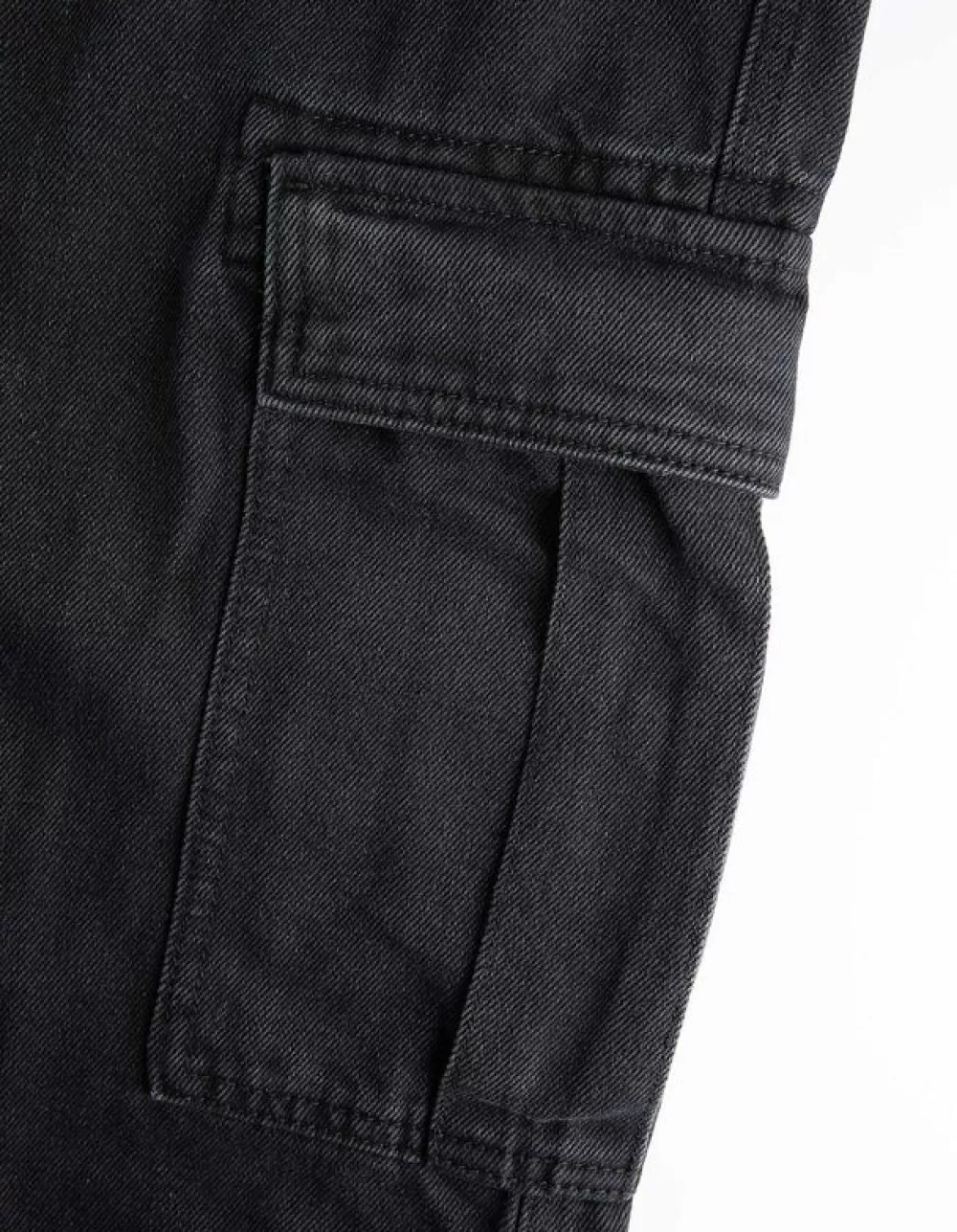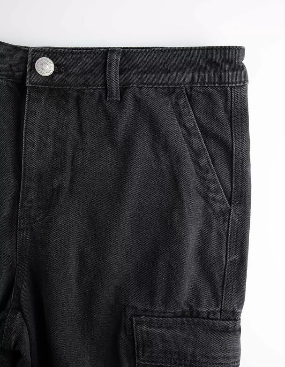 ZwartEffenRegular WaistUsed LookNormale LengteKatoenmixKnoop- En RitssluitingOpgestikte Zakken