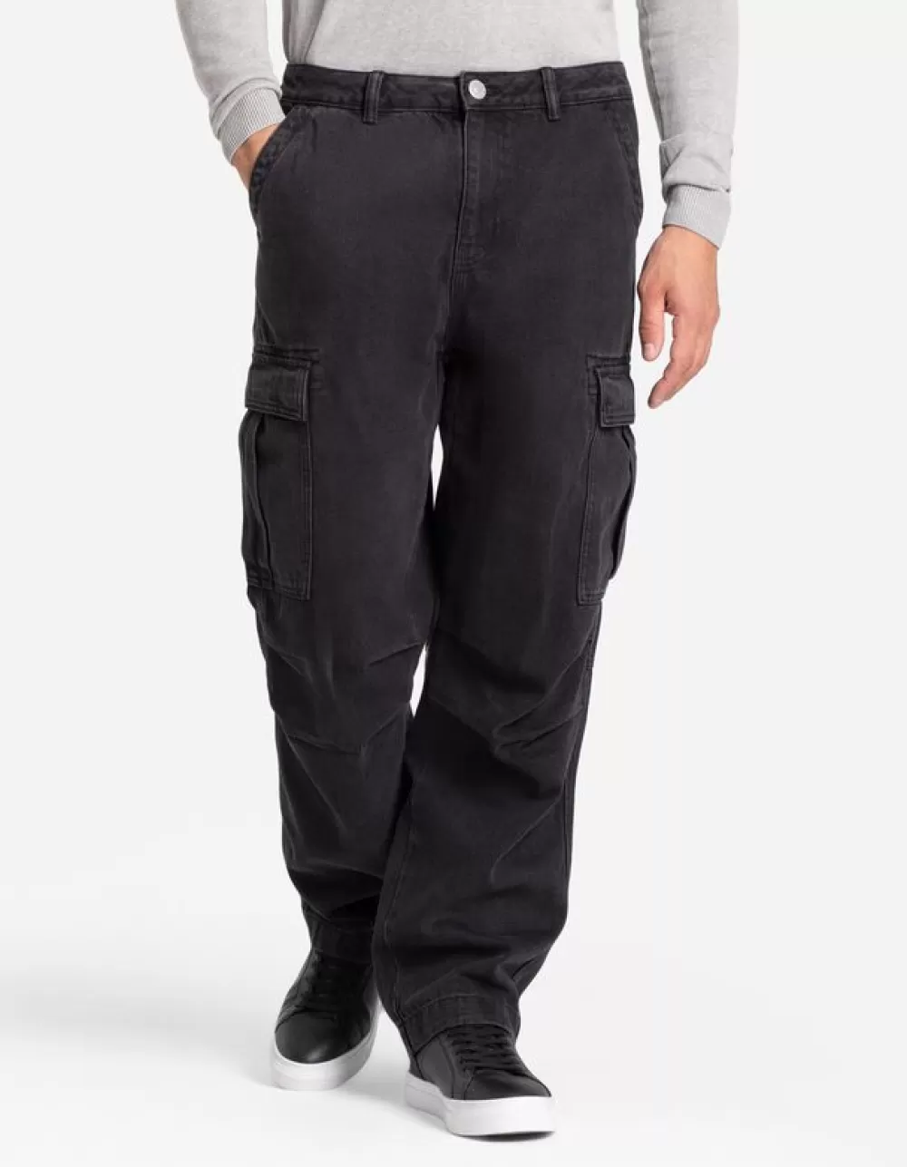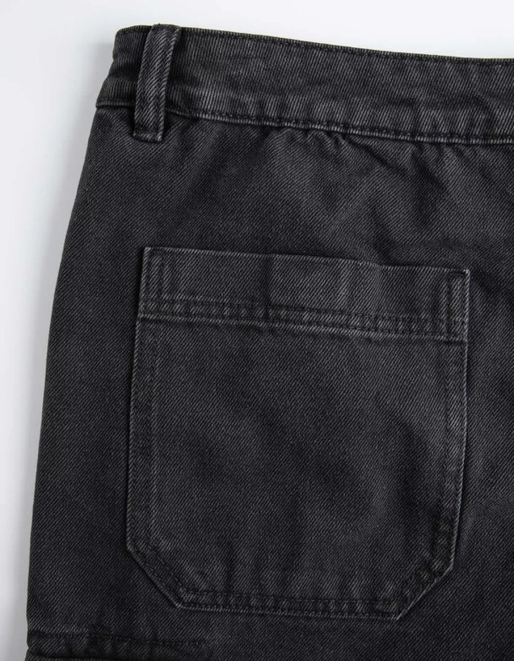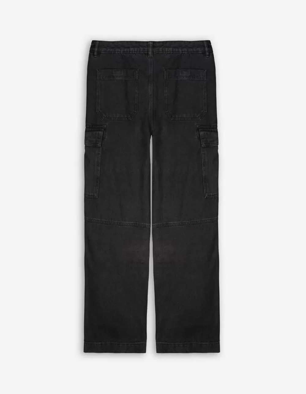 ZwartEffenRegular WaistUsed LookNormale LengteKatoenmixKnoop- En RitssluitingOpgestikte Zakken