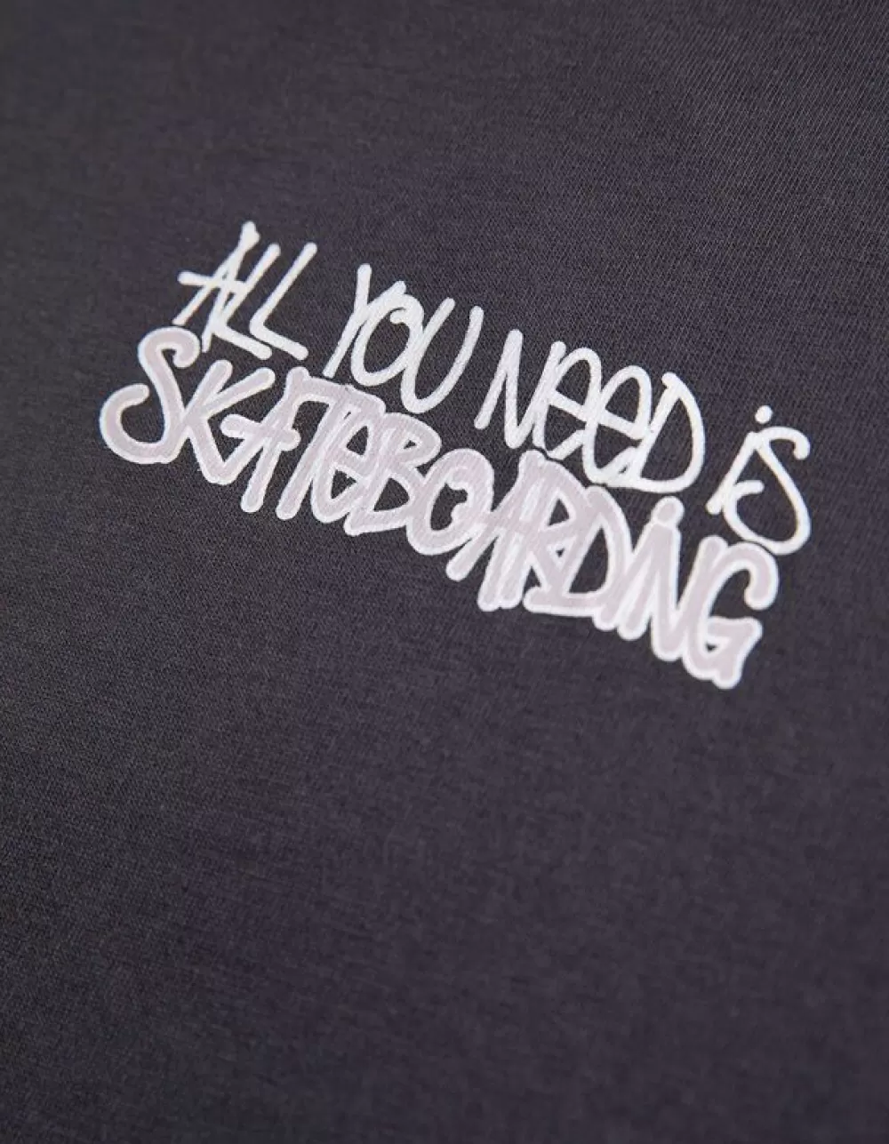 DonkergrijsPrint Op RugRonde HalsKorte MouwenKatoenTekstprintElastische RandenOversized Schouders