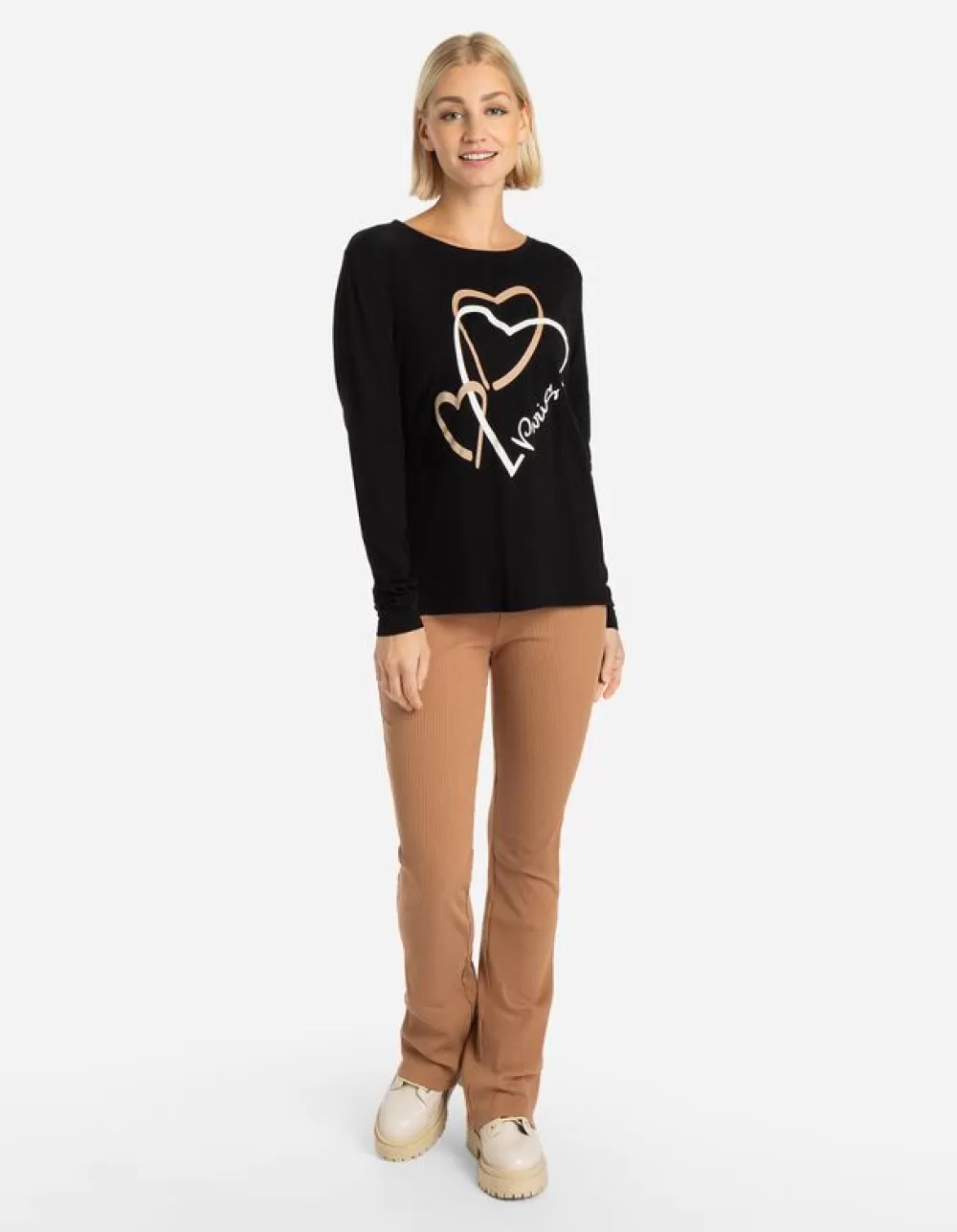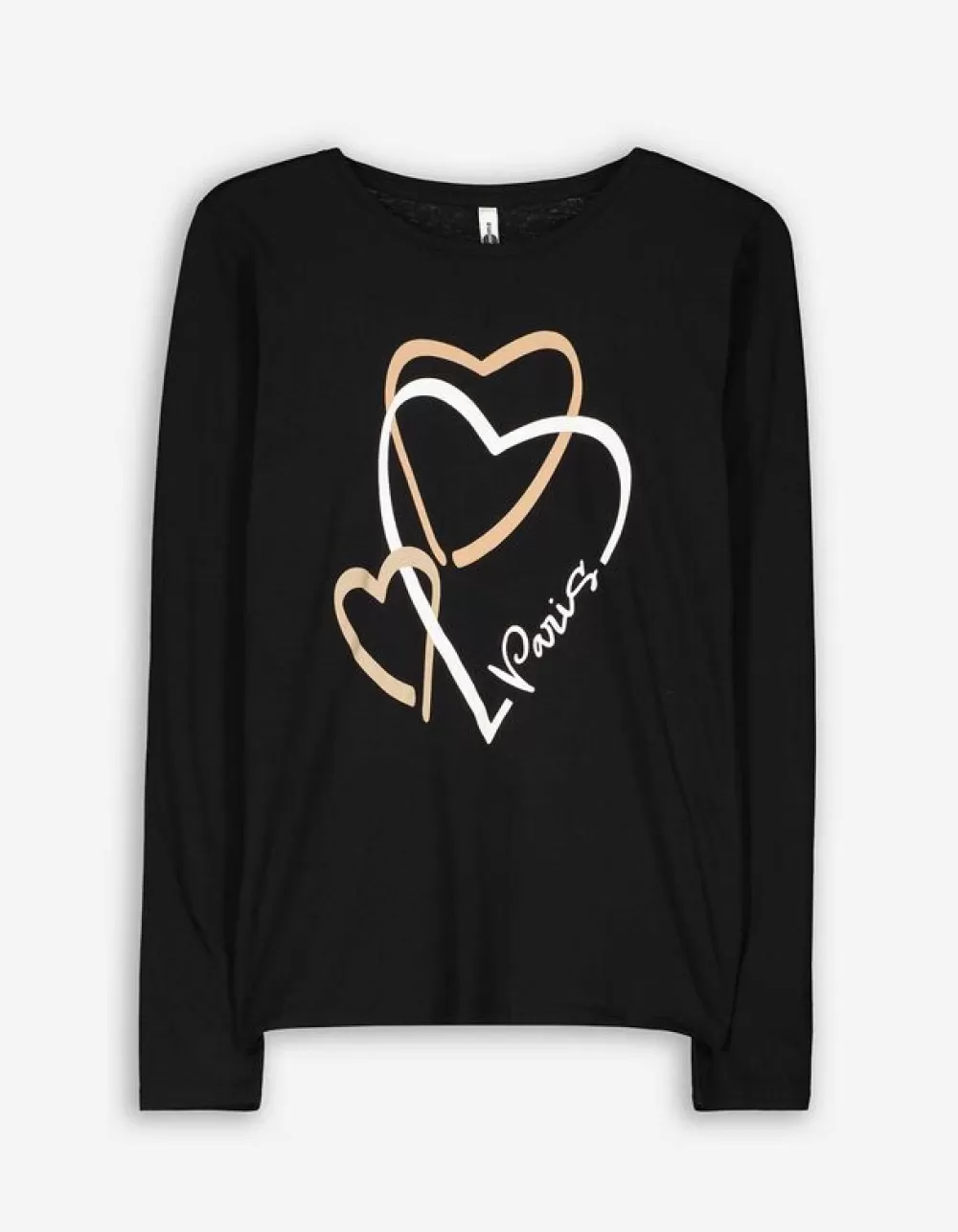 ZwartEffenRonde HalsLange MouwenKatoenPrint
