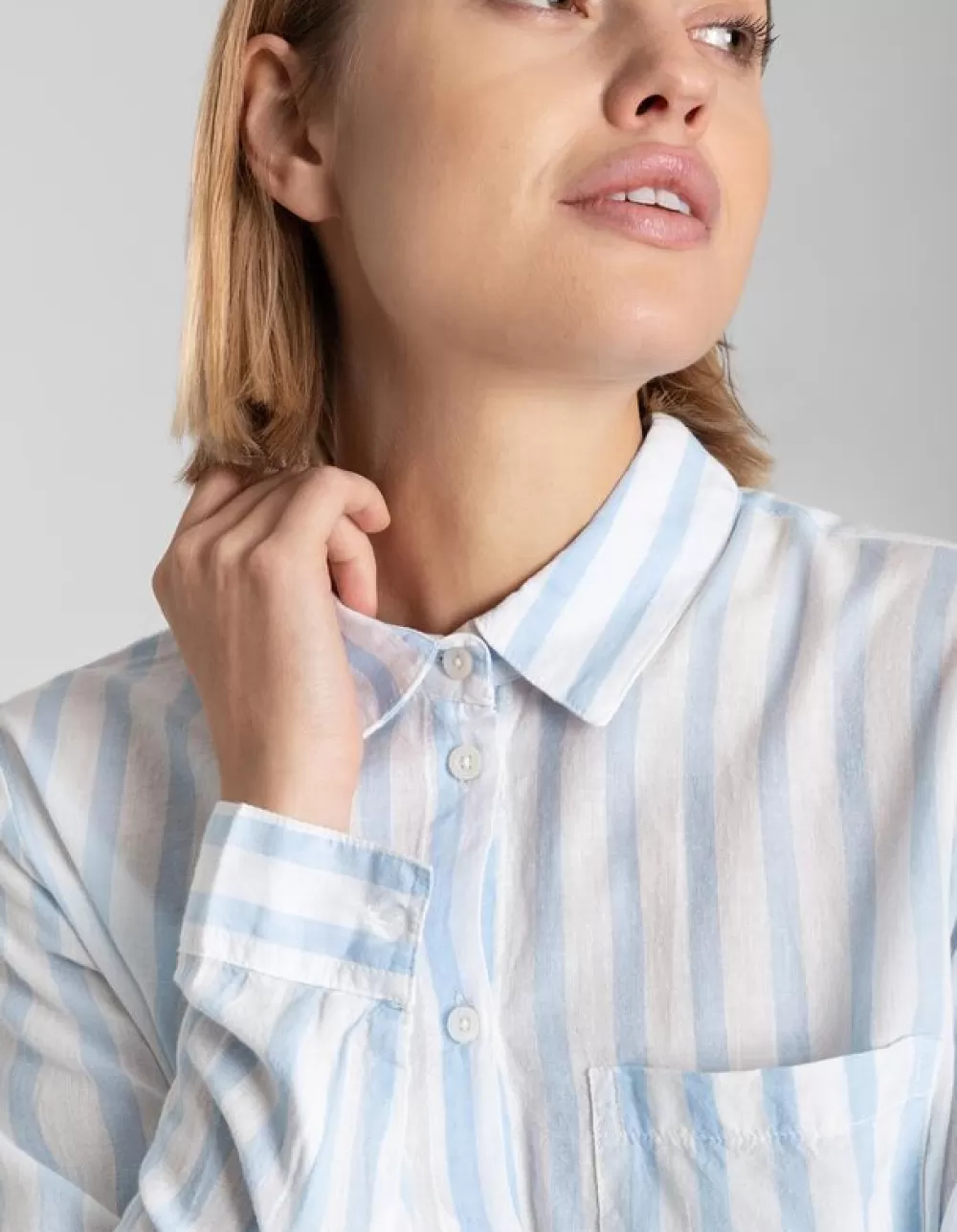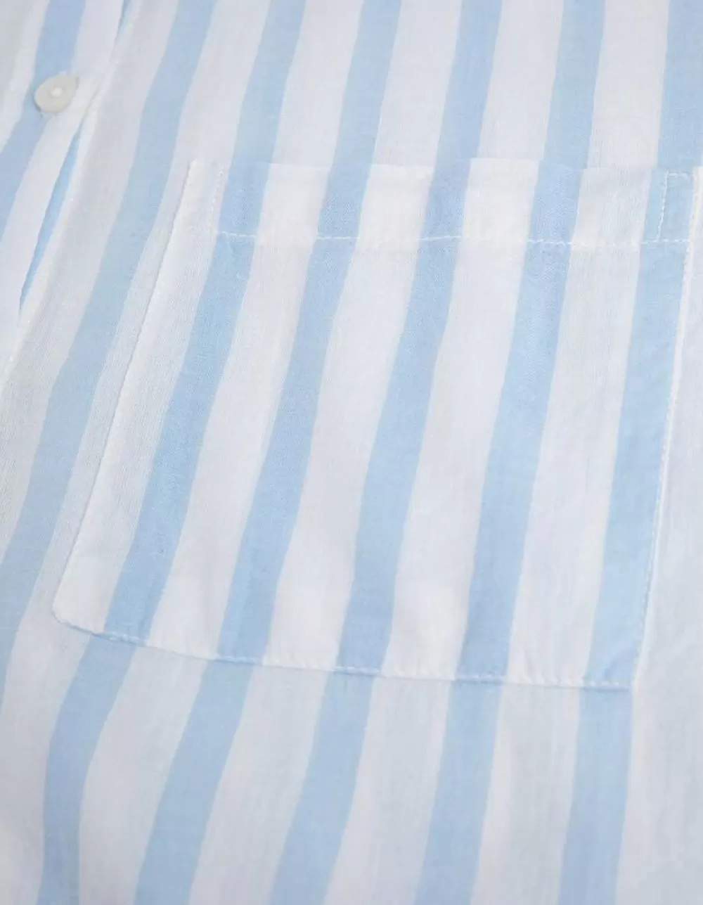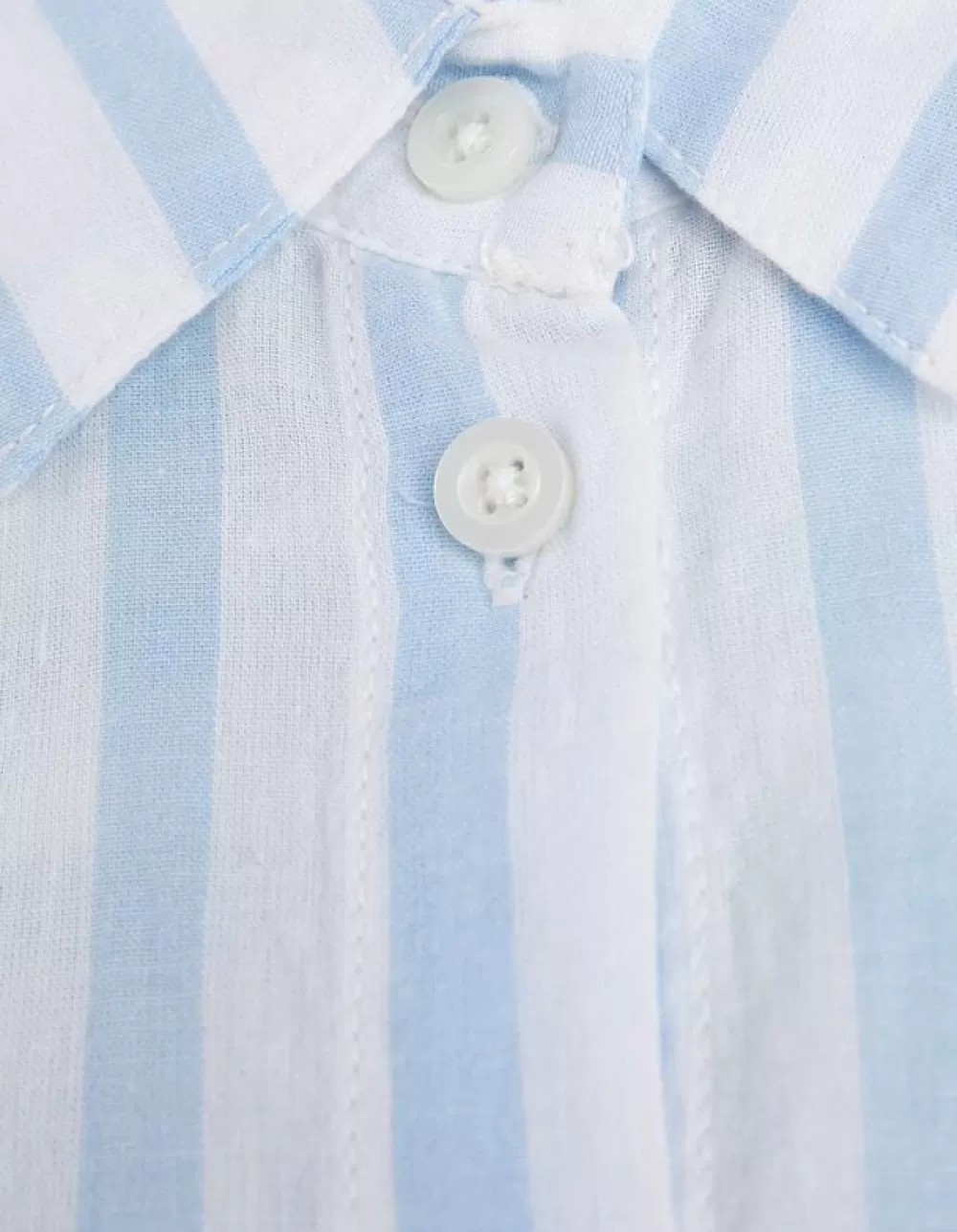 LichtblauwStrepenRonde HalsLange MouwenKatoenKnoopsluitingBorstzak
