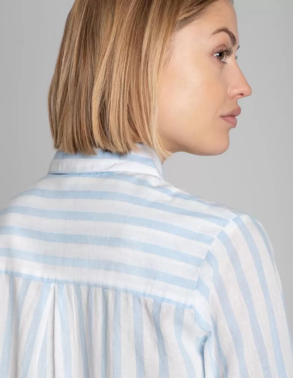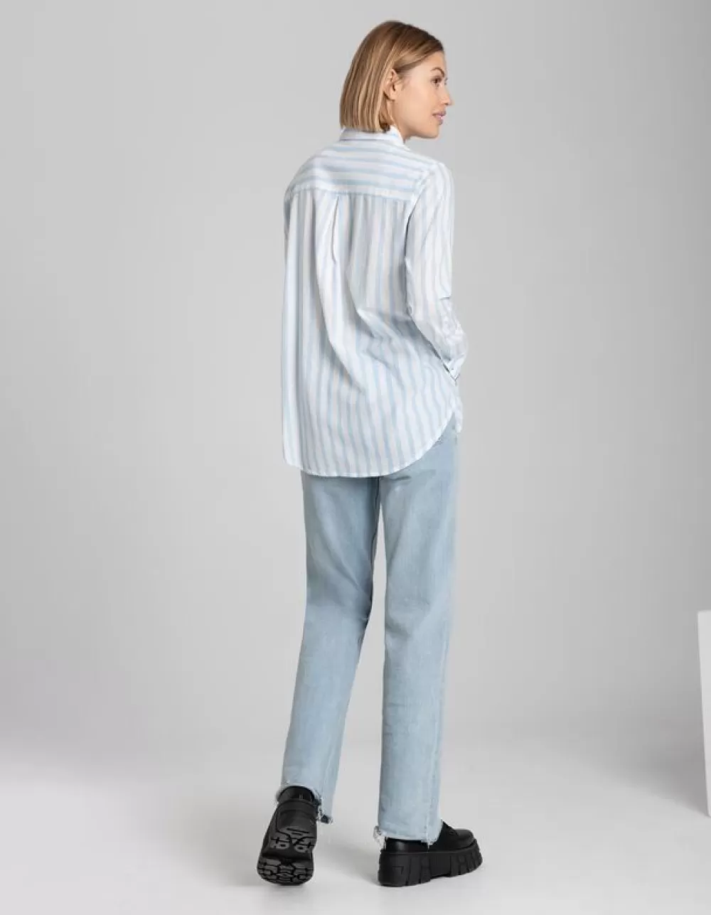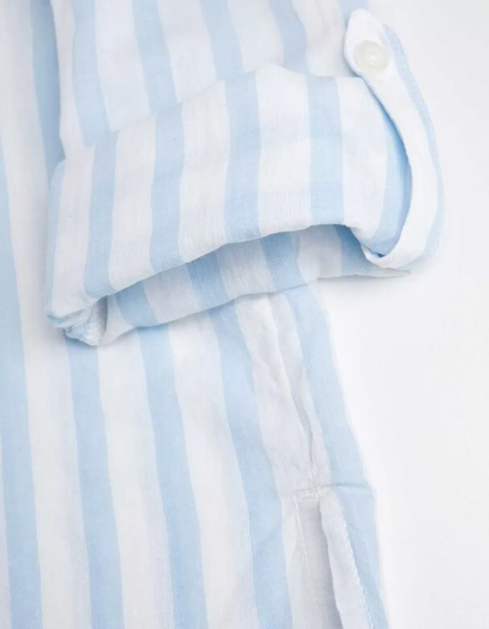 LichtblauwStrepenRonde HalsLange MouwenKatoenKnoopsluitingBorstzak