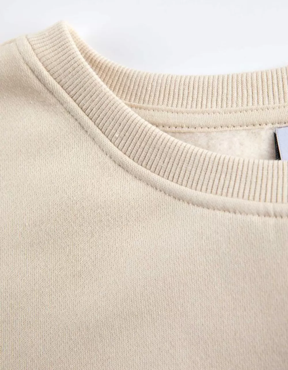 BeigeEffenRonde HalsLange MouwenSweatstofZonder SluitingMetallic DetailsZacht Materiaal