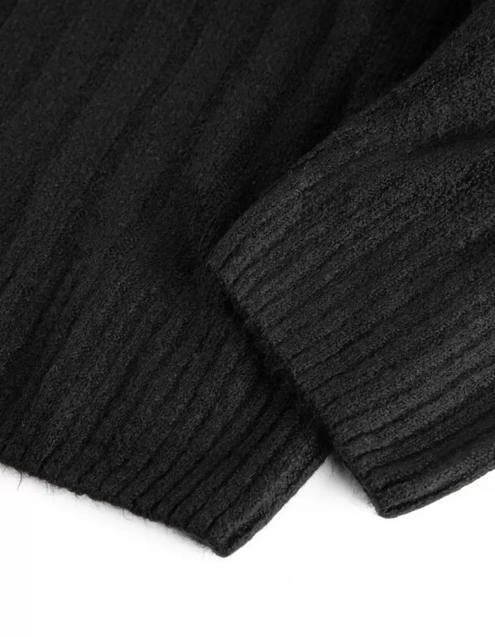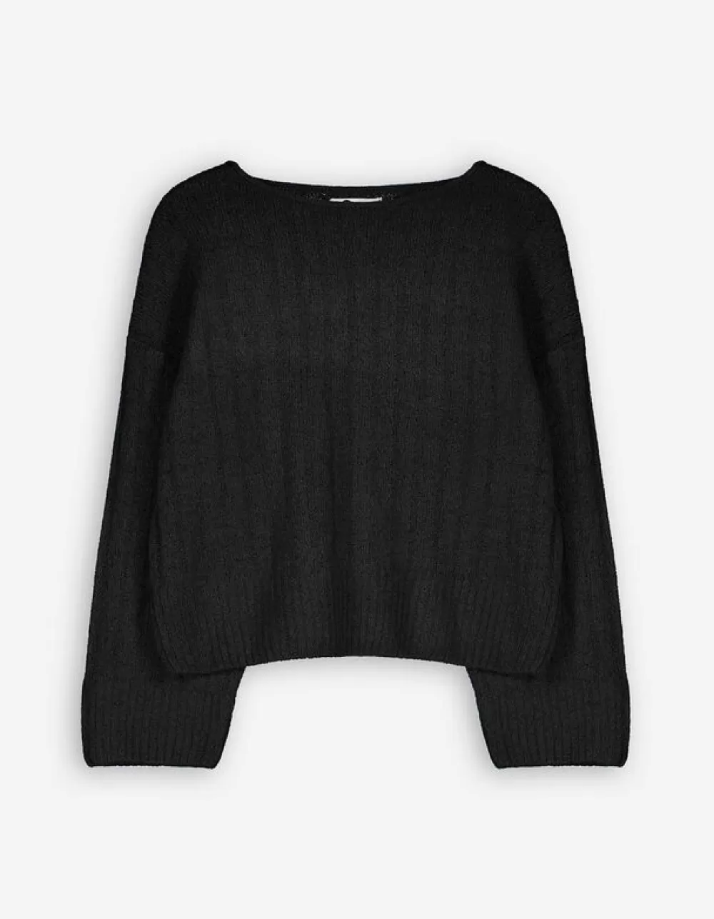 ZwartGemeleerdRonde HalsOversized MouwenBreigoedZonder SluitingGeribde StructuurMet StretchRolrandjes