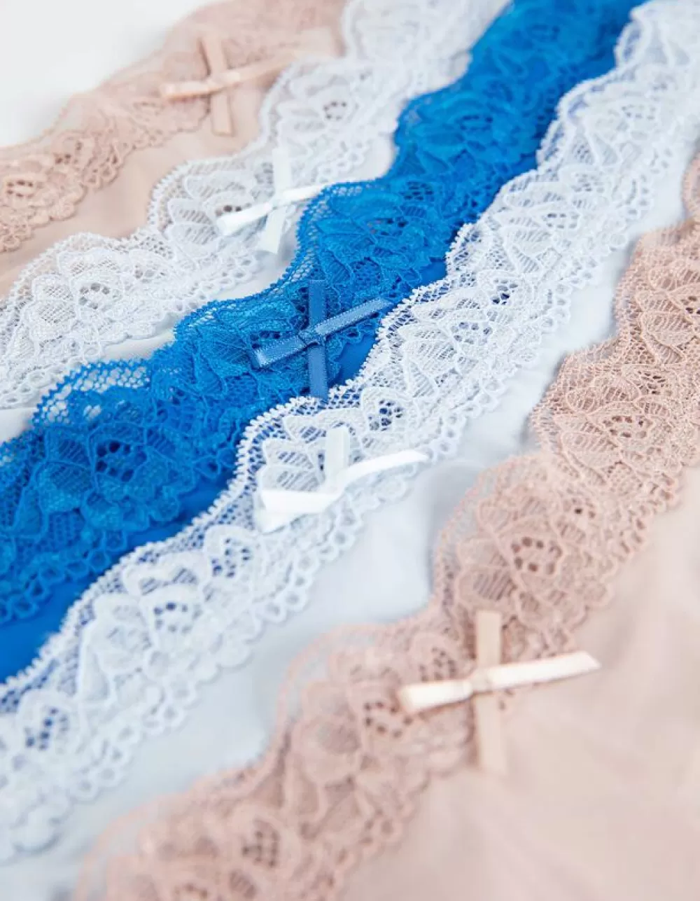 RozeEffenMicrovezelSet Van 5Met KantGeappliqueerd Strikje