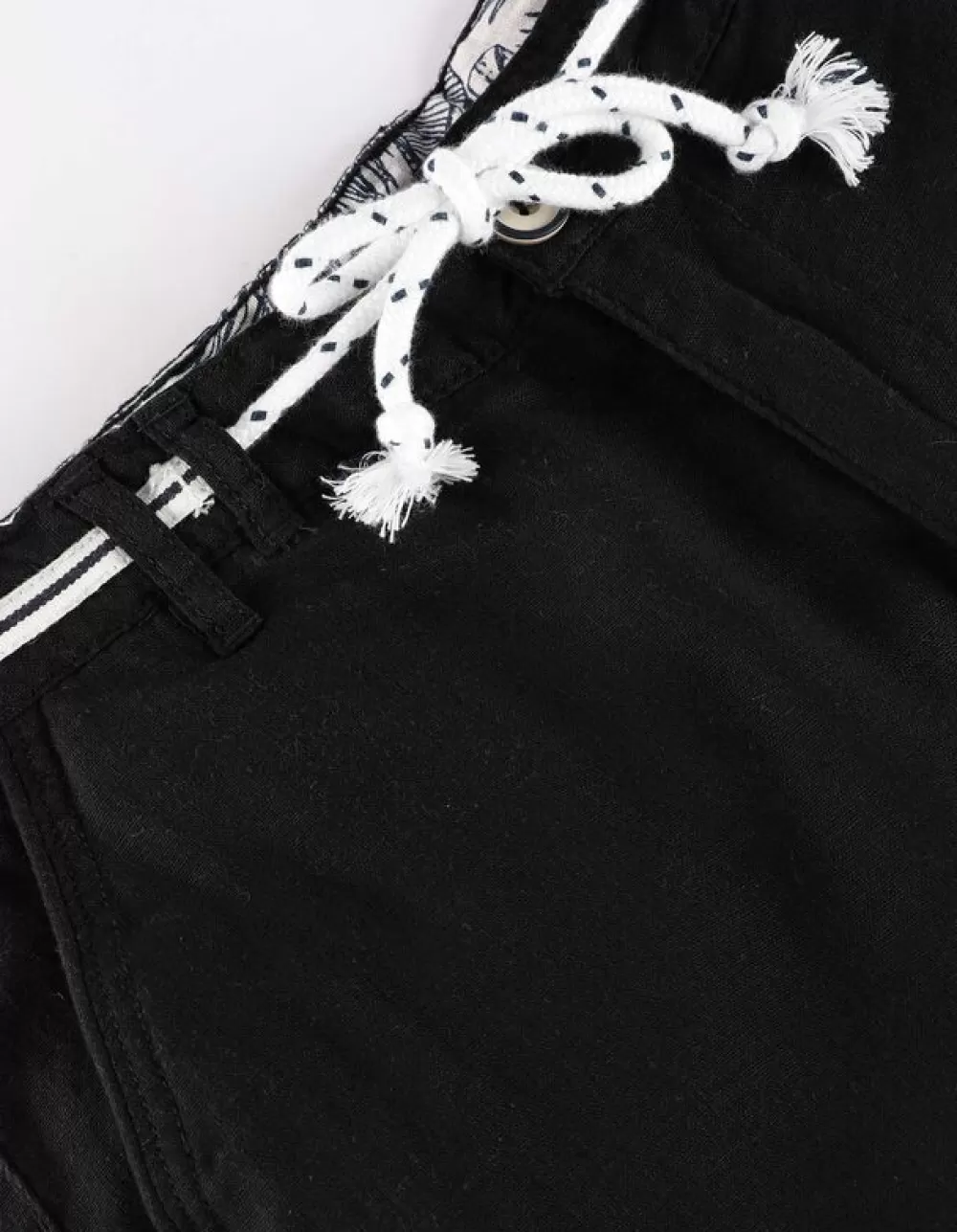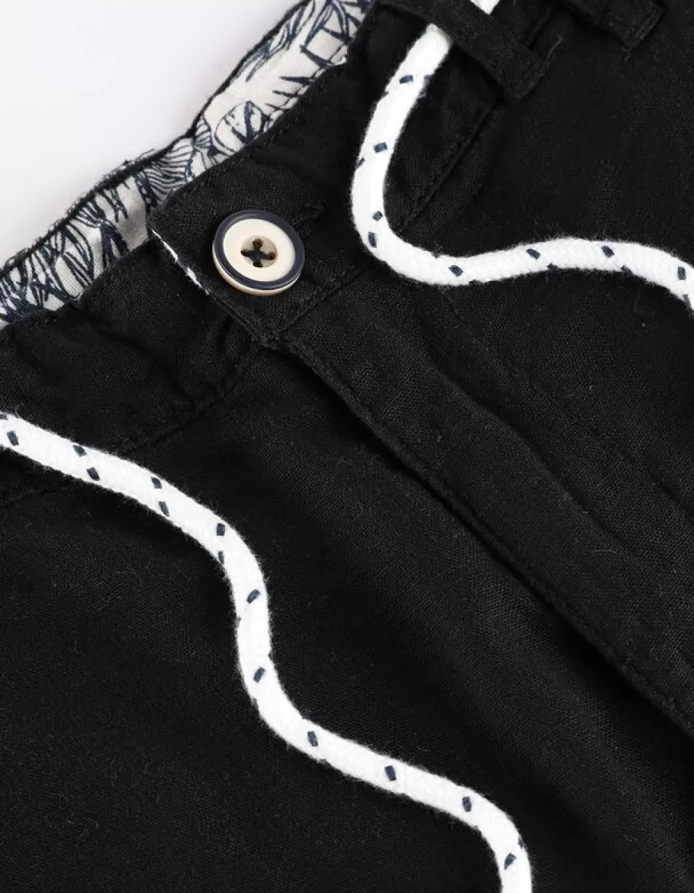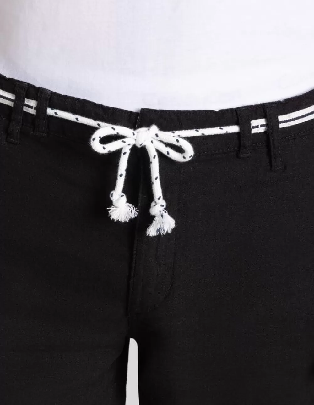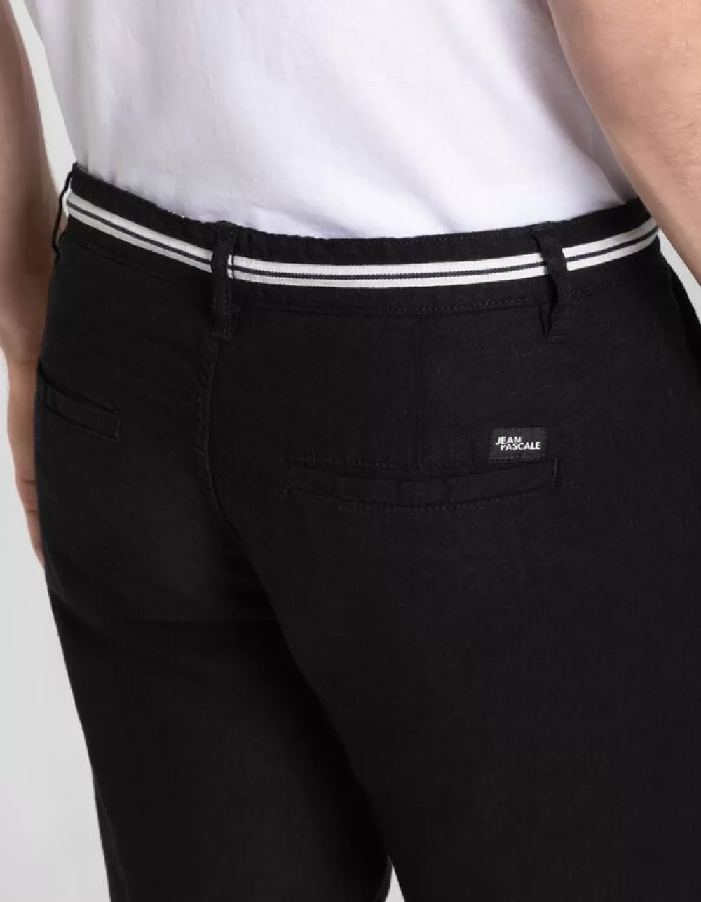 ZwartEffenRegular WaistKnielengteLinnenmixKnoop- En RitssluitingTunnelkoord Op Taillehoogte