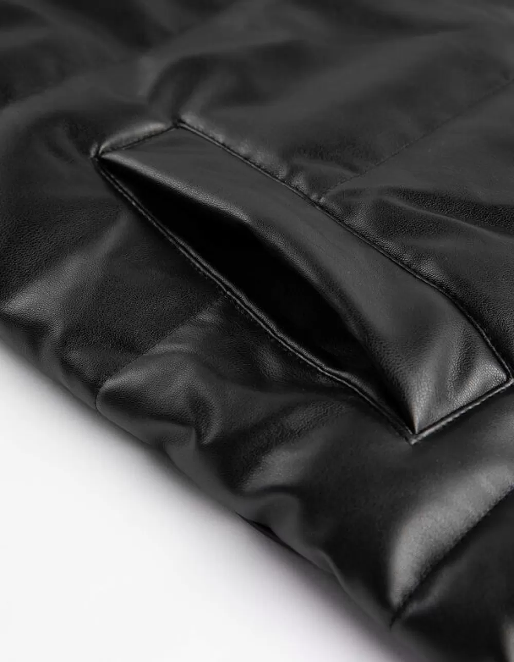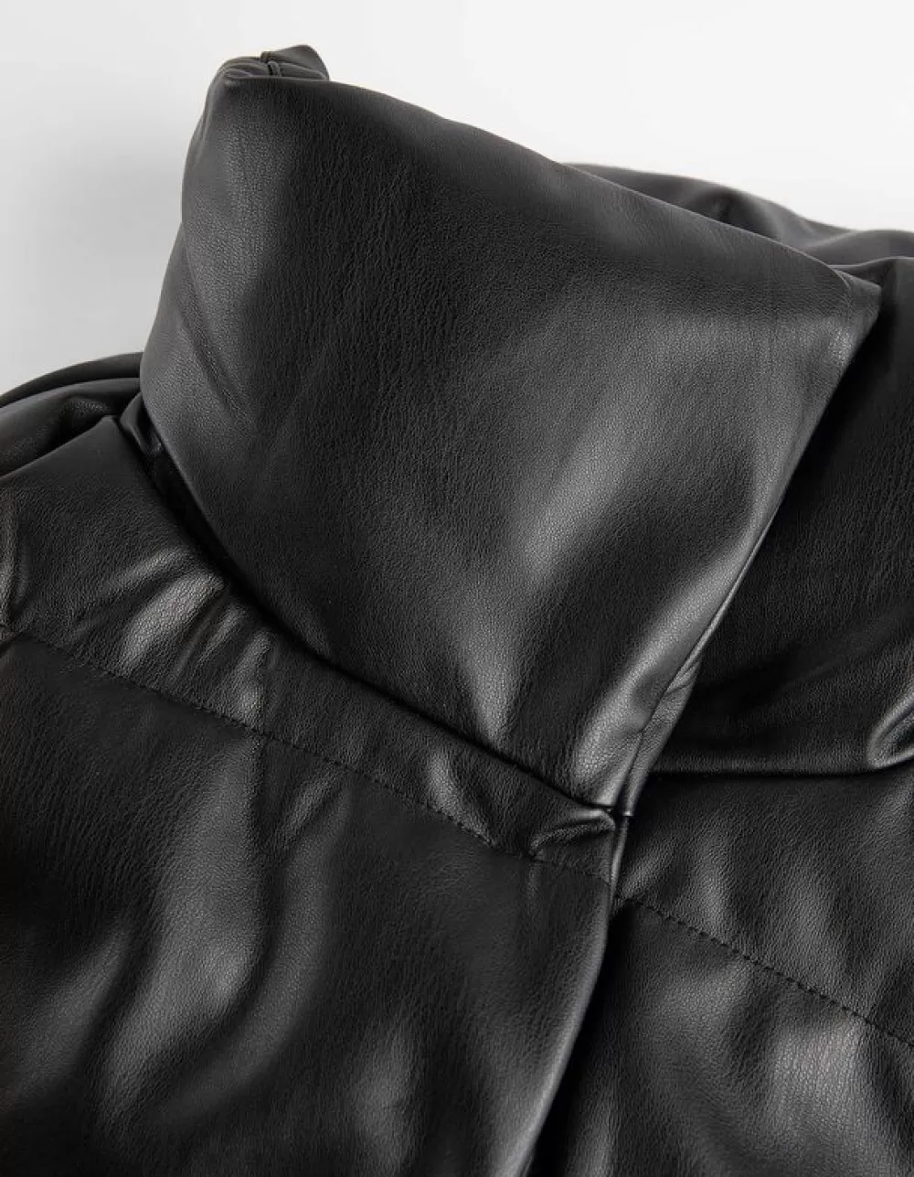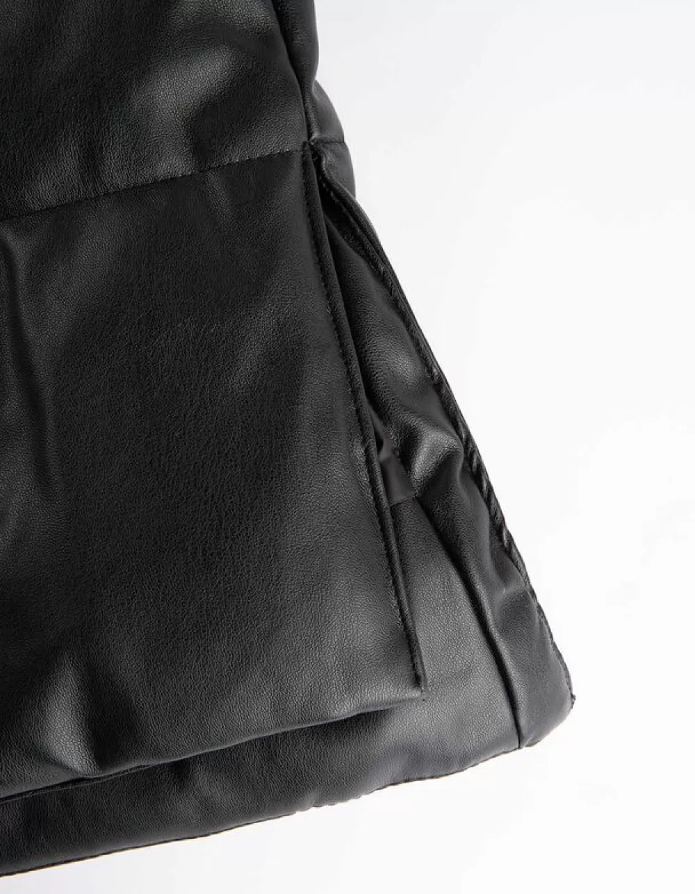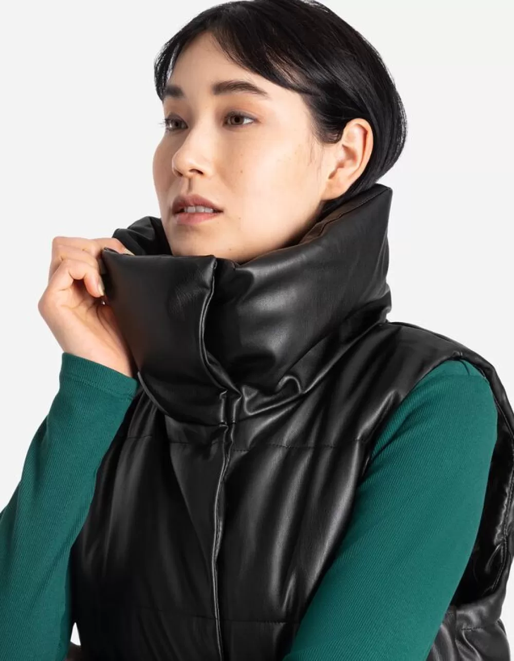 ZwartEffenOpstaande KraagMouwloosImitatieleerVerborgen KnoopsluitingImitatieleerSteekzakken